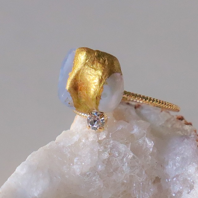 淡い空色の美しいレース模様が見えるのが特徴の天然石のブルーレースアゲートと、 艶の美しい淡水パールを金継ぎした螺旋リング。 やさしく淡い雰囲気と、凛とした上品さを持った一点で、 包み込まれるような癒しを感じる手元に♪ 使用;サイズ調整可能な螺旋状のオープンリング 指輪サイズ;約12号〜最大13号 リングの素材は、デザインの施された真鍮に、電気メッキがされています。 金属アレルギーのご心配な方はご遠慮ください。 天然石の大きさ;横1.1×縦1.3cm 天然石;ブルーレースアゲート、淡水パール 【ブルーレースアゲート】 淡い空色の美しいレース模様が見えるのが特徴の天然石。 コミュニケーション能力を高めたり、対人関係による失敗を防いだりするためのお守りに。 緊張を和ませる癒しのエネルギーがあり、 些細なことでイラついたり、緊張して人と話すのが苦手な方にもおすすめ。 高いヒーリング能力と鎮静力があるといわれ、神の石とも呼ばれます。 【淡水パール】 貝が生み出した、自然のおおらかさと優しいエネルギーは ストレスで疲れた心身を癒してくれます。 絆を大切にする人やプレゼントにもおすすめ。 ◆石言葉:純粋・健康・長寿・富 ◆6月の誕生石・丑年の守護石 双子座・蟹座・山羊座・魚座の守護石 ◆本漆の金継ぎについて 〝金継ぎ〟自体は元々壊れてしまった大切にしていた器を、見た目も美しく修復するために、漆の液などの天然素材を使った技法で、日本で生まれた伝統技術です。 現在は金継ぎを身近にできるように、 モダン金継ぎ、簡易金継ぎと呼ばれる方法がありますが、こちらの作品は手間や時間をかけて作る金継ぎ本来の本漆で天然石を継いでいます。 まぶした金色は、鉱物粉のマイカ(雲母の粉)で色付けしており、自然物の風合いが心地よく、落ち着きや癒しを感じていただける仕上がりになっています。 ◆メンテナンスについて この作品は、日本ならではの、 植物の漆を使った本漆で金継ぎすることで、 欠けや金粉の剥げにも修復が可能です。 万が一の際は、修復代や送料は御負担いただくことになりますが、修復しますので、ご相談ください。 =作品への想い= 【わたしをいたわる、 唯一無二の小さなお守りリング】 MEi867(メイハチロクナナ)で作る 天然石の金継ぎリングは、 異なる天然石を金継ぎした 唯一無二のデザインの指輪です。 カタチも、金継ぎの模様も ひとつとして同じものはないのです。 使用している天然石は、 自然の風合いのあるものや、 絵画の様な模様のあるもの、 どれも個性があります。 その、個性的な天然石を 美しく繋ぎ合わせたり 欠けたものを修繕し、 キズがあっても隙間を埋めて 新たな命を吹き込むその工程は、 わたしたちと重なる部分を感じます。 欠けと思える部分があるからこそ 他にはない美しさを持ち 何かと繋がりあうこともできる。 欠けや傷に感じる事があっても 新たな自分らしい姿で生きて欲しい。 あなたの存在を丸ごとうけとめ、 あなたを優しくいたわり、 金継ぎがくれる落ち着きと 天然石で安らいでほしい。 そんなメッセージをこめて お守りになるようにと作っています。 ◆ギフトラッピングについて◆ 一点ものの特別なリングのため、大切な方への贈り物にもおすすめです。 誕生日、母の日、節目のお祝いなど、 贈り物の場合、有料のギフトラッピングをご用意しています。 アクセサリーの保管箱としても使用できる紙製のギフトボックスをご用意しています。 ご希望の場合はオプションにてお選びください。 紙の緩衝材をいれ、ご希望のイメージカラーのリボンをかけさせていただきます。 そのままお渡ししやすいよう、外装は、透明のOPP袋でお包みさせていただきます。 ギフトにショップカード、天然石の説明&お取り扱いの紙を同封させていただきますが、金額のわかるものは入れませんのでご安心くださいませ。 【お取り扱いについて】 長く綺麗を保っていただくために、ご使用後や水がついた場合、汚れた場合は乾いた清潔な布などで拭いてください。 陽の光により褪色や、金属の劣化を招きます。 保管にご注意ください。 繊細なものですので、落下や引っ掛かりによる破損にご注意ください。 月光浴や水晶にのせるなどして、石を休ませる時間を作ってください。 ※オプションで浄化セットをご購入できます。 *****キーワード***** 母の日 誕生日 誕生石 守護石 和モダン 上品 エレガント 日本 伝統工芸 伝統技術 ギフト 贈り物 お祝い コミュニケーション 自分らしさ 自己表現 天然石 和風 ジュエリー 天然石アクセサリー お守り