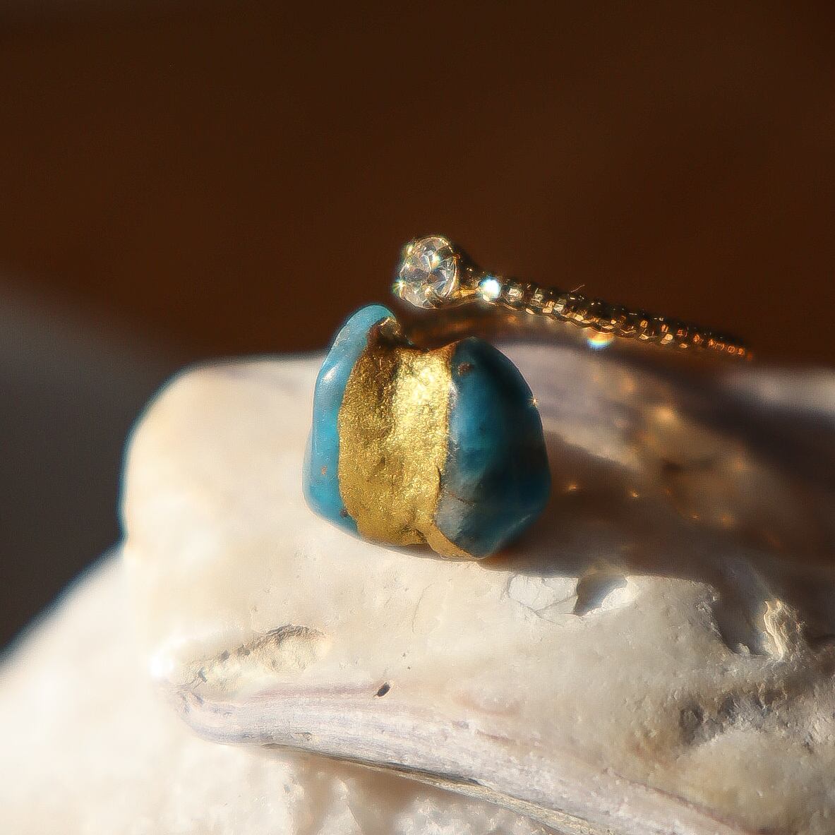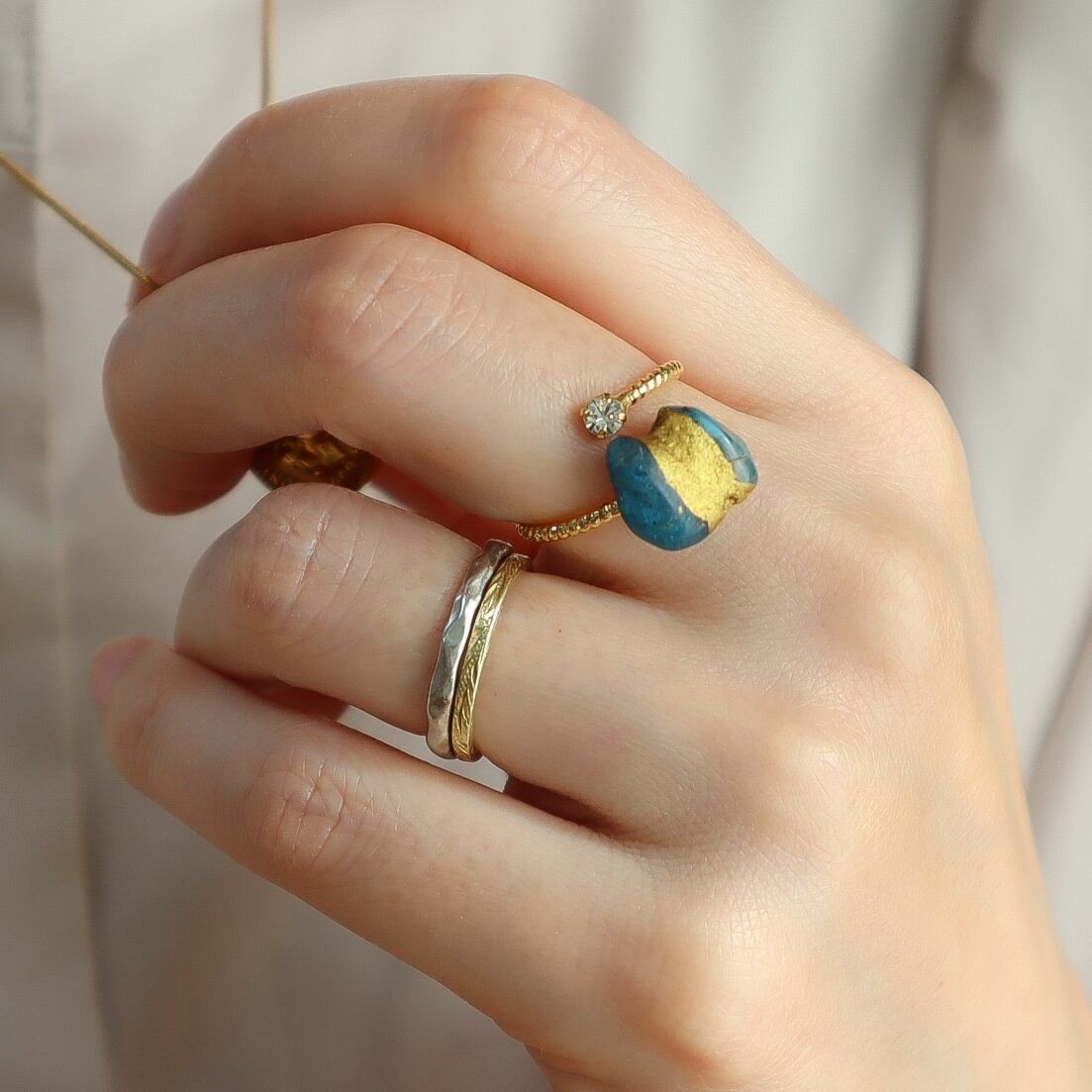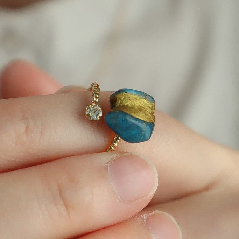 【一点もの】解放とらしさの表現 ブルーアパタイトの金継ぎ螺旋オープンリング 天然石 指輪 ブルーグリーン 誕生日 ギフト 守護石