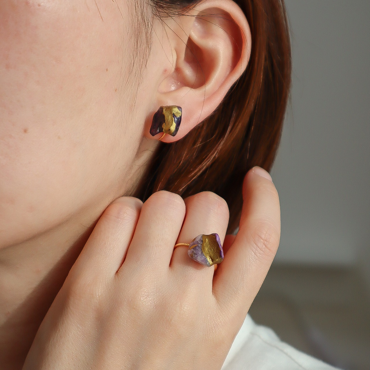 異なる天然石を金継ぎした