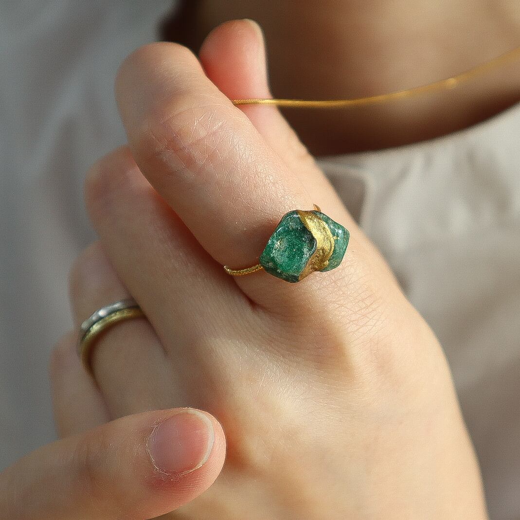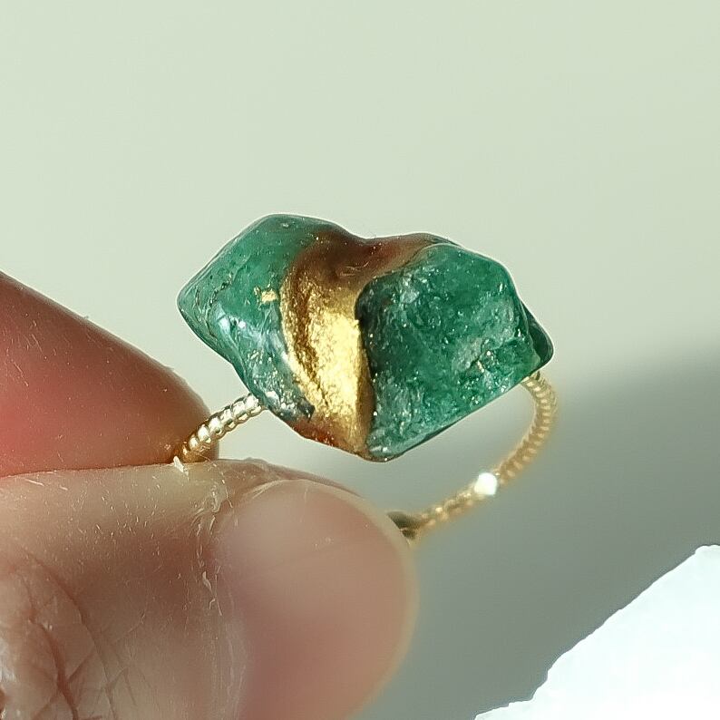 【残り1点】リラックスと家庭円満 グリーンアベンチュリン金継ぎ真鍮フリーリング 天然石 指輪 緑 5月 誕生石 誕生日 ギフト 守護石 ヒーリング 健康