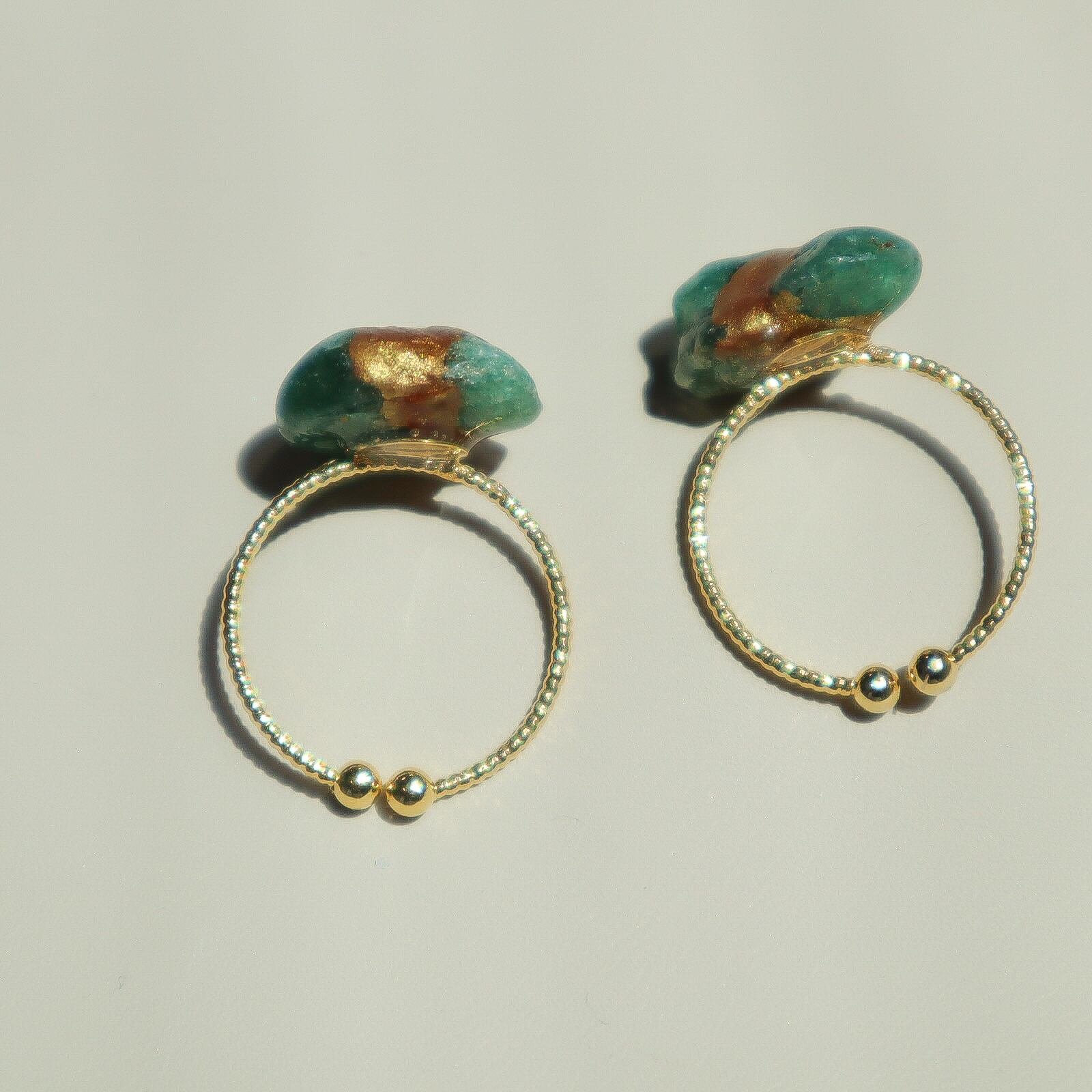 5月の誕生石のグリーンアベンチュリン2つを金継ぎした