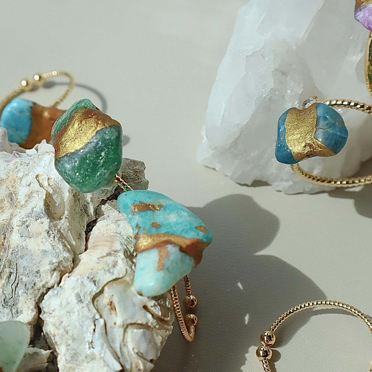 異なる天然石を金継ぎした