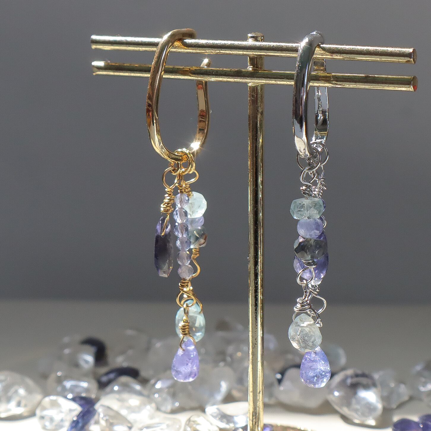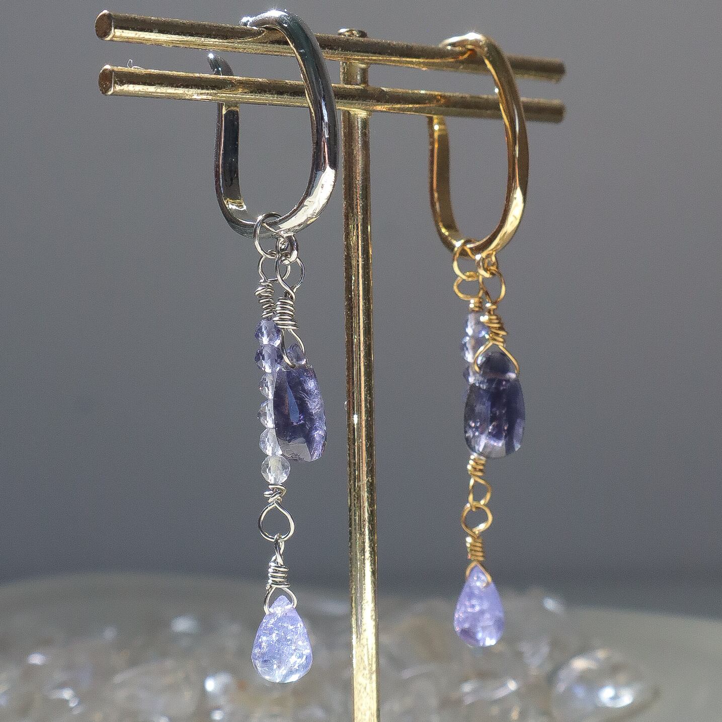 光の当たる角度によって色味が変わる「多色性」があるアイオライトとタンザナイトは、