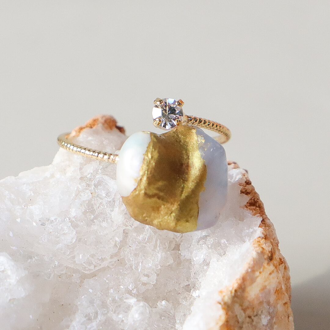 艶の美しい淡水パールを金継ぎした螺旋リング。