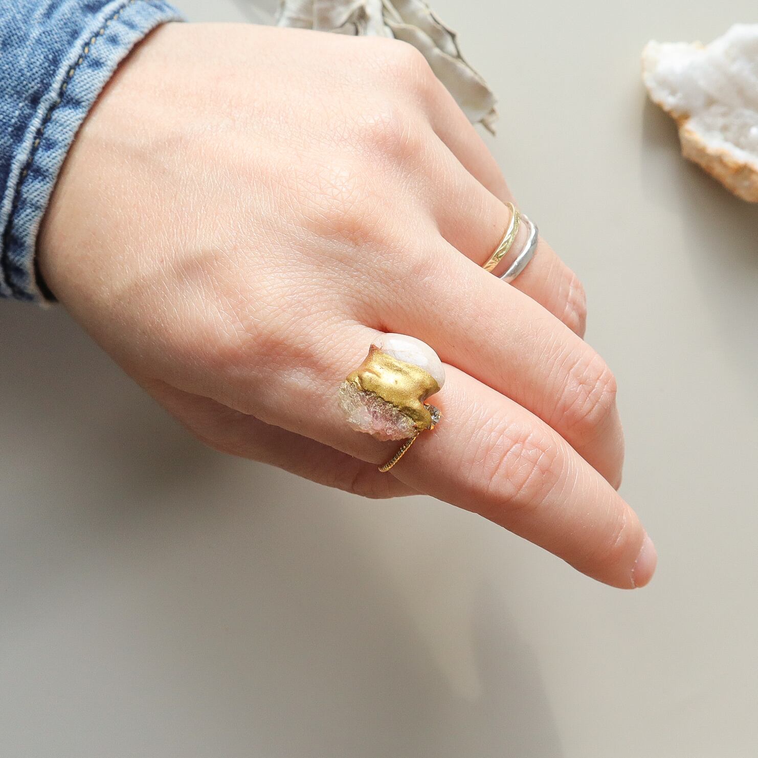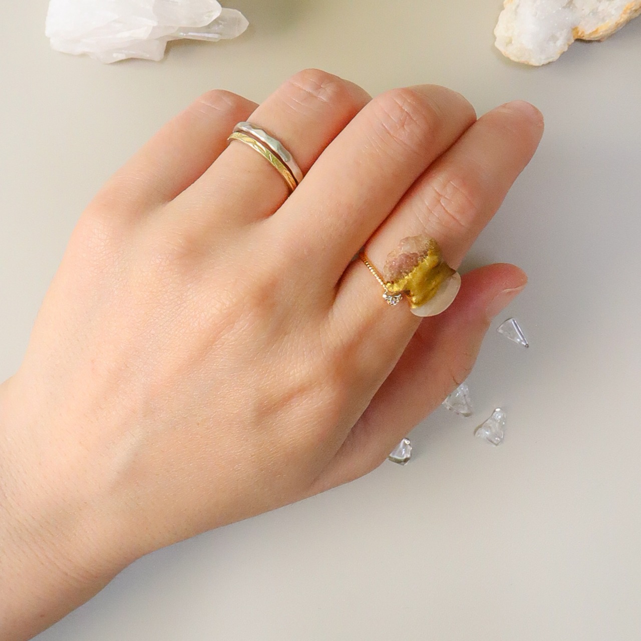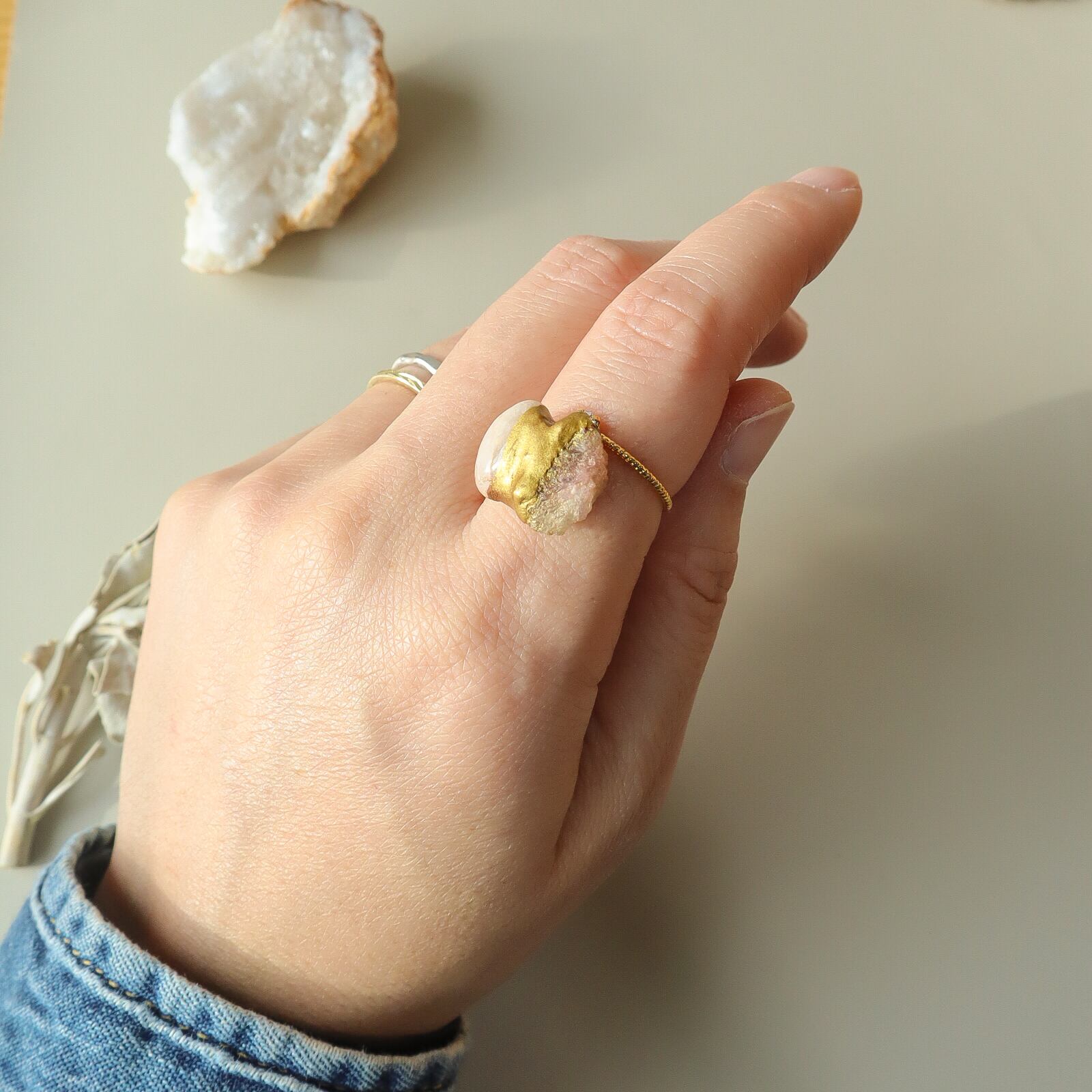 天然石の金継ぎリングは、
