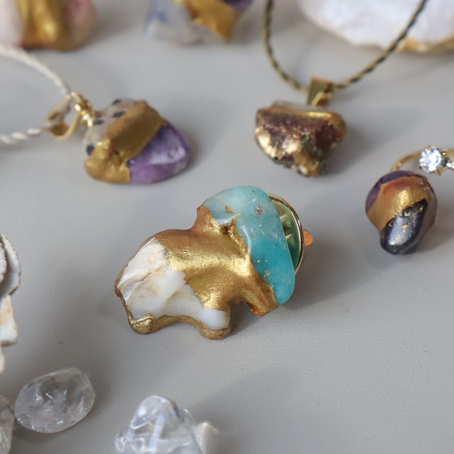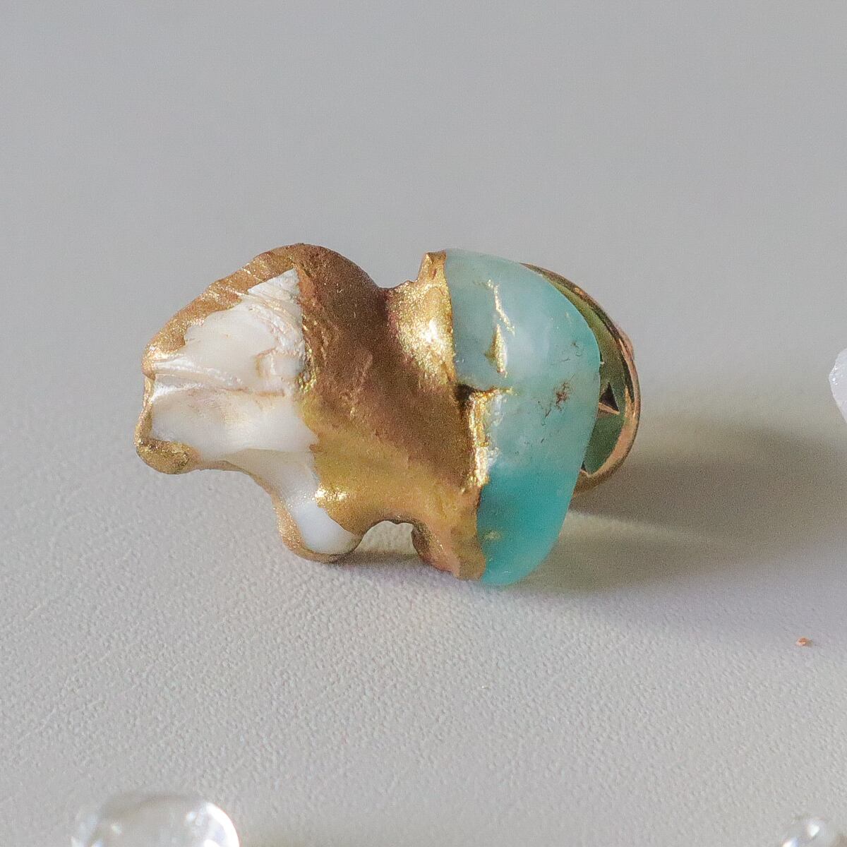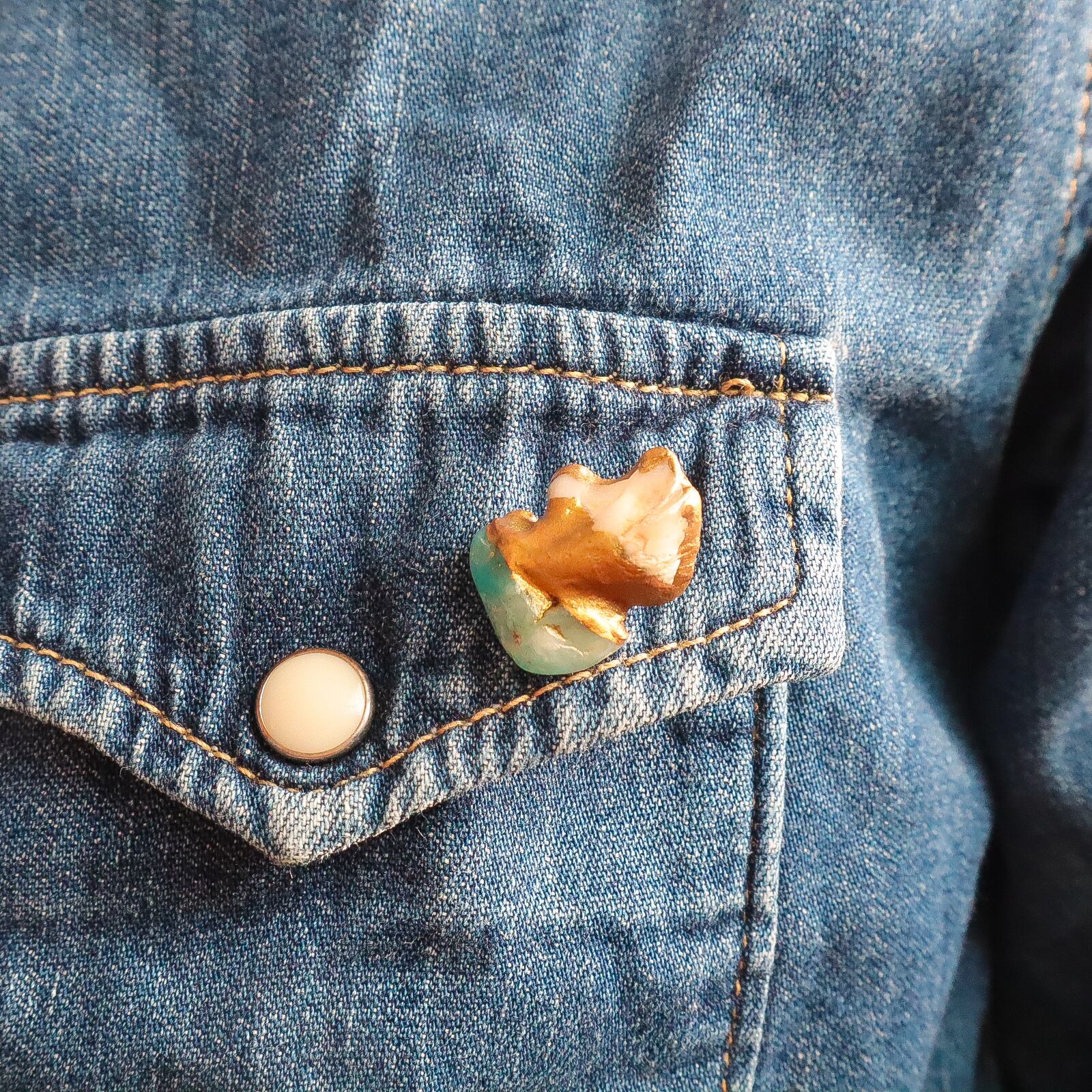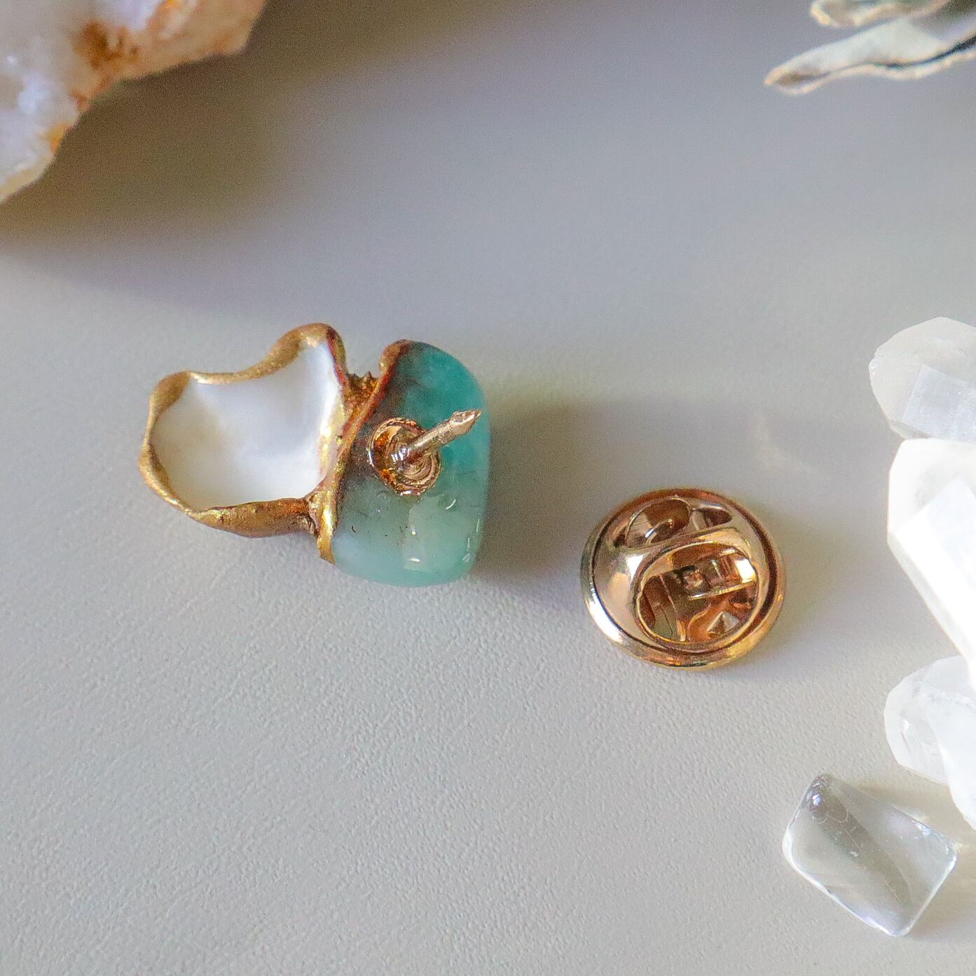 【一点もの】アマゾナイト×シェル金継ぎピンブローチ 天然石 アップサイクル 和服 和風 ギフト 守護石 誕生日