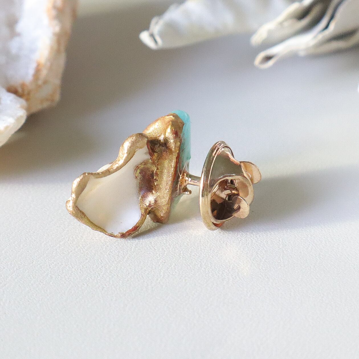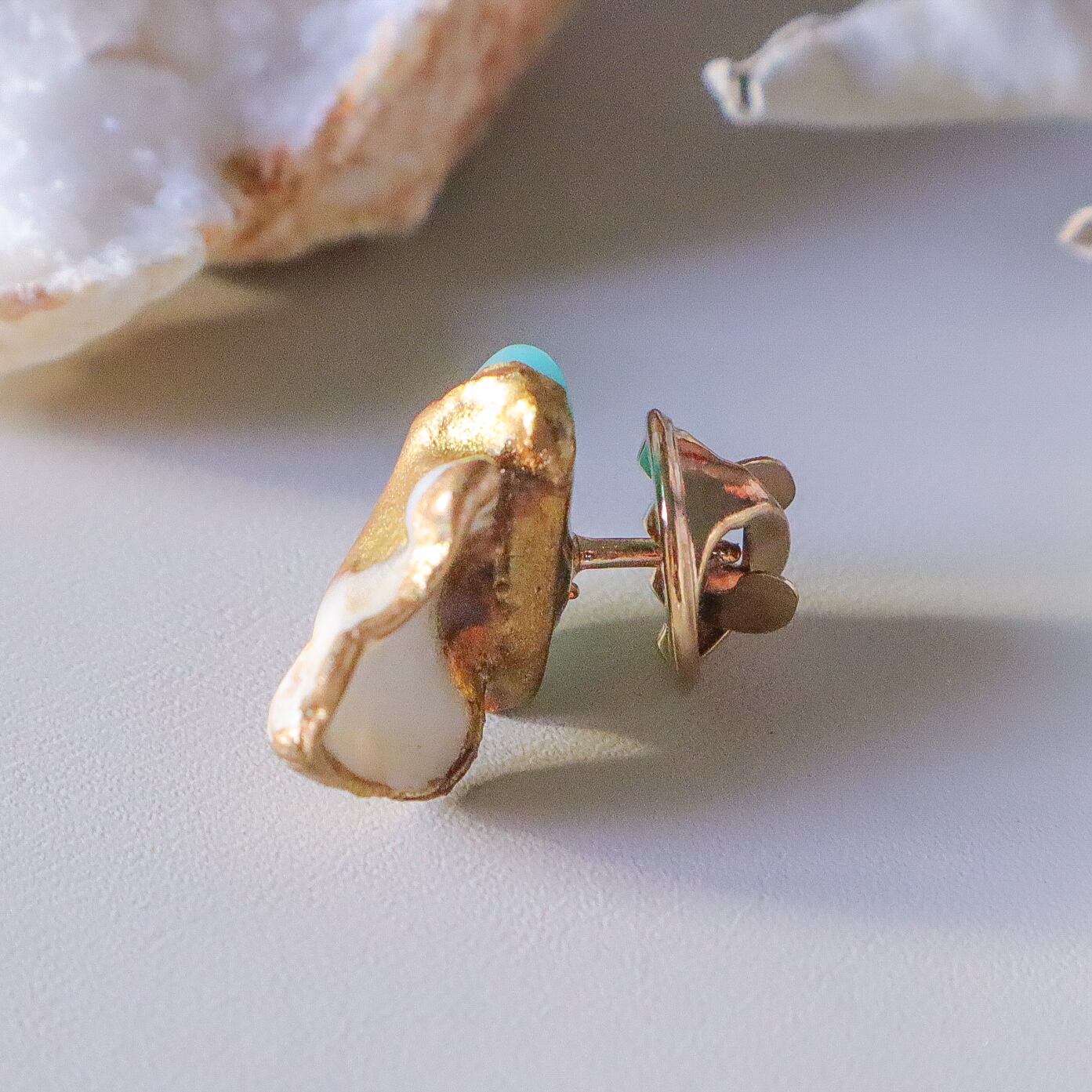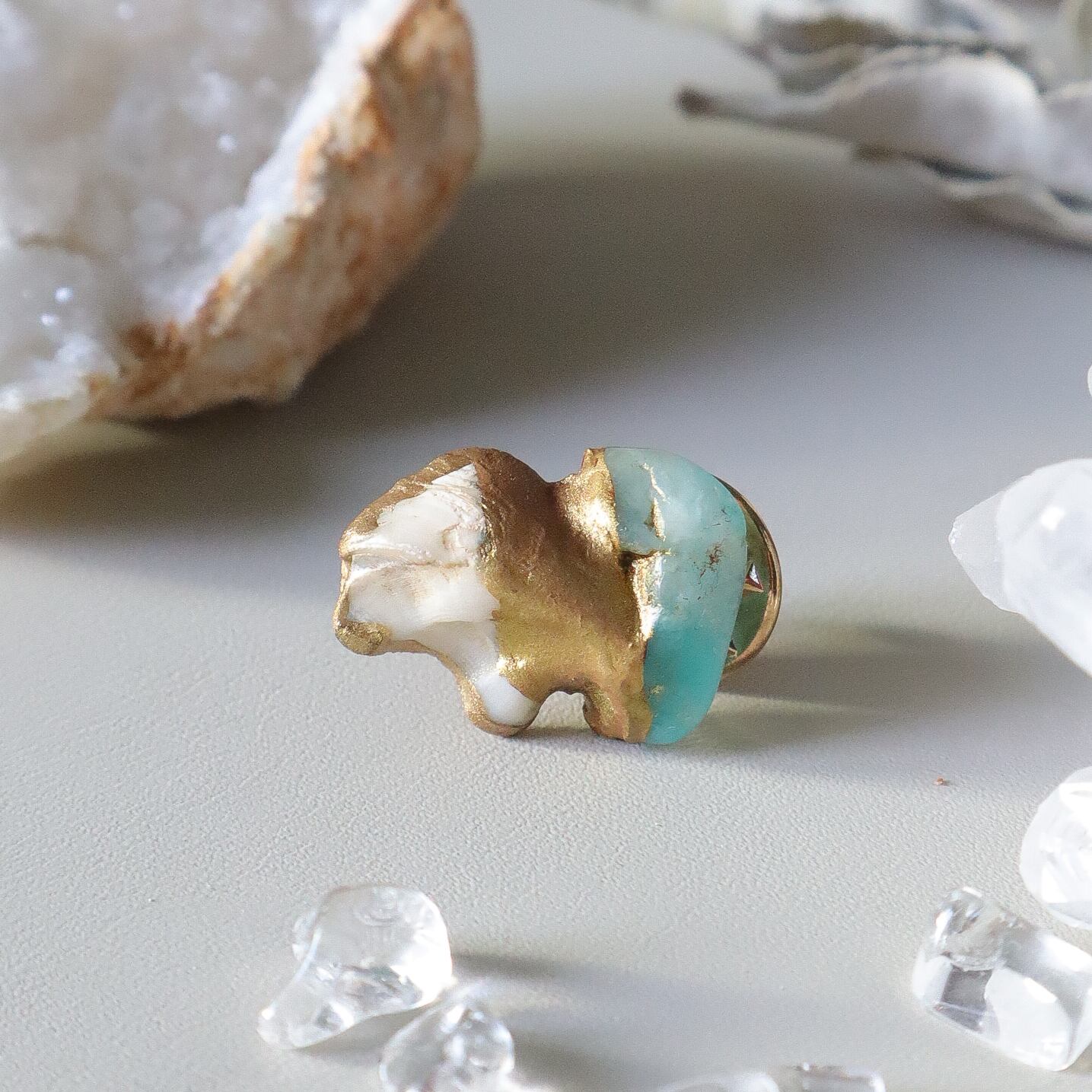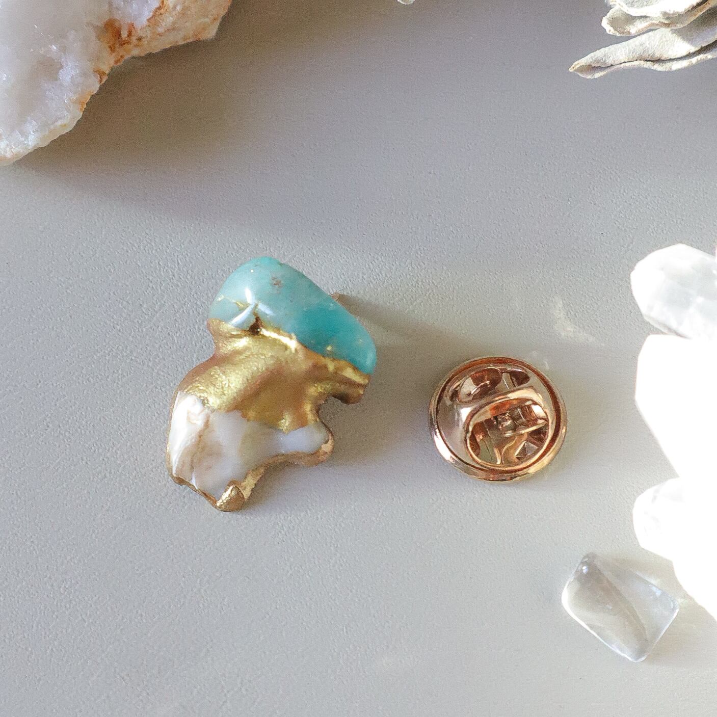 【一点もの】アマゾナイト×シェル金継ぎピンブローチ 天然石 アップサイクル 和服 和風 ギフト 守護石 誕生日
