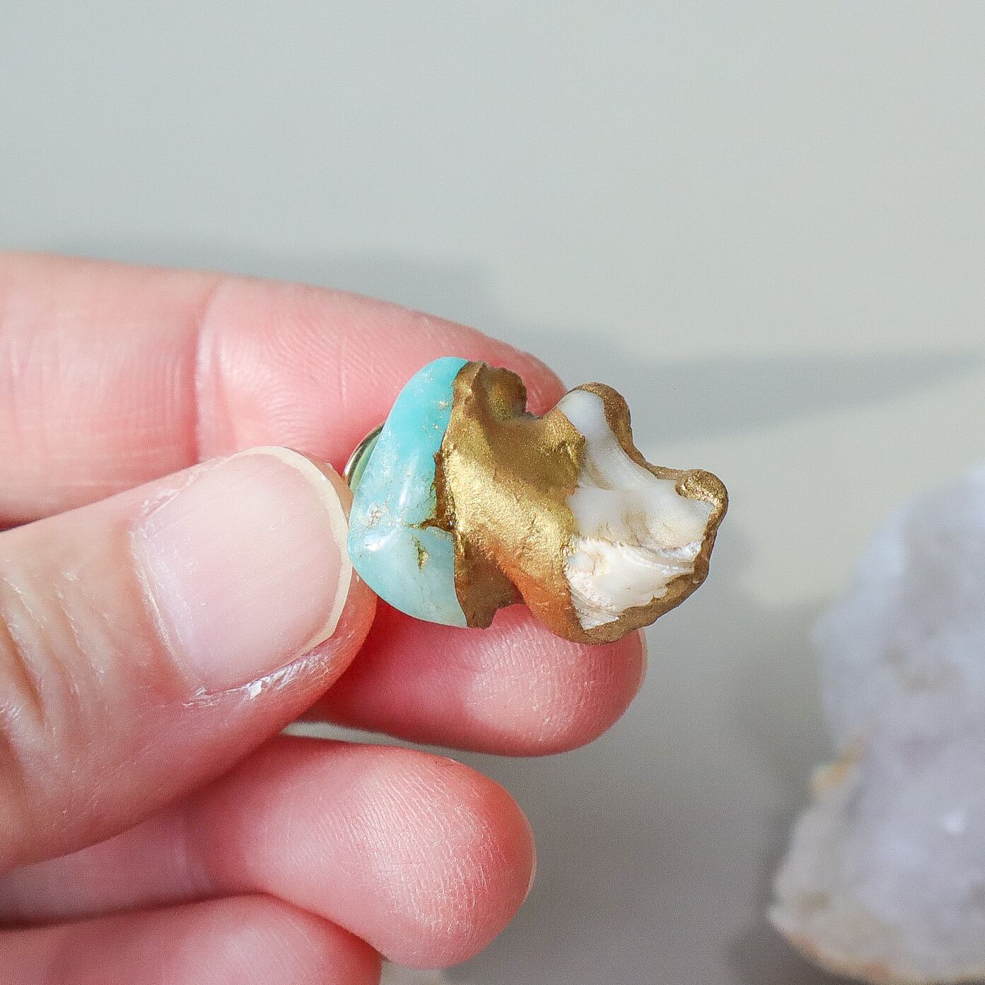 モダン金継ぎ、簡易金継ぎと呼ばれる方法がありますが、こちらの作品は手間や時間をかけて作る金継ぎ本来の本漆で天然石を継いでいます。