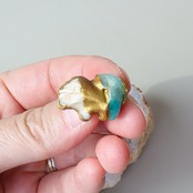 本物の貝殻を本漆を使った金継ぎピンブローチです。