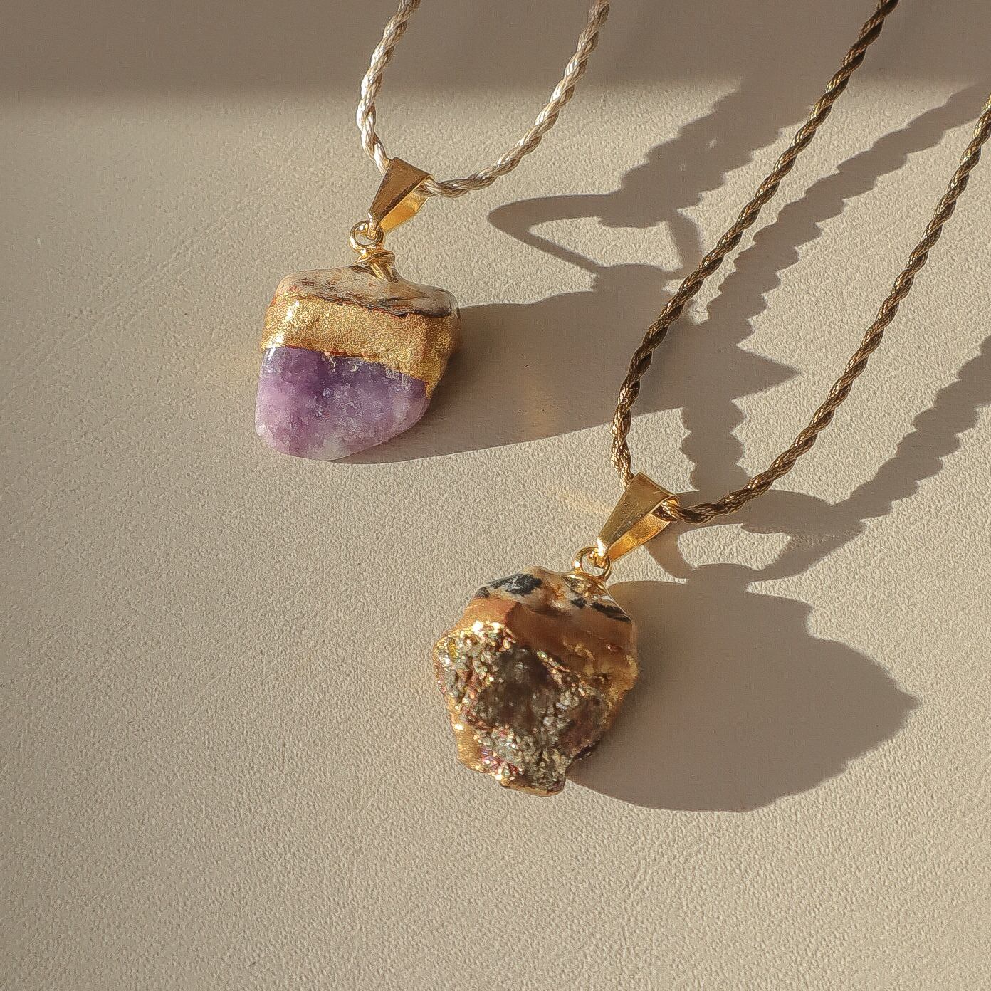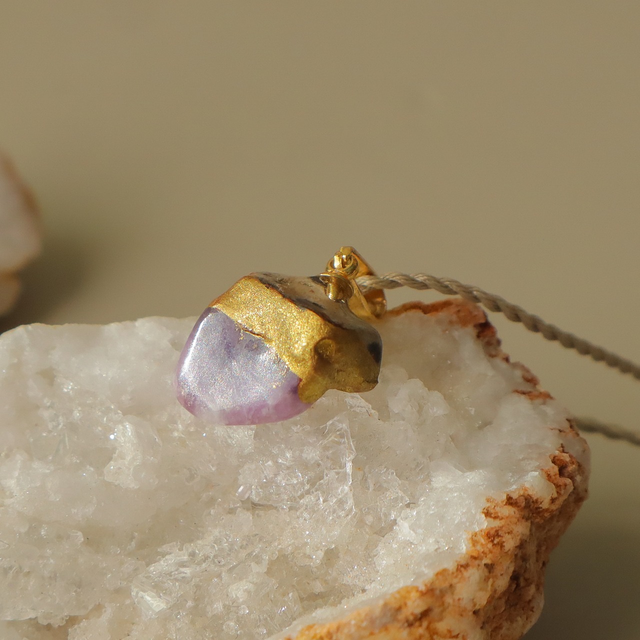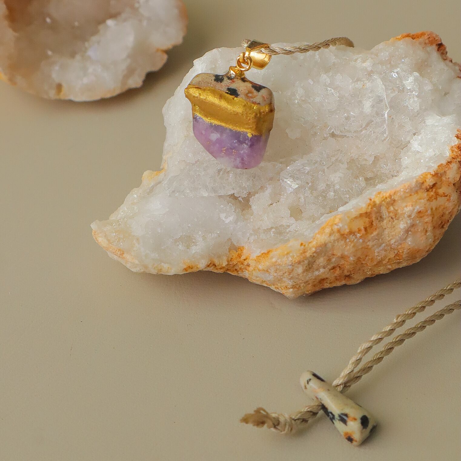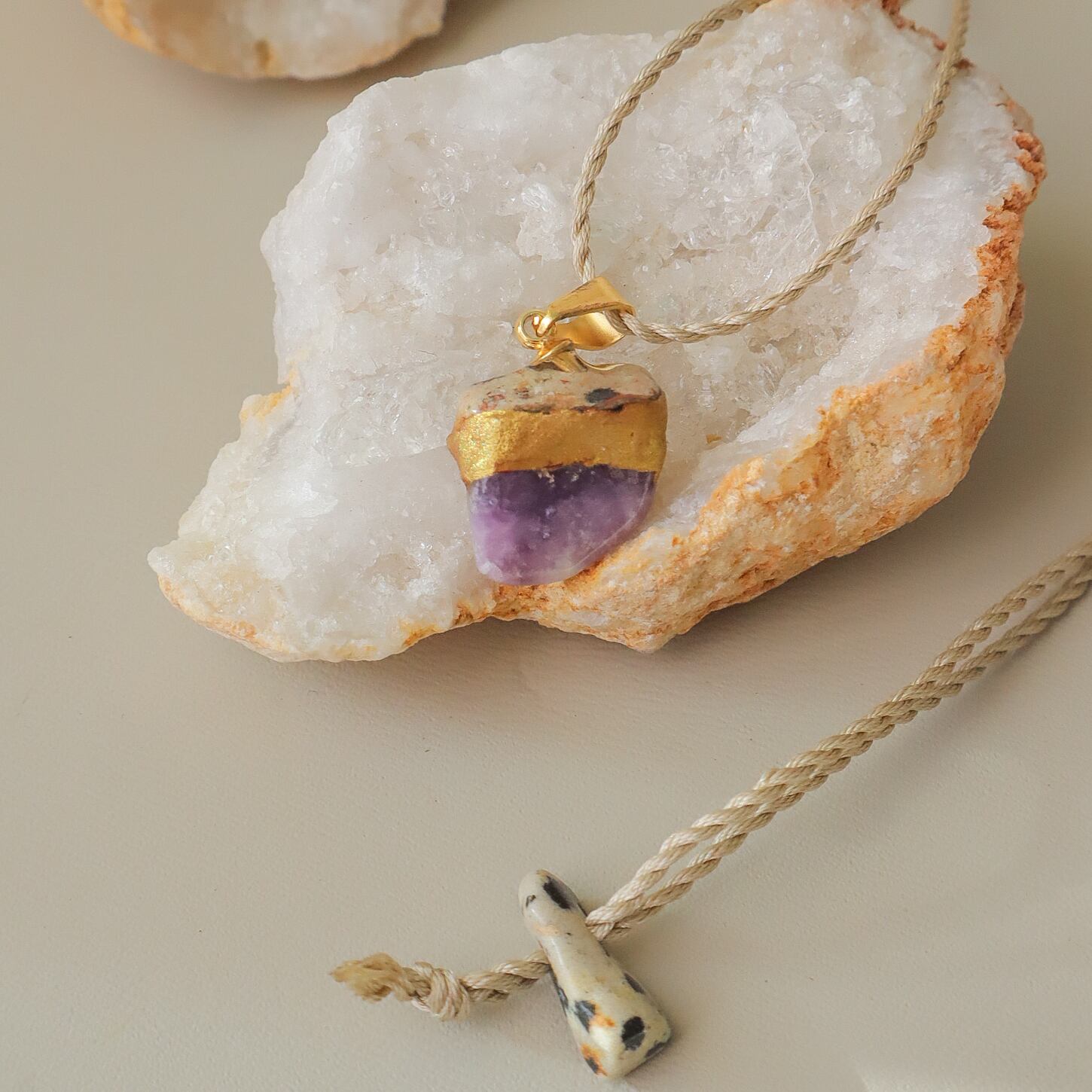 【一点もの】天然石の金継ぎシルク紐ペンダントネックレス 金属アレルギー対応 チャロアイト ダルメシアンジャスパー ギフト 守護石 誕生日