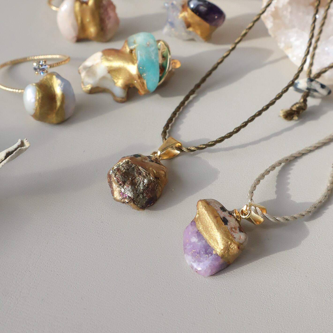 モダン金継ぎ、簡易金継ぎと呼ばれる方法がありますが、こちらの作品は手間や時間をかけて作る金継ぎ本来の本漆で天然石を継いでいます。