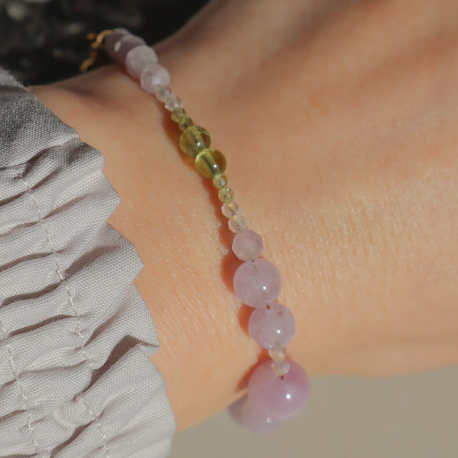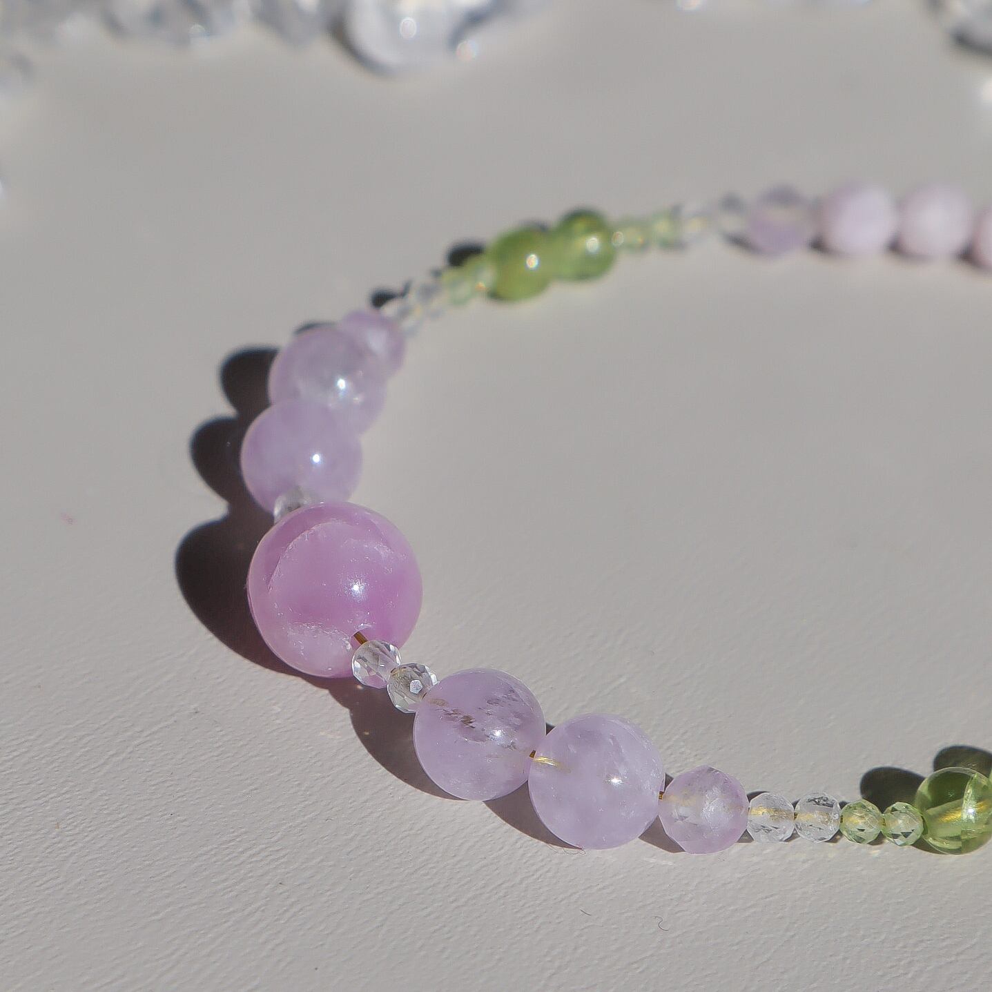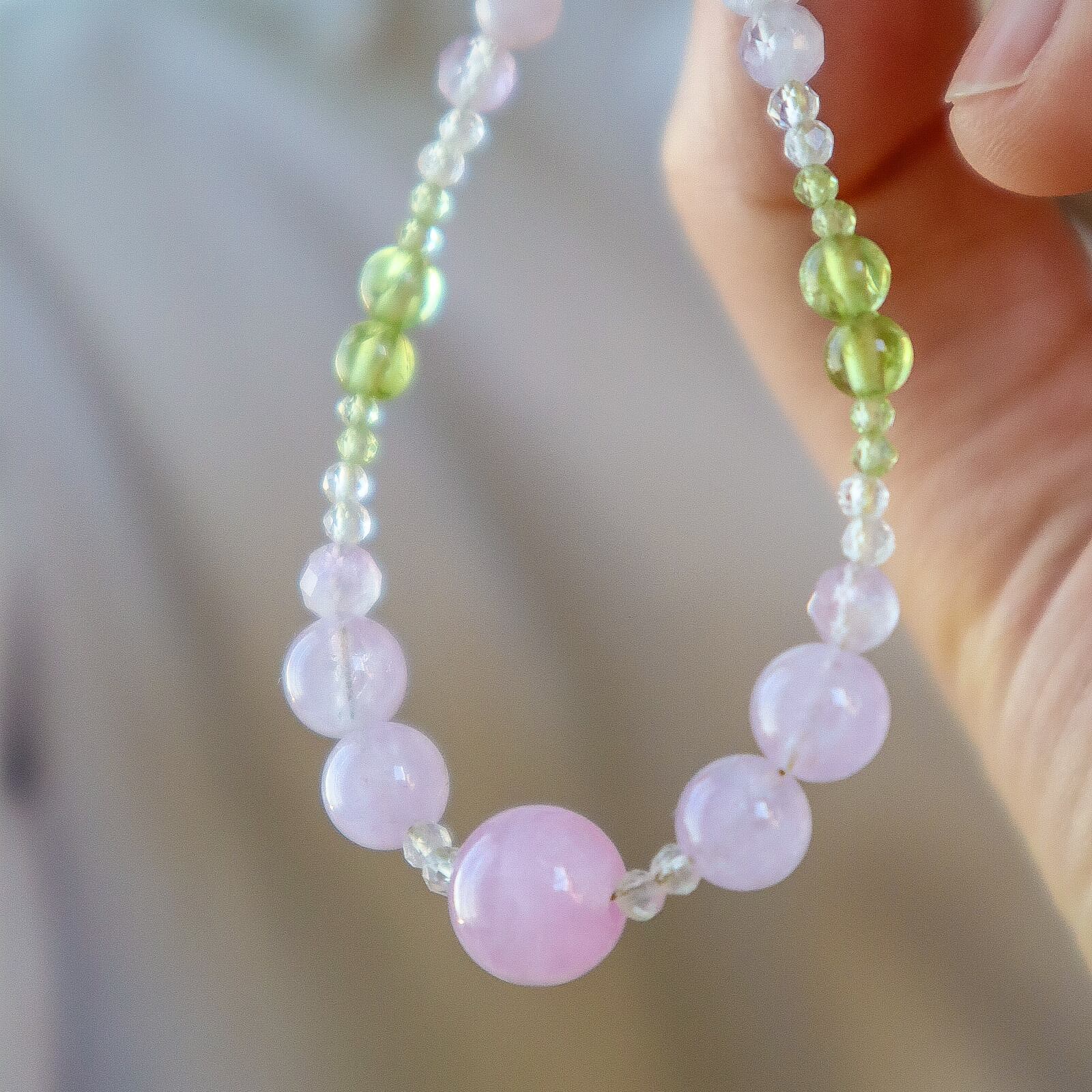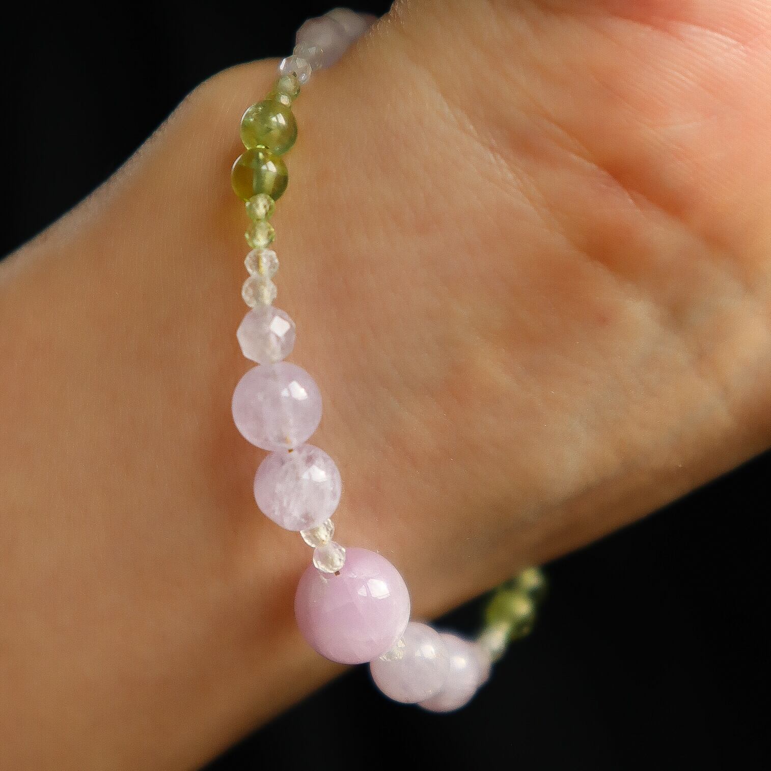 【期間&数量限定】Gentle Forgiveness ー心をほどく光ブレスレットー 天然石 2月誕生石 8月誕生石 9月誕生石 クンツァイト ペリドット ラベンダーアメジスト