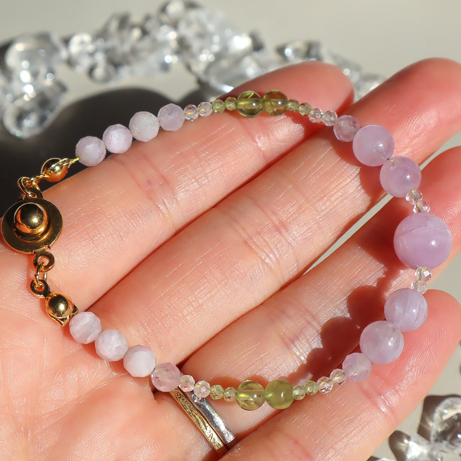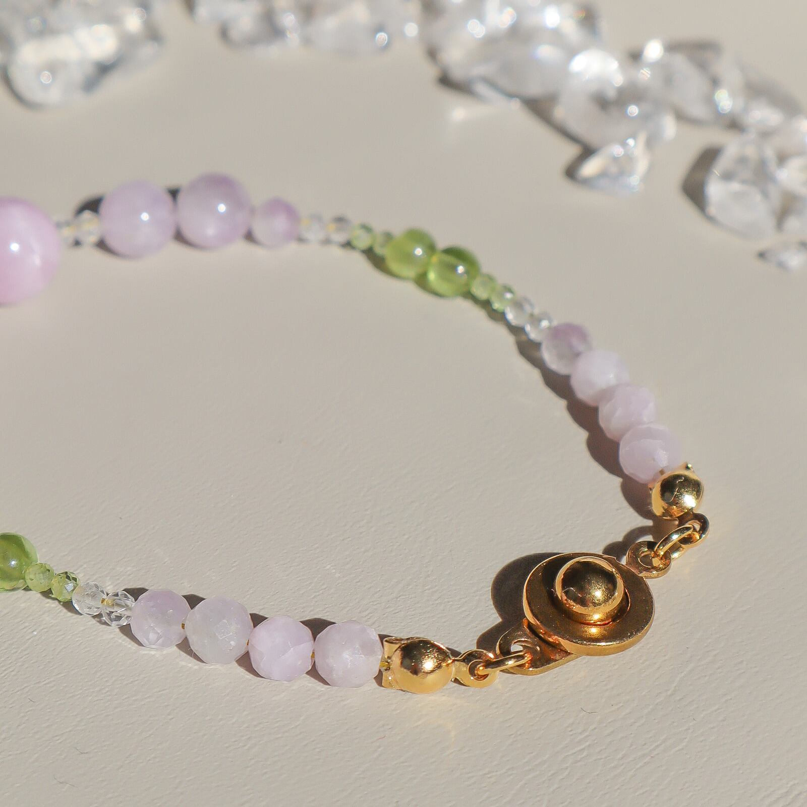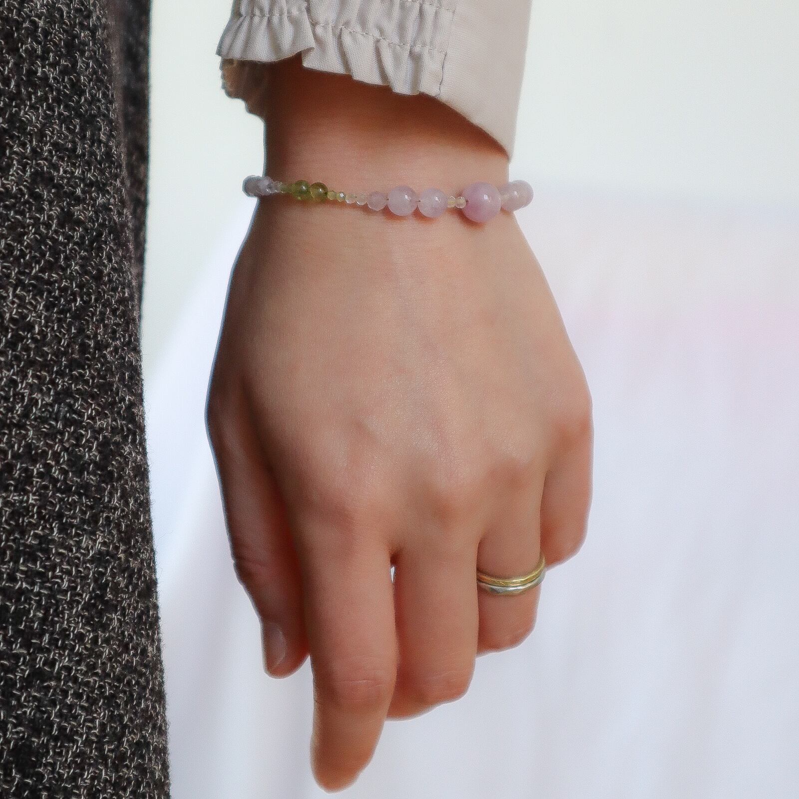 【期間&数量限定】Gentle Forgiveness ー心をほどく光ブレスレットー 天然石 2月誕生石 8月誕生石 9月誕生石 クンツァイト ペリドット ラベンダーアメジスト