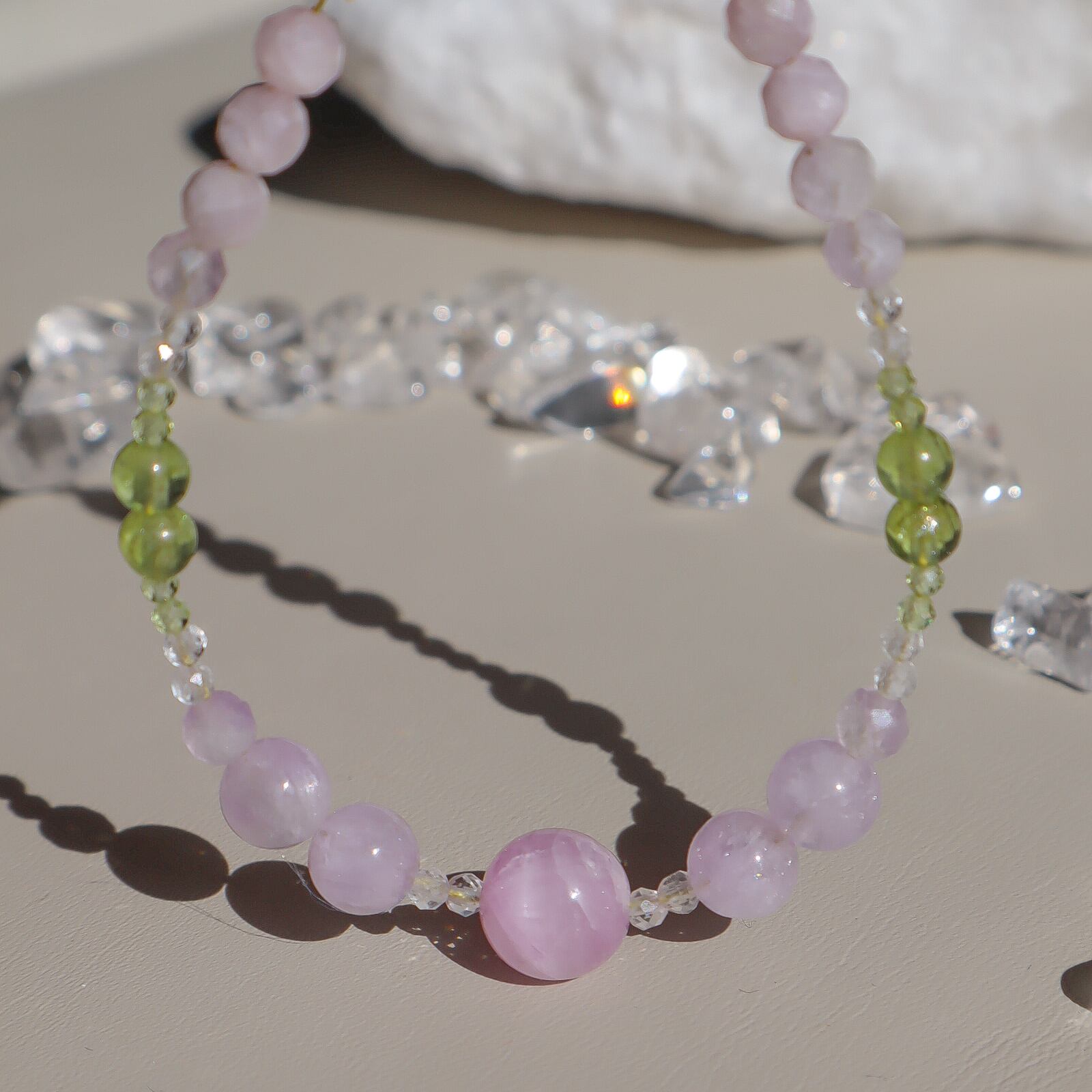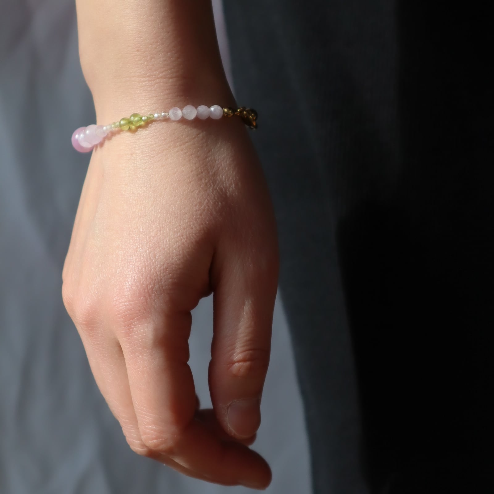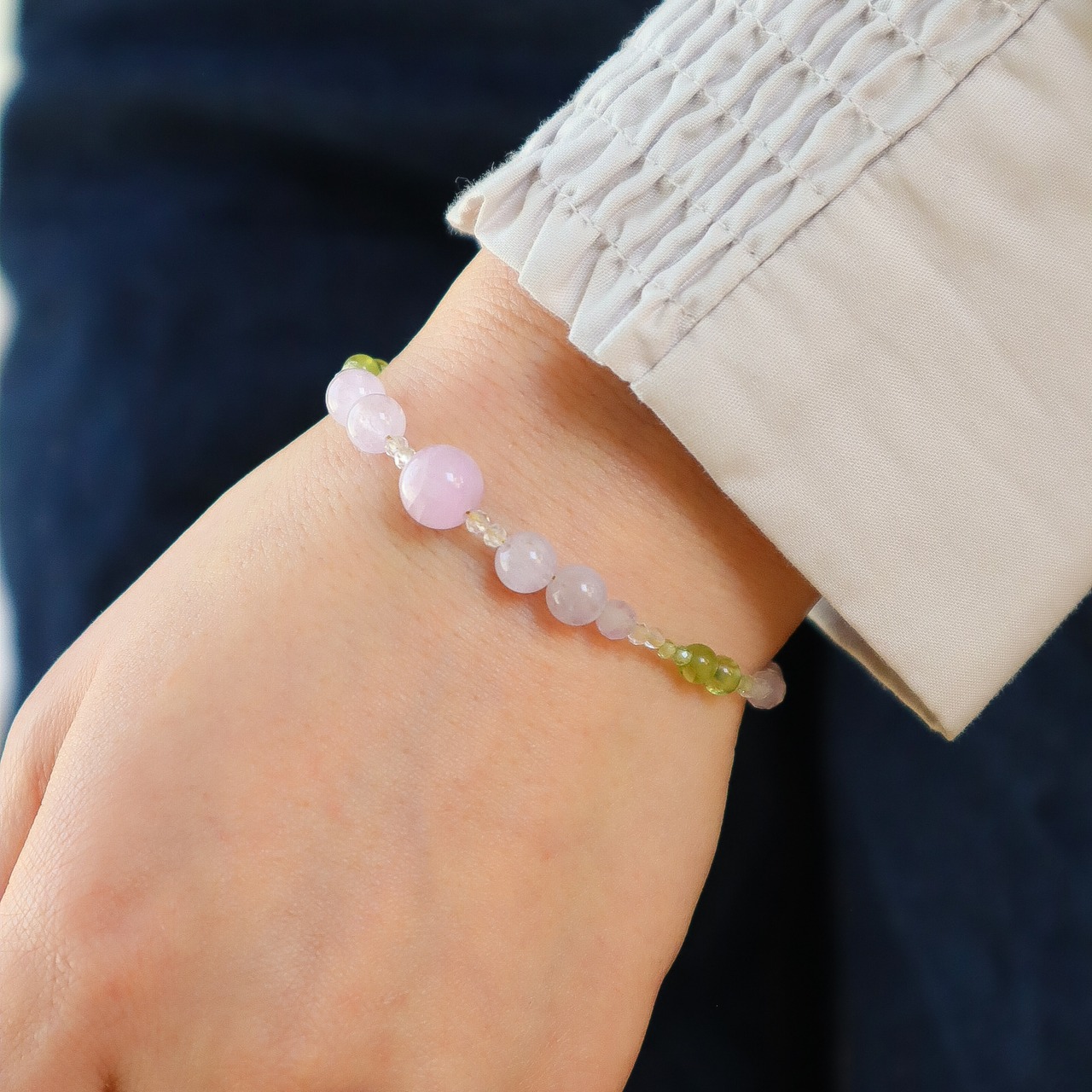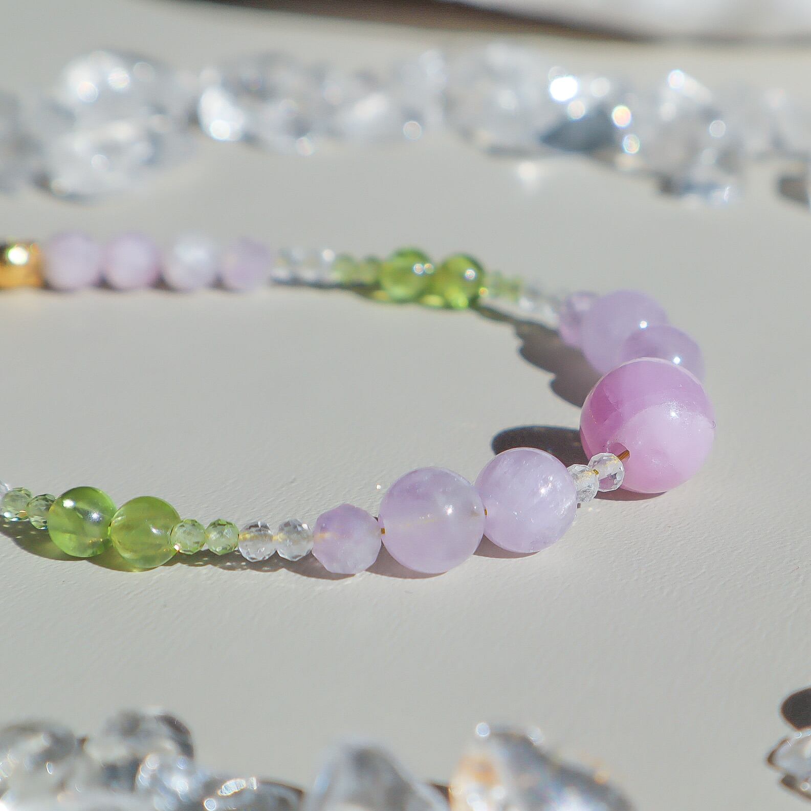 【期間&数量限定】Gentle Forgiveness ー心をほどく光ブレスレットー 天然石 2月誕生石 8月誕生石 9月誕生石 クンツァイト ペリドット ラベンダーアメジスト