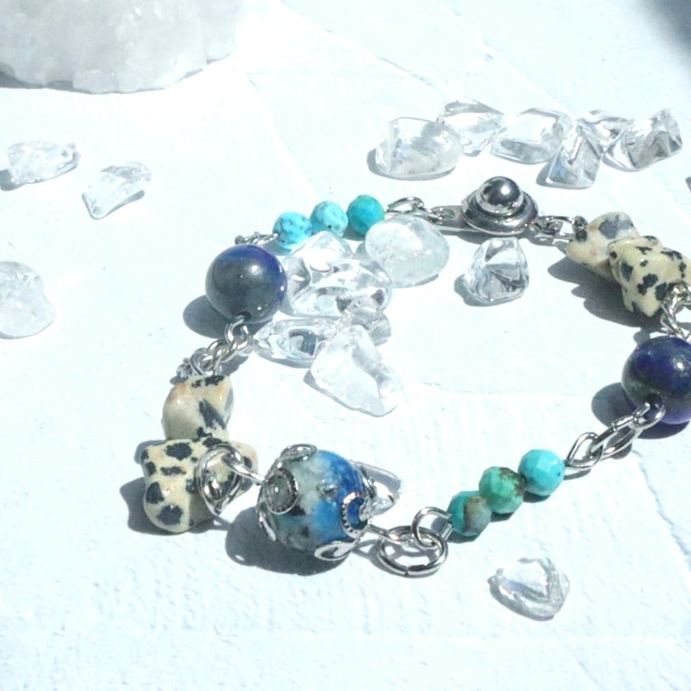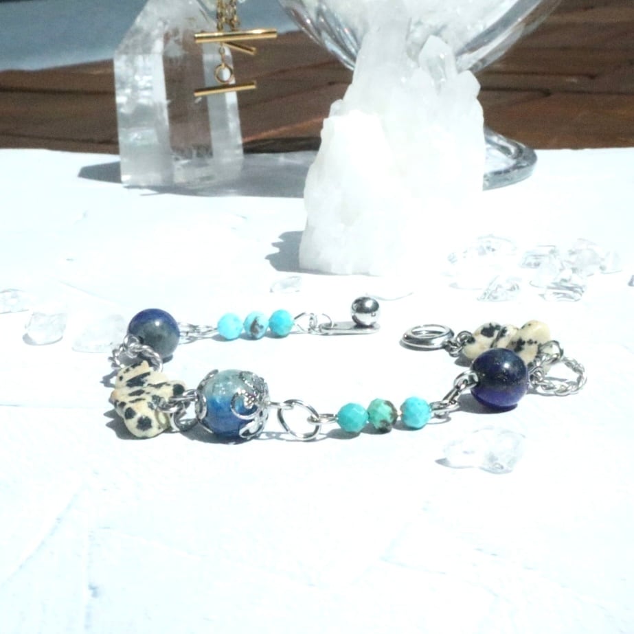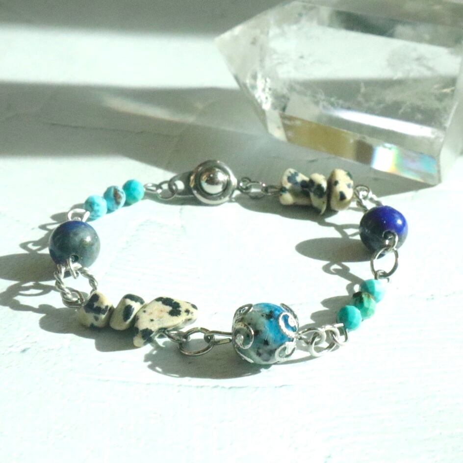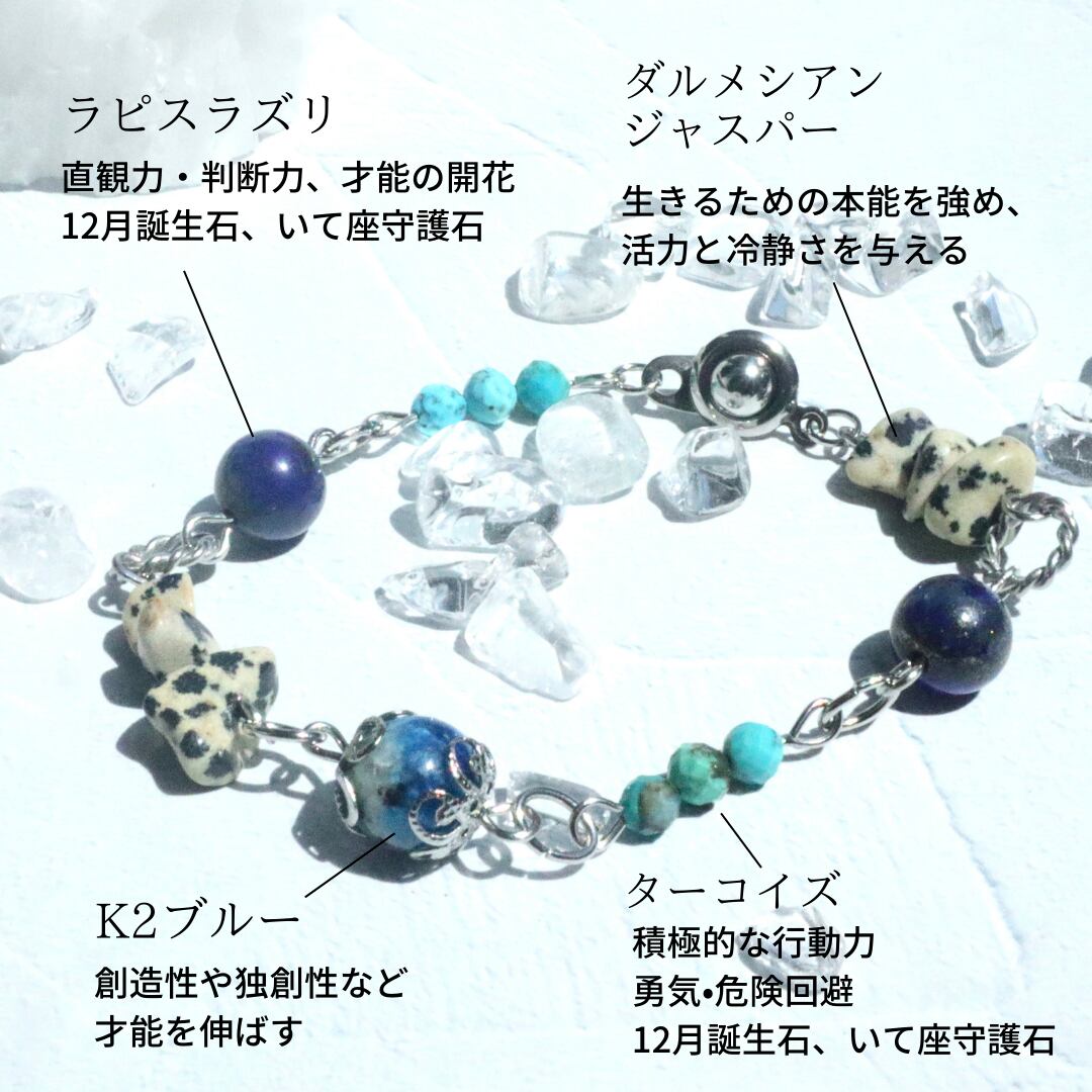自由さと勇気の天然石お守りブレスレット ターコイズ ラピスラズリ K2ブルー ネイティブ ヘルシー シルバー 鉱物 ブルー 青 12月 誕生石 守護石 射手座