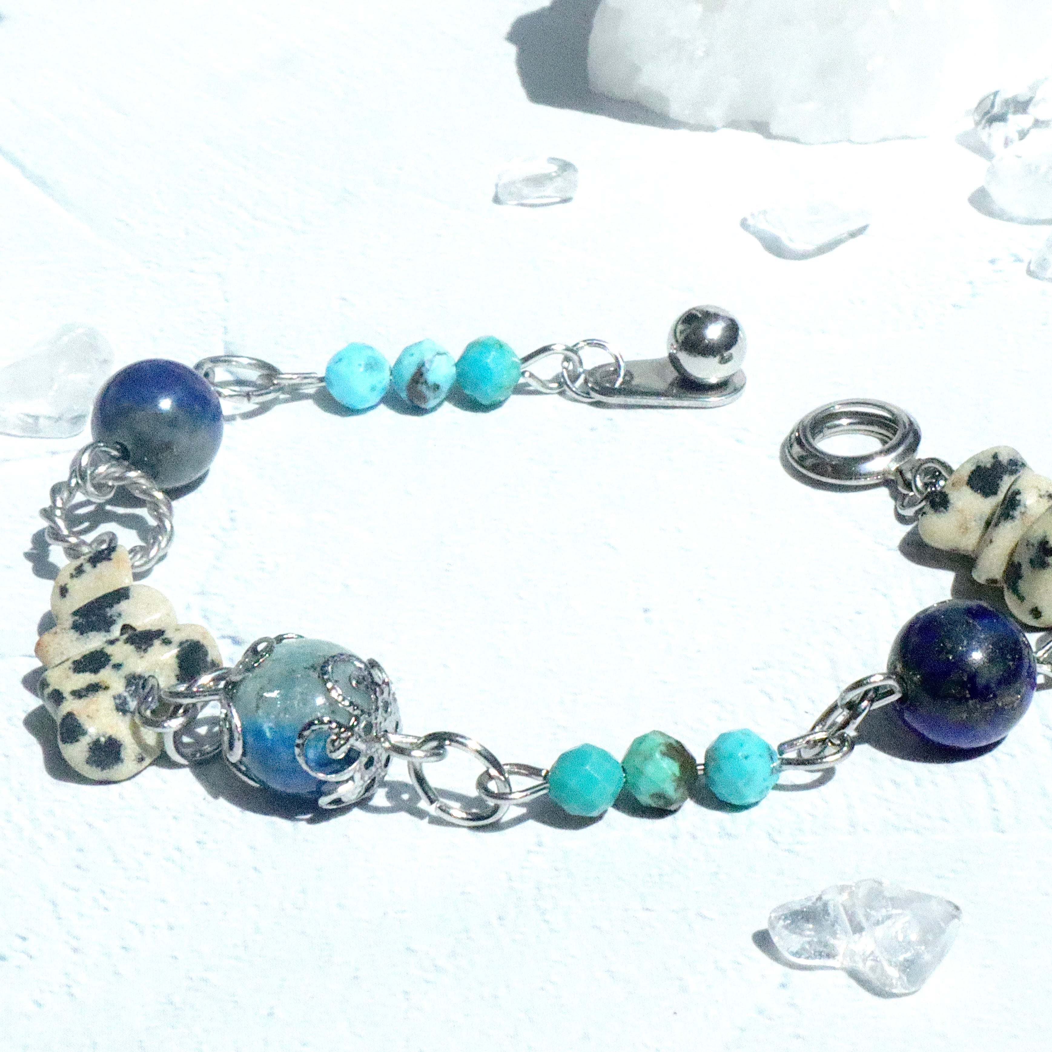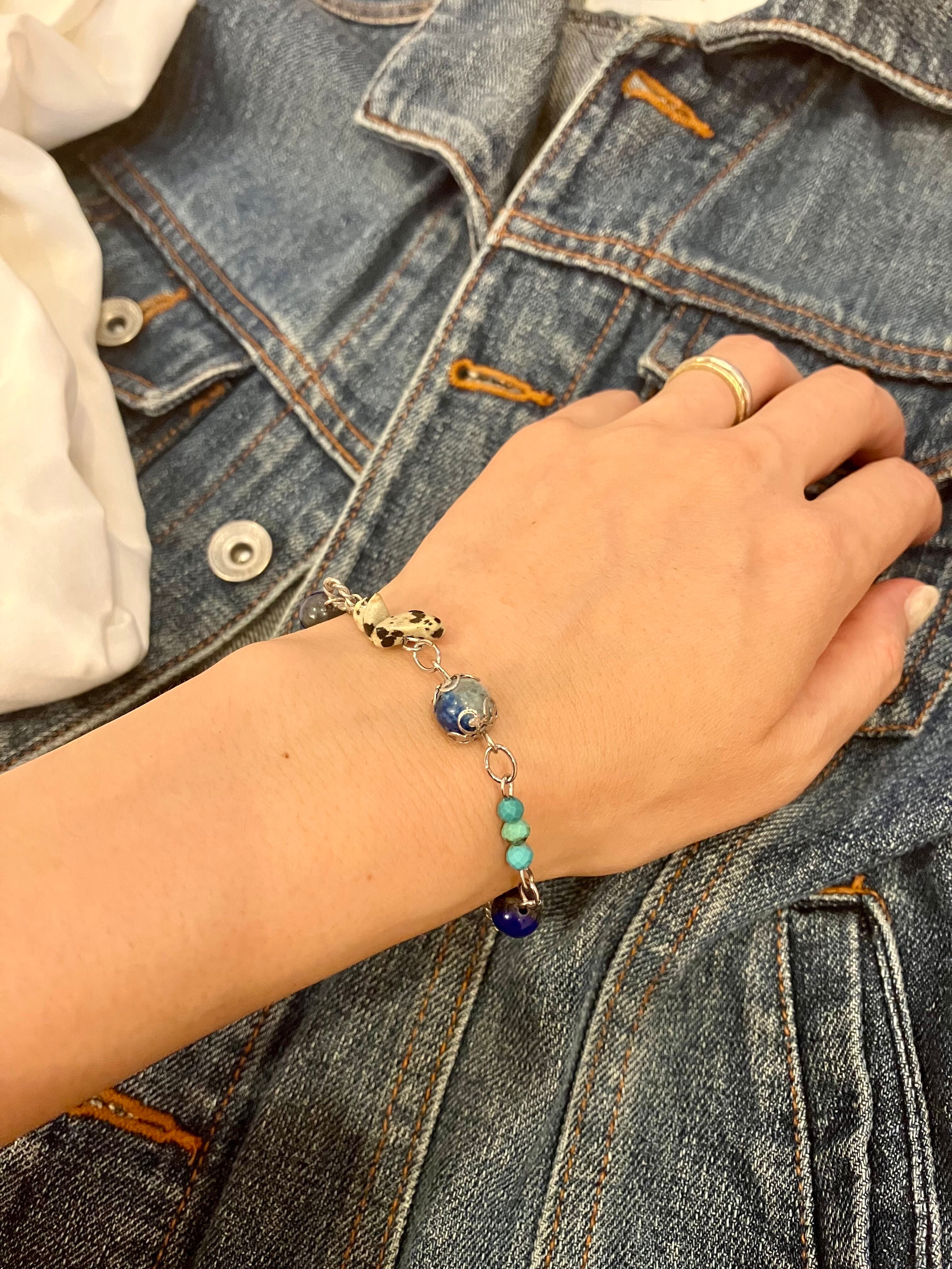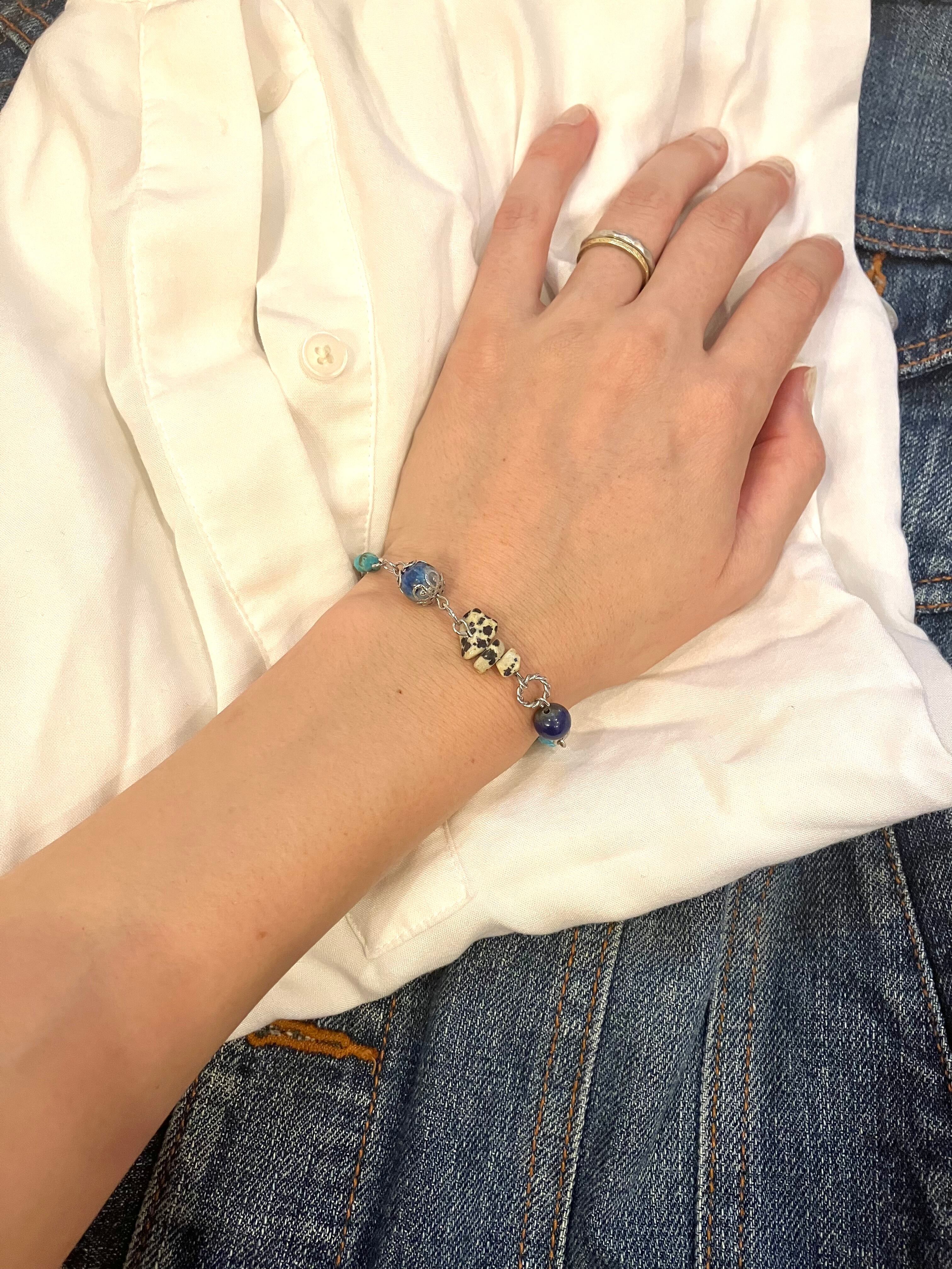 自由さと勇気の天然石お守りブレスレット ターコイズ ラピスラズリ K2ブルー ネイティブ ヘルシー シルバー 鉱物 ブルー 青 12月 誕生石 守護石 射手座