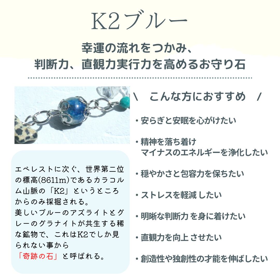 大自然の高みでのみ生まれる希少な「奇跡の石」K2ブルーをメインに、