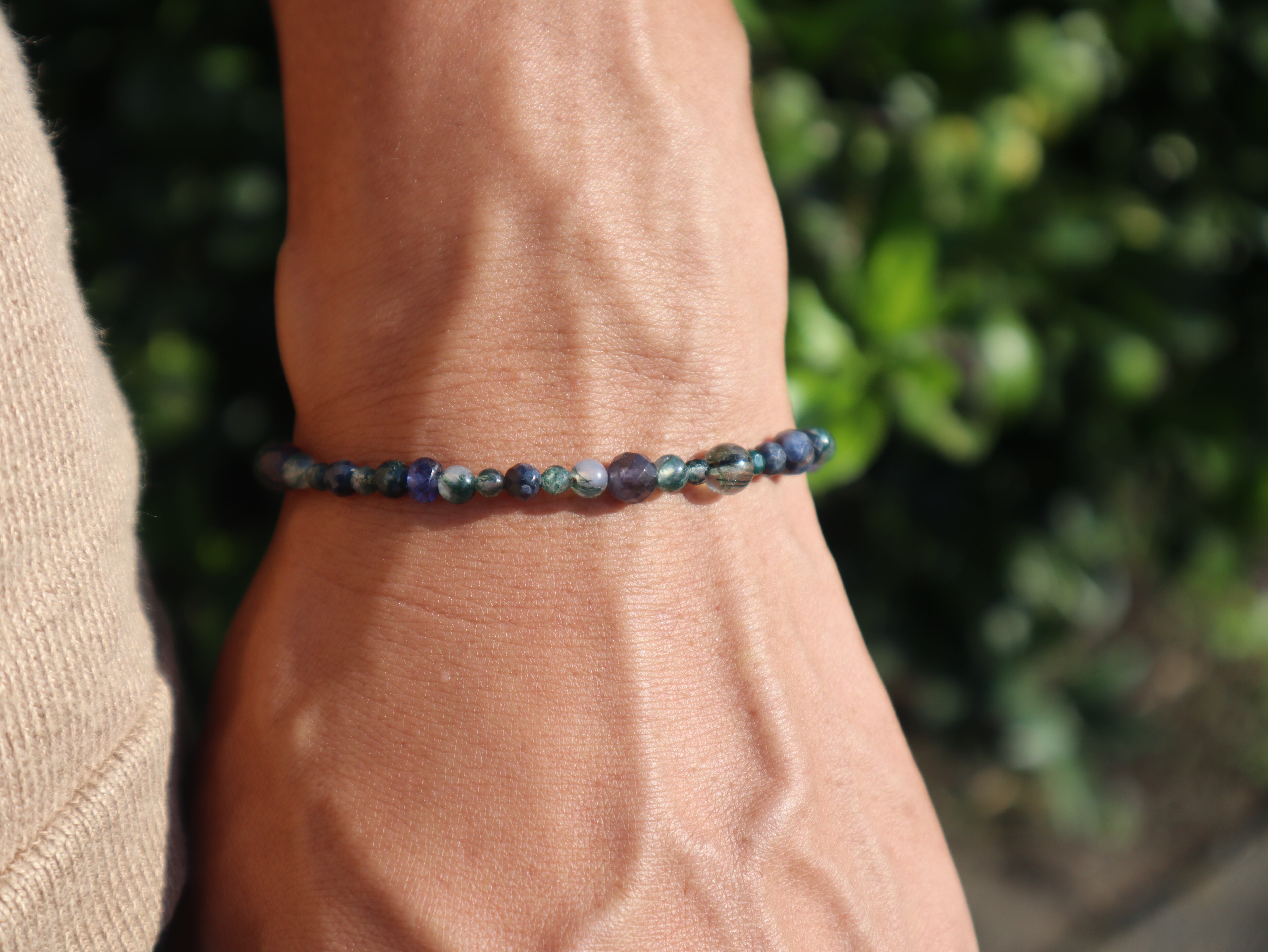 ブルー・すみれ色・グレーと3色に見える多色性を持つ石。