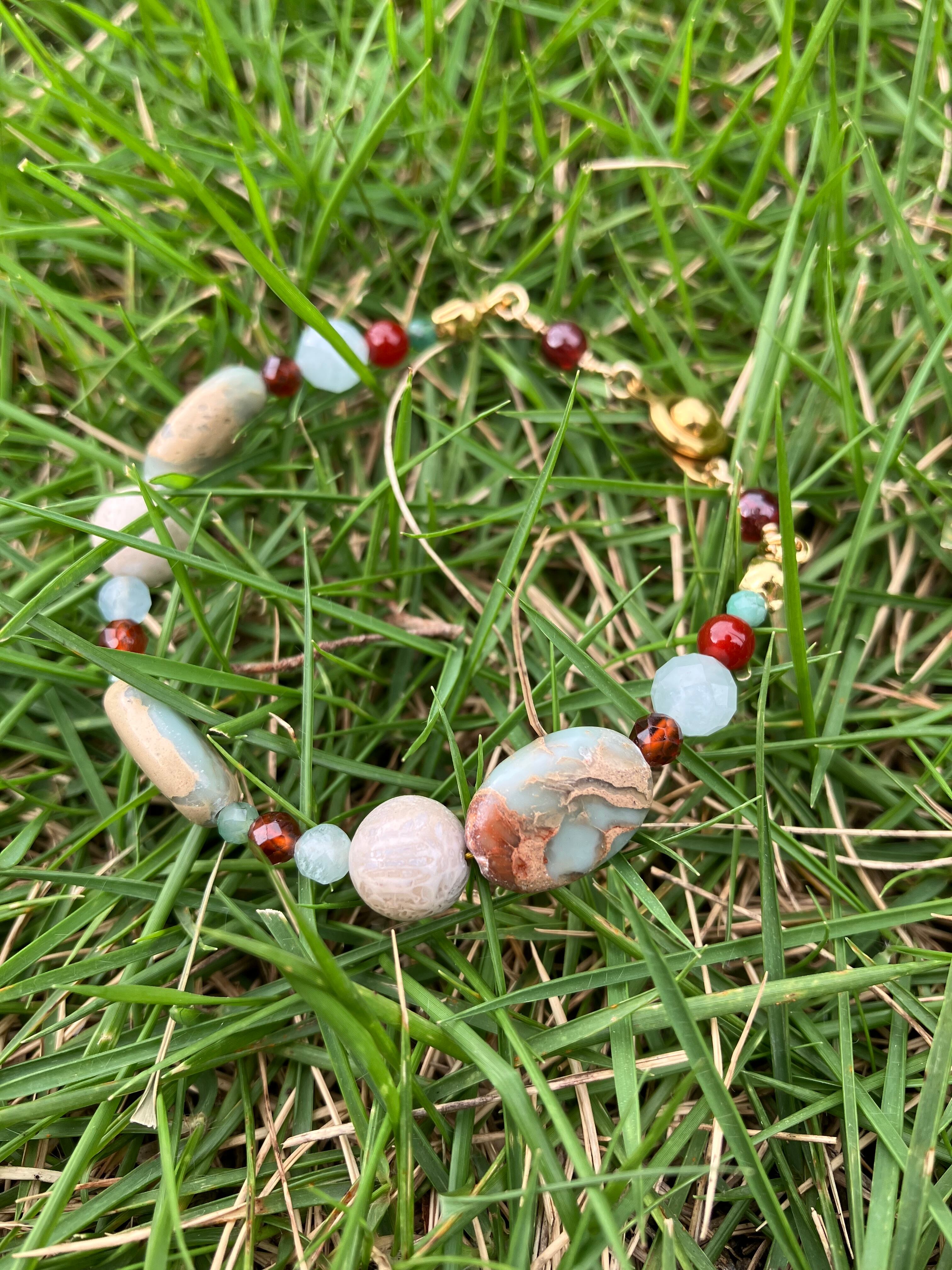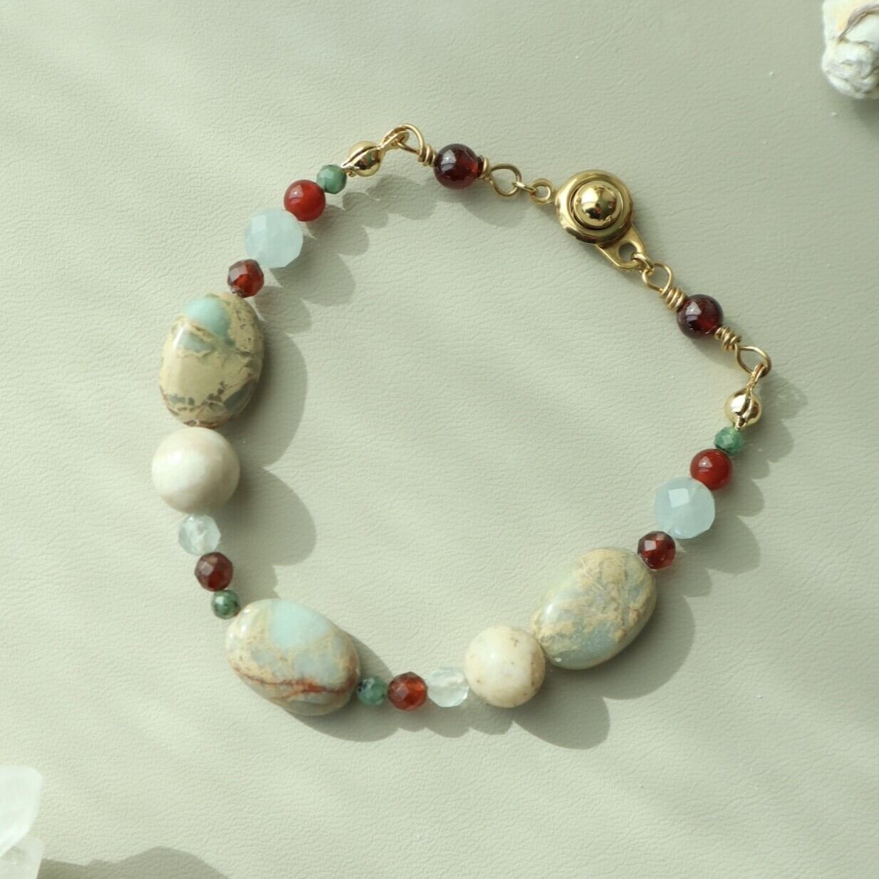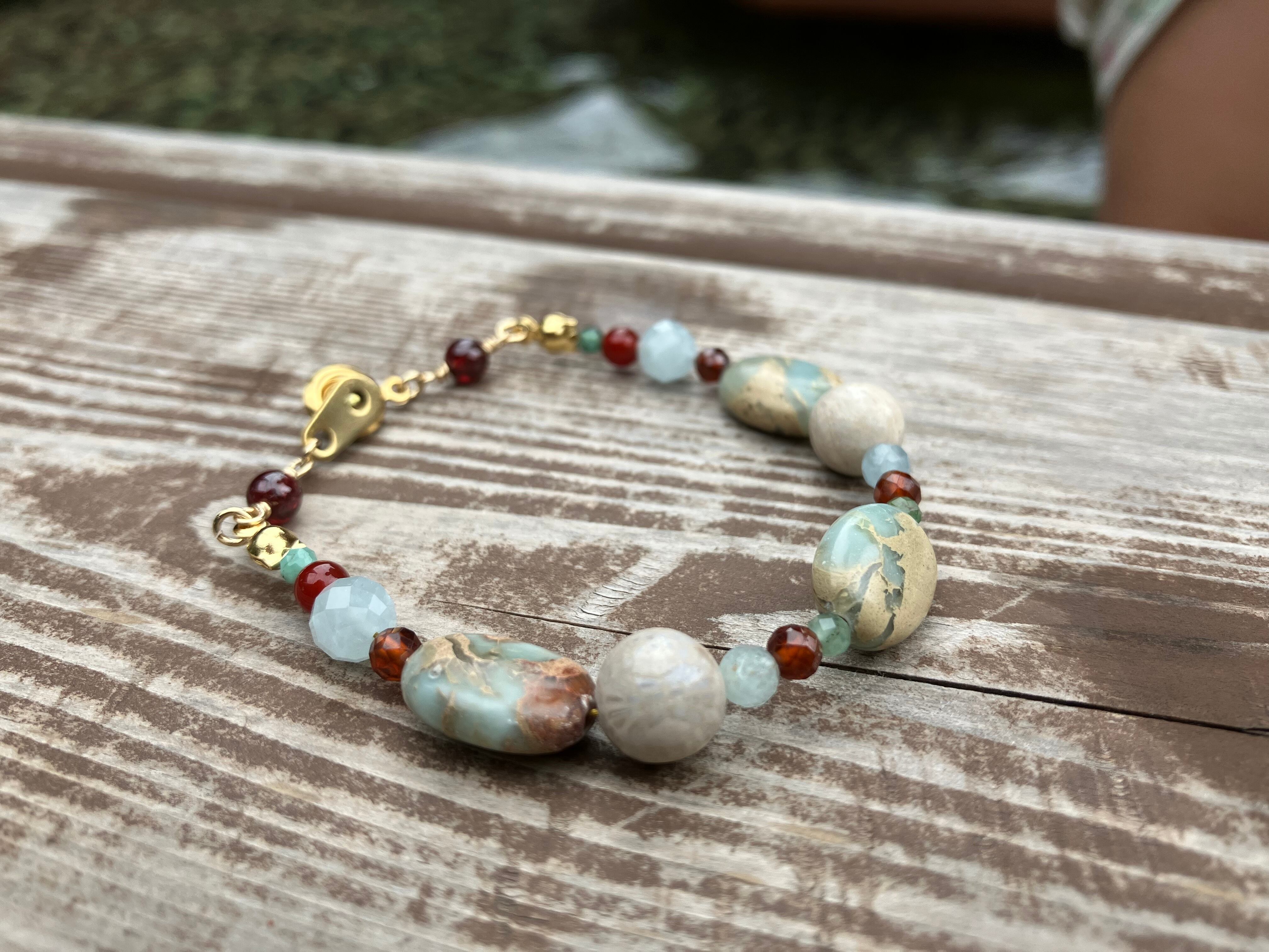 おひつじ座 北欧カラーの天然石お守りブレスレット 誕生石 くすみカラー 金属アレルギー クリスマス 大ぶり ガーネット