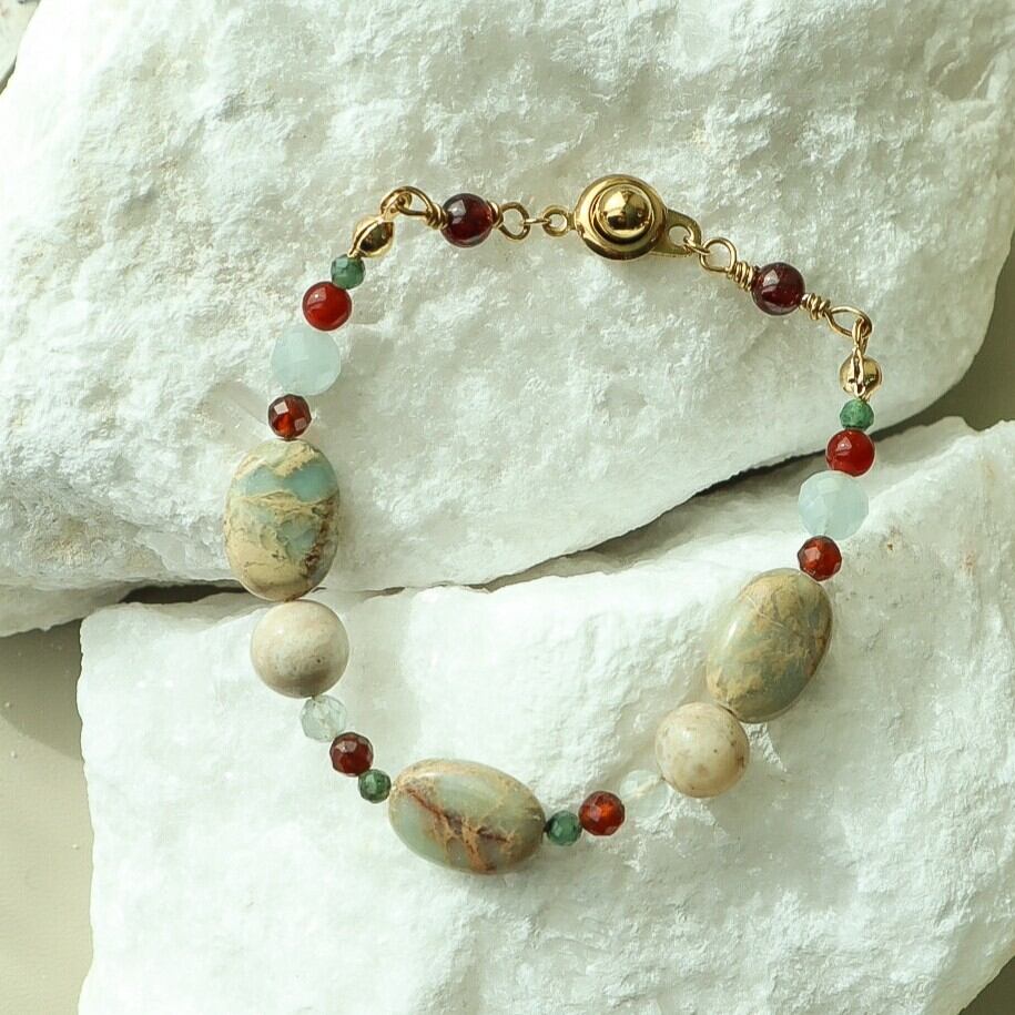 くすみカラーのベージュで、海の力を秘めた癒しの石