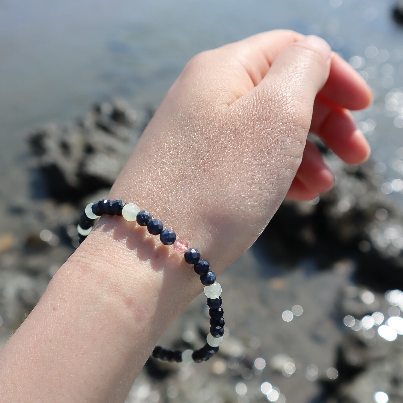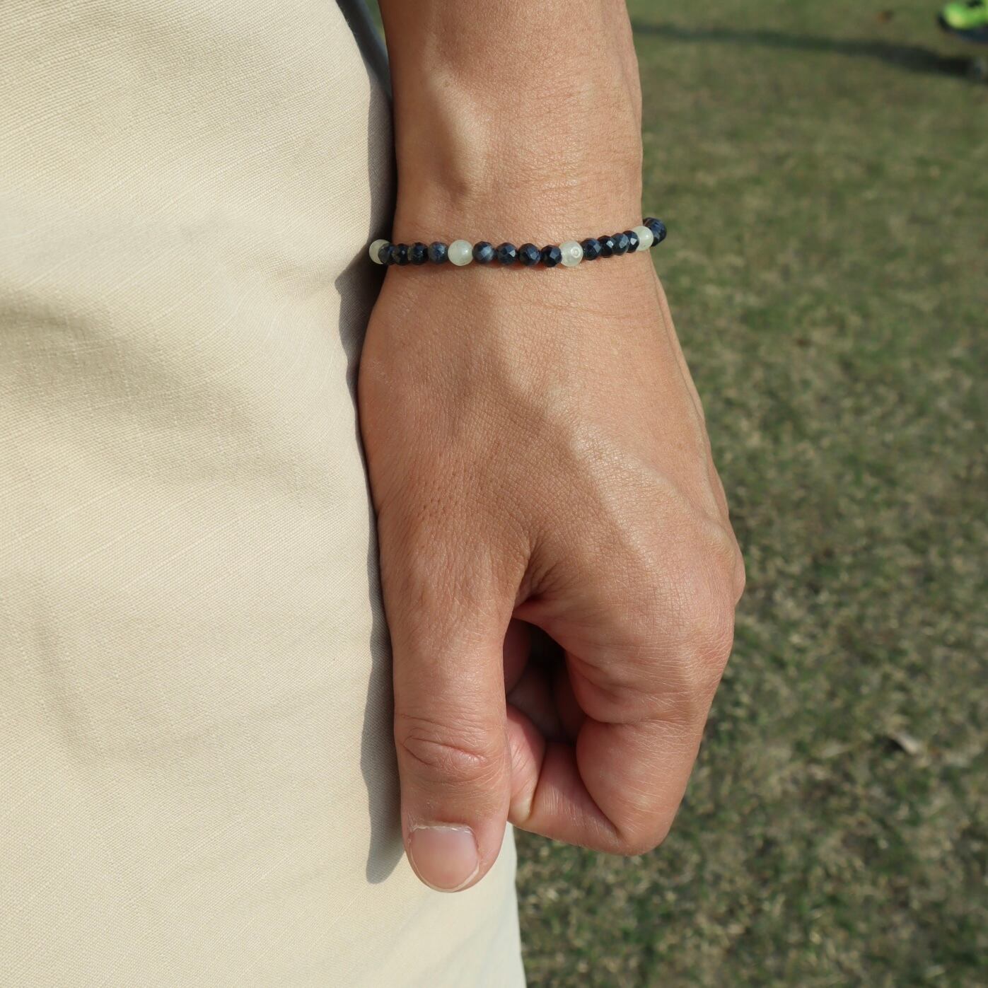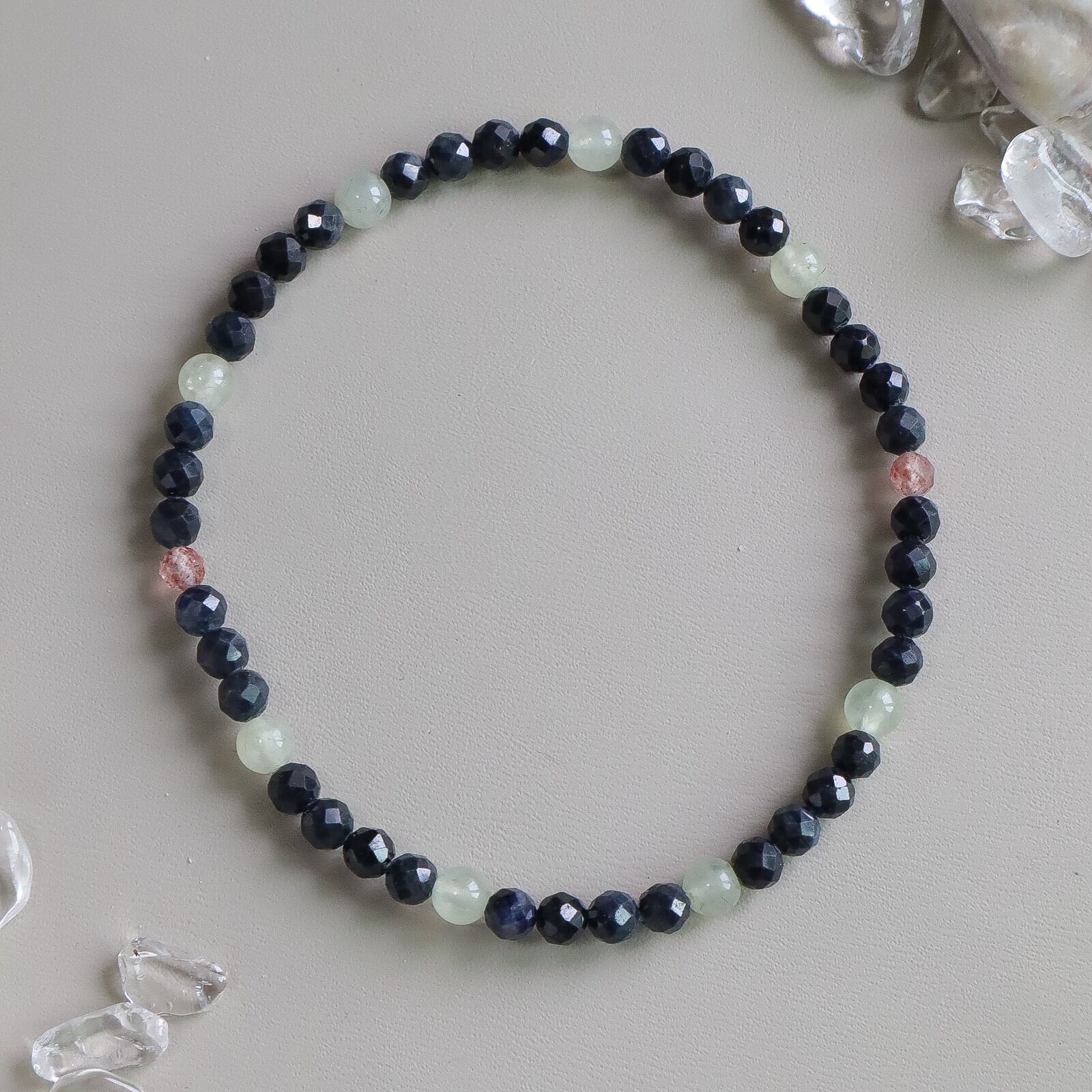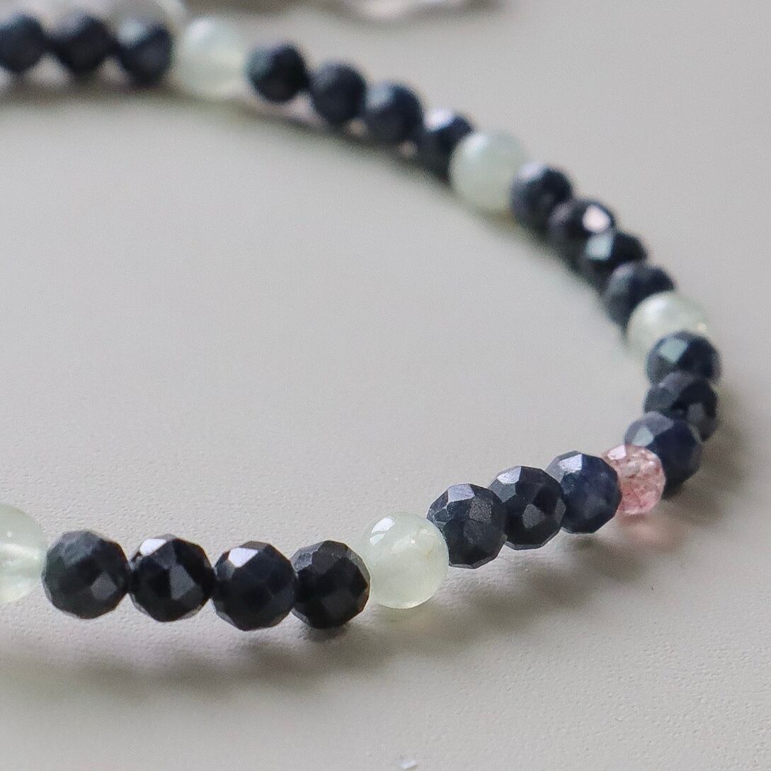 【2点のみ】サファイアの天然石お守りブレスレット 金属アレルギー対応 天秤座 ネイビー 華奢 10月 9月 誕生石 モノトーン 父の日 ギフト