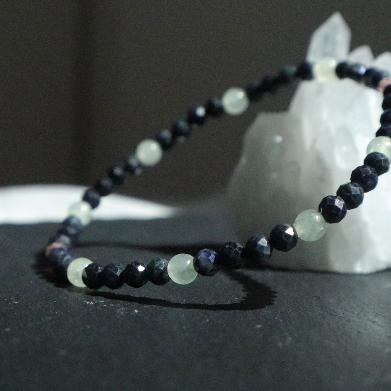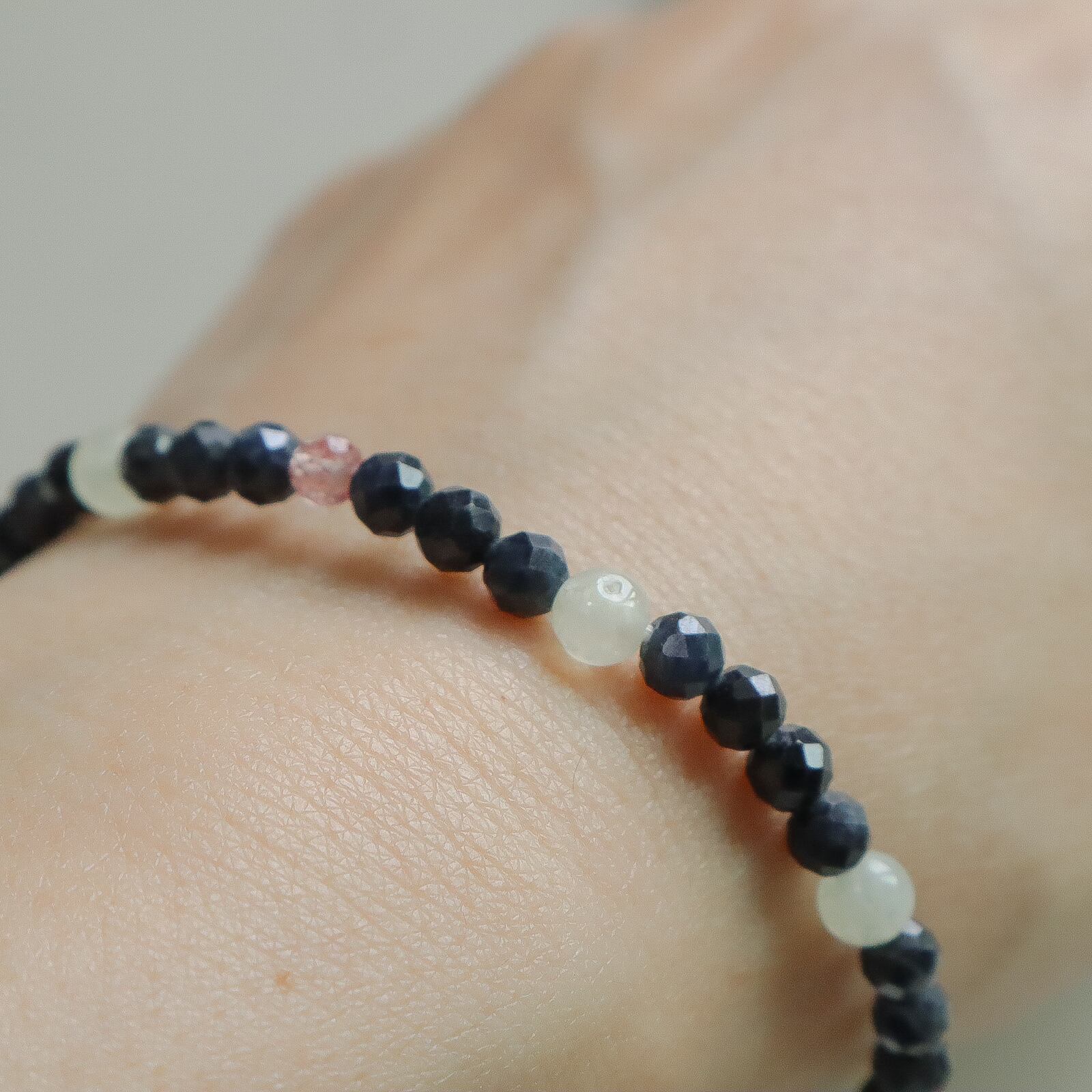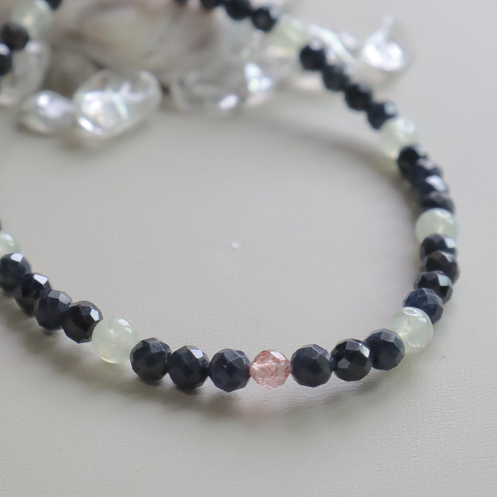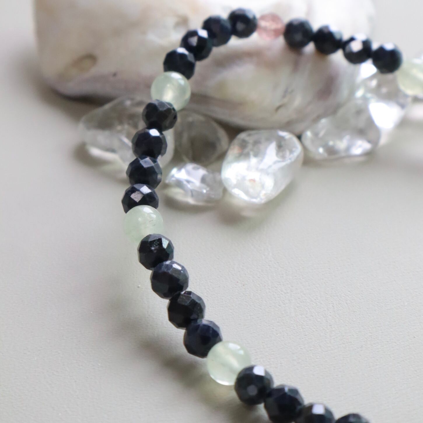 落ち着きを感じるクールでシックな色合いの天然石で仕立てました。