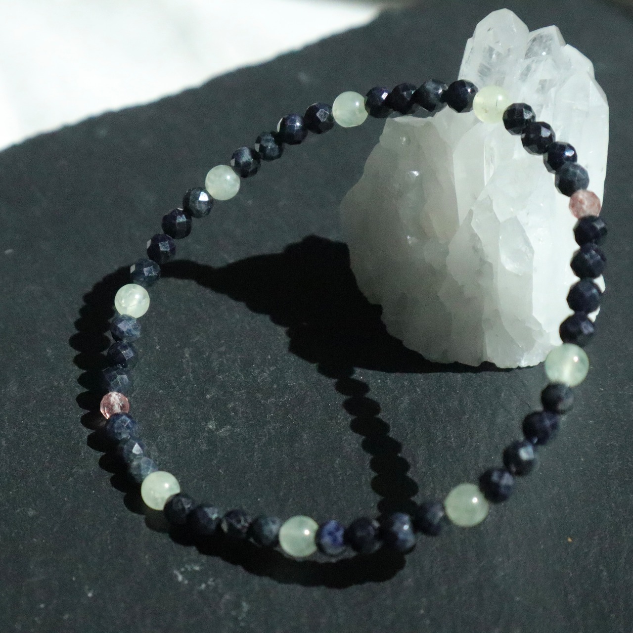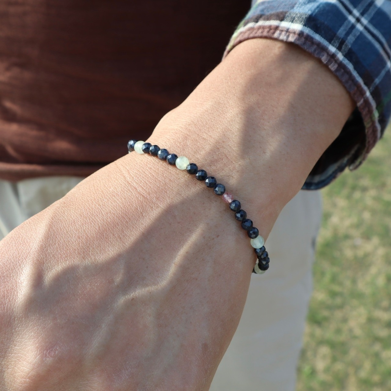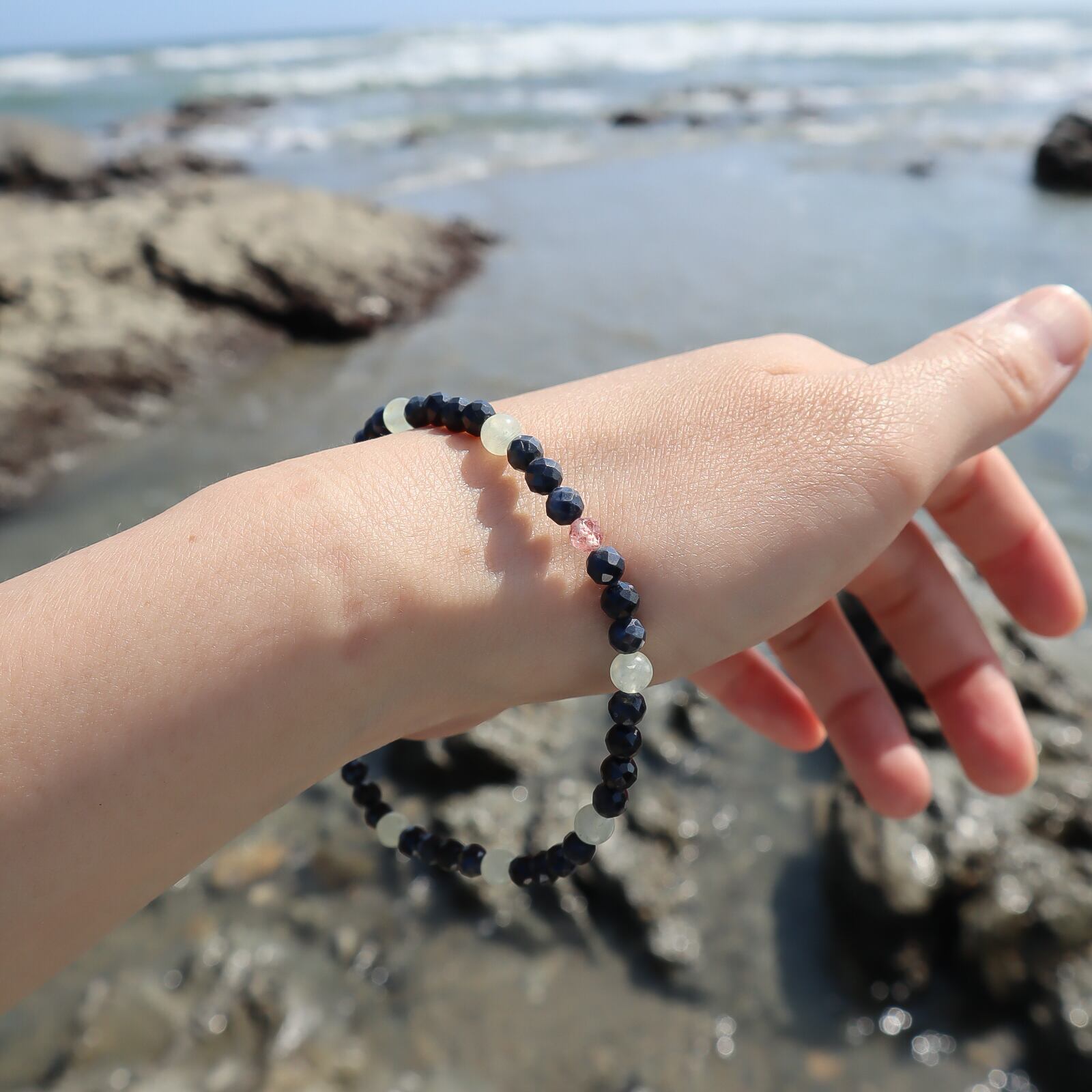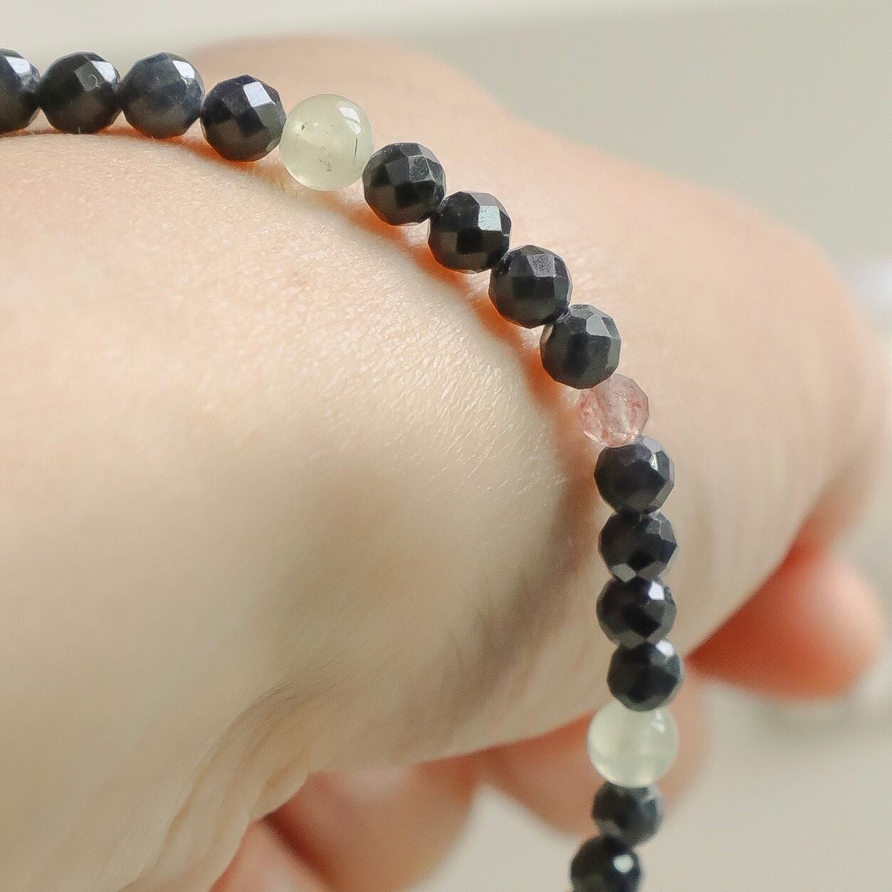 落ち着きを感じるクールでシックな色合いの天然石で仕立てました。