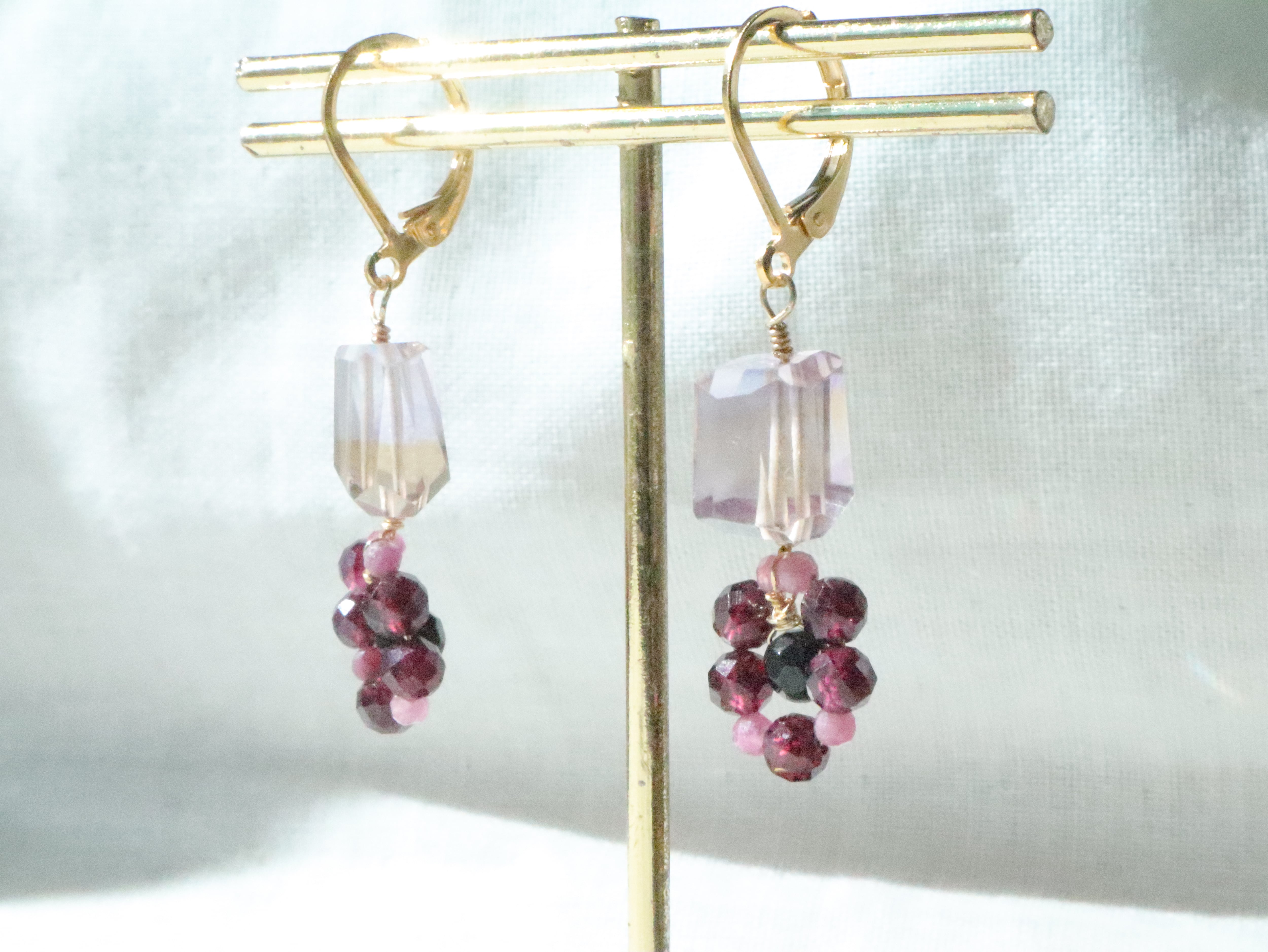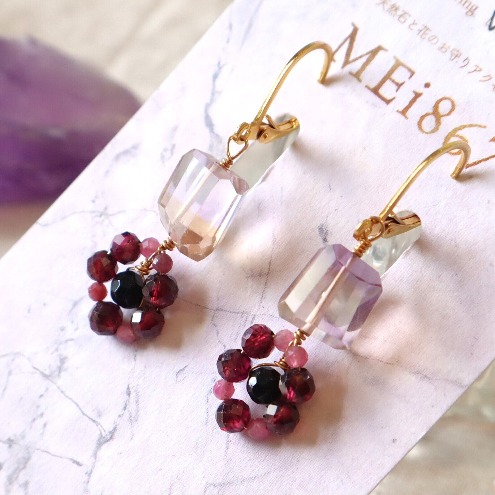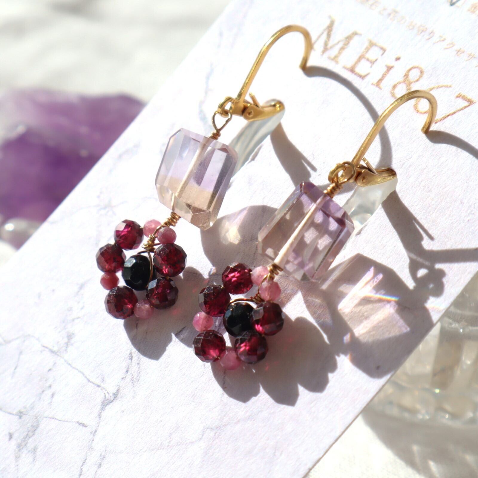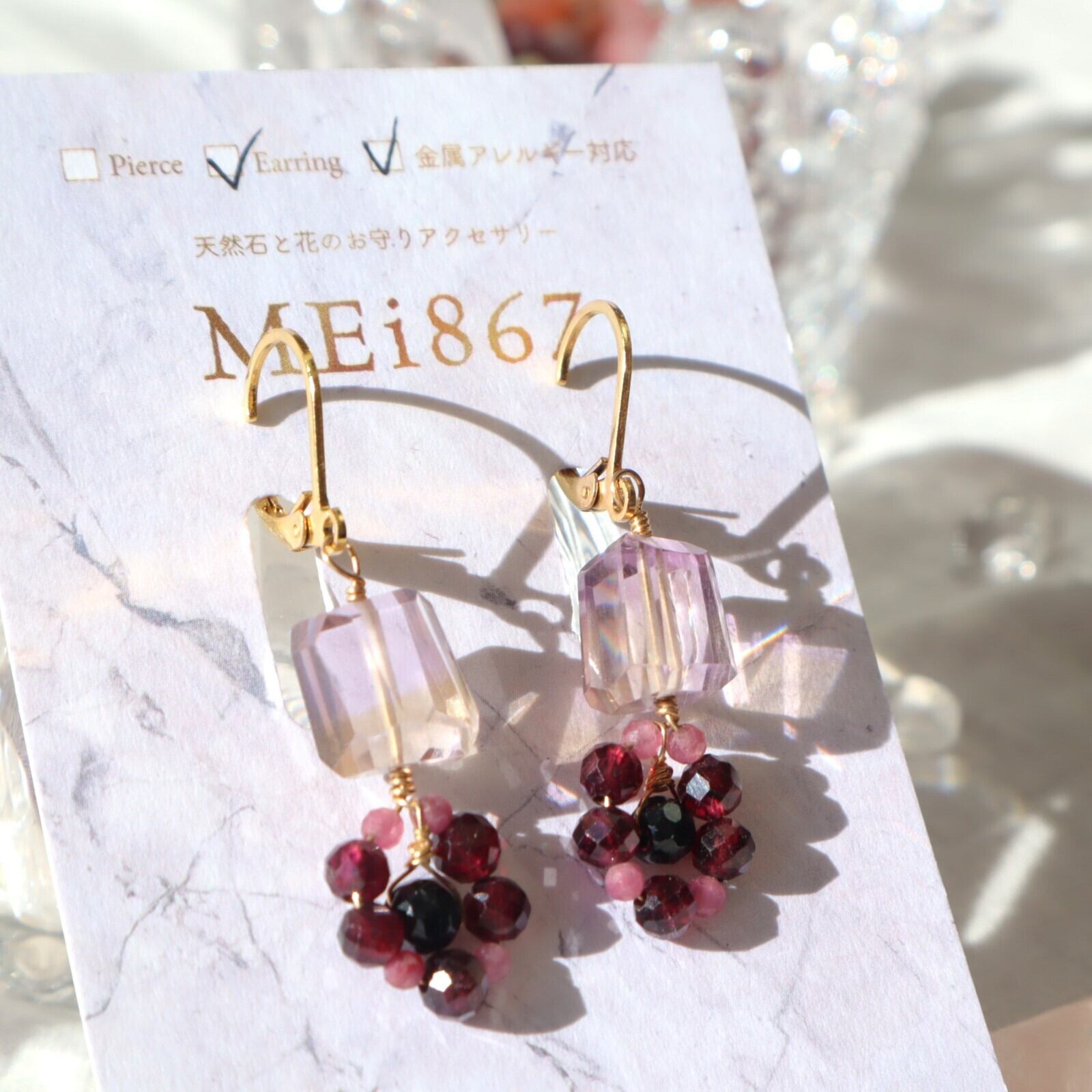 蠍座ディープカラー天然石のお守りピアス 金属アレルギー対応 ガーネット ワインレッド パープル アメトリン クリスマスプレゼント