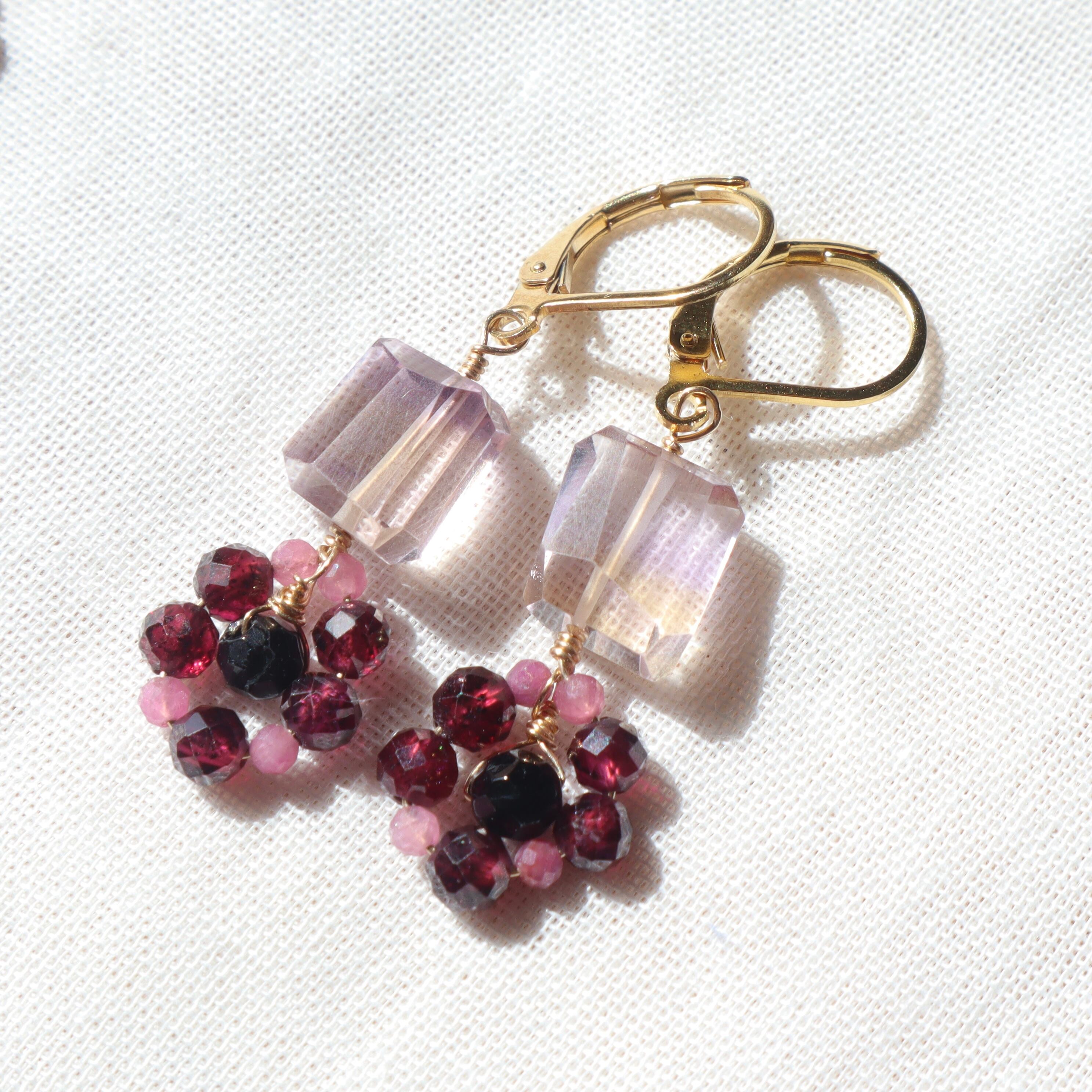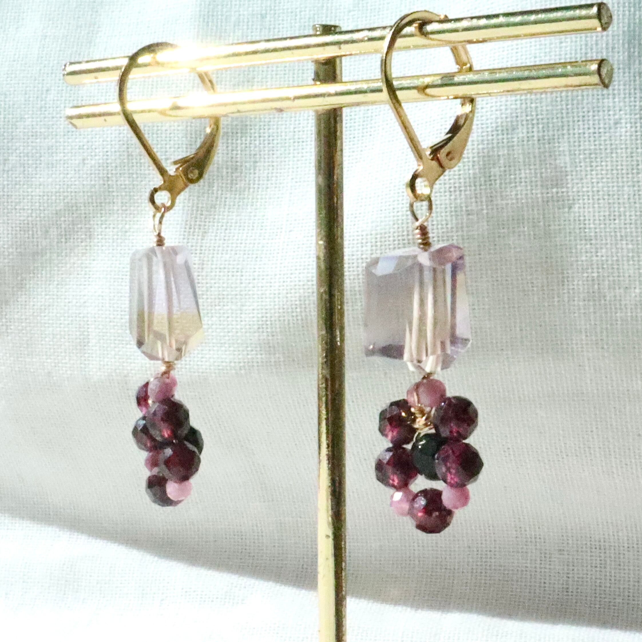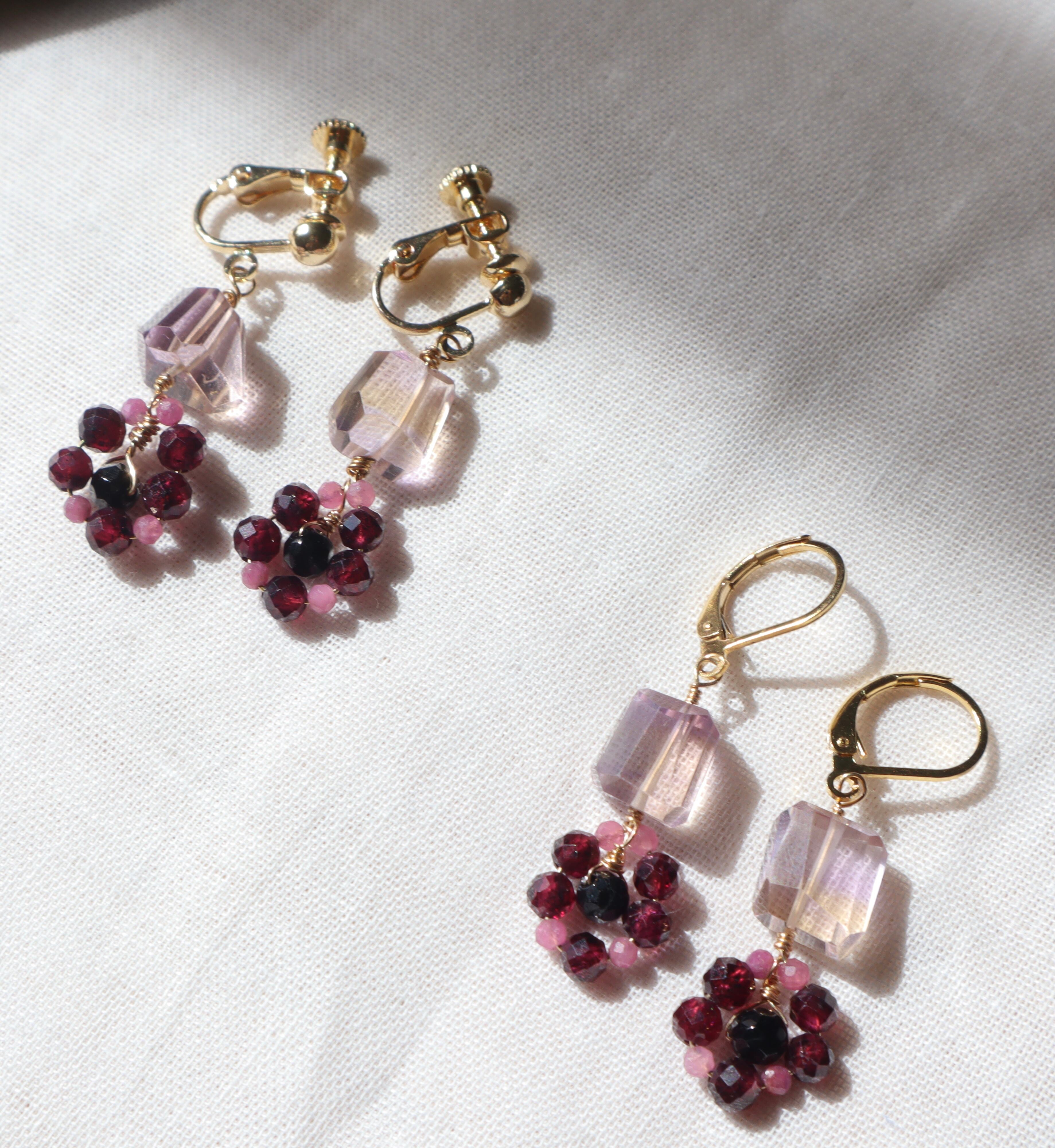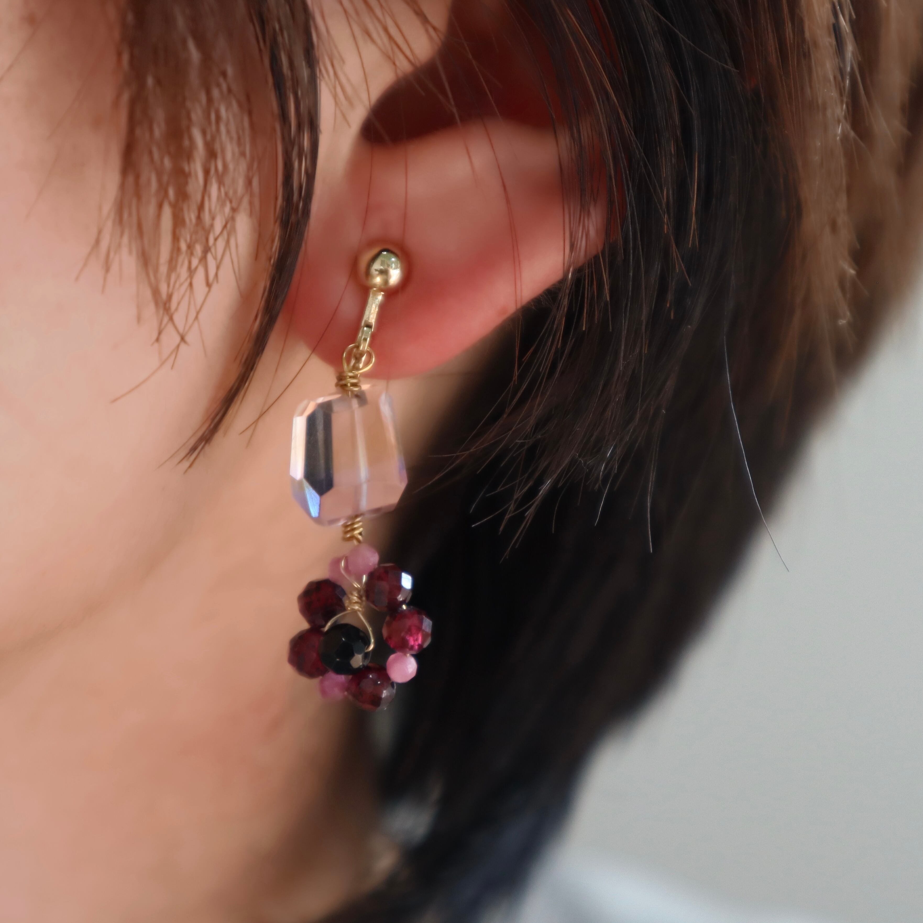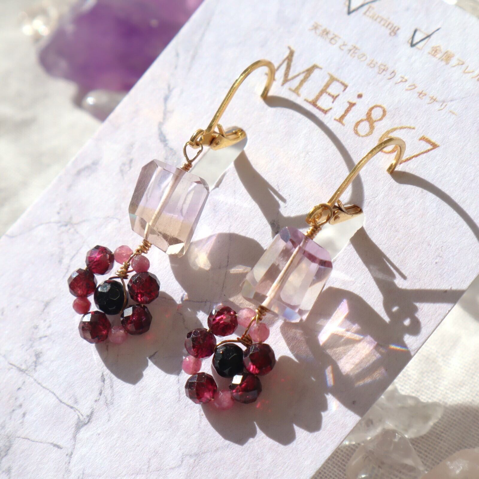蠍座ディープカラー天然石のお守りピアス 金属アレルギー対応 ガーネット ワインレッド パープル アメトリン クリスマスプレゼント