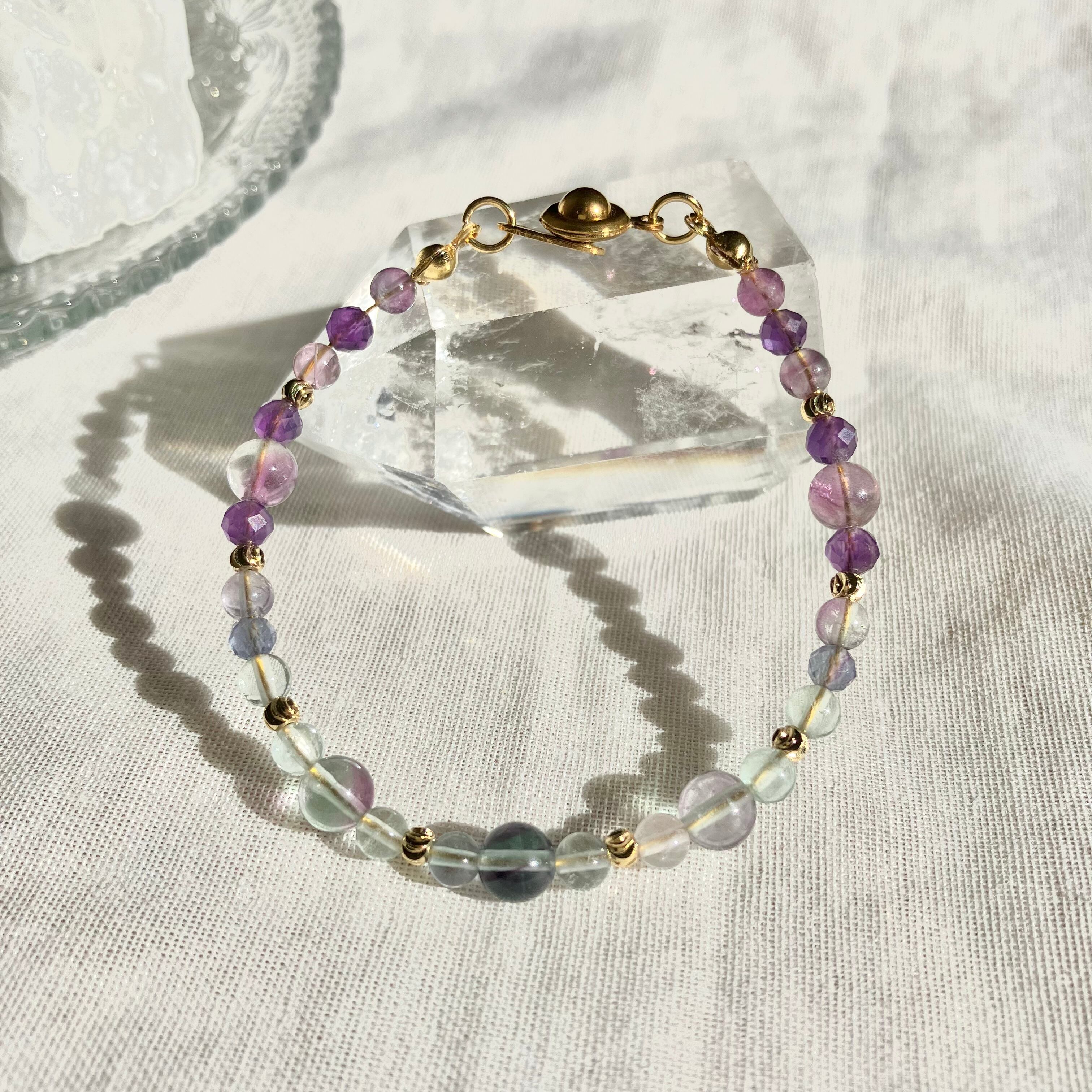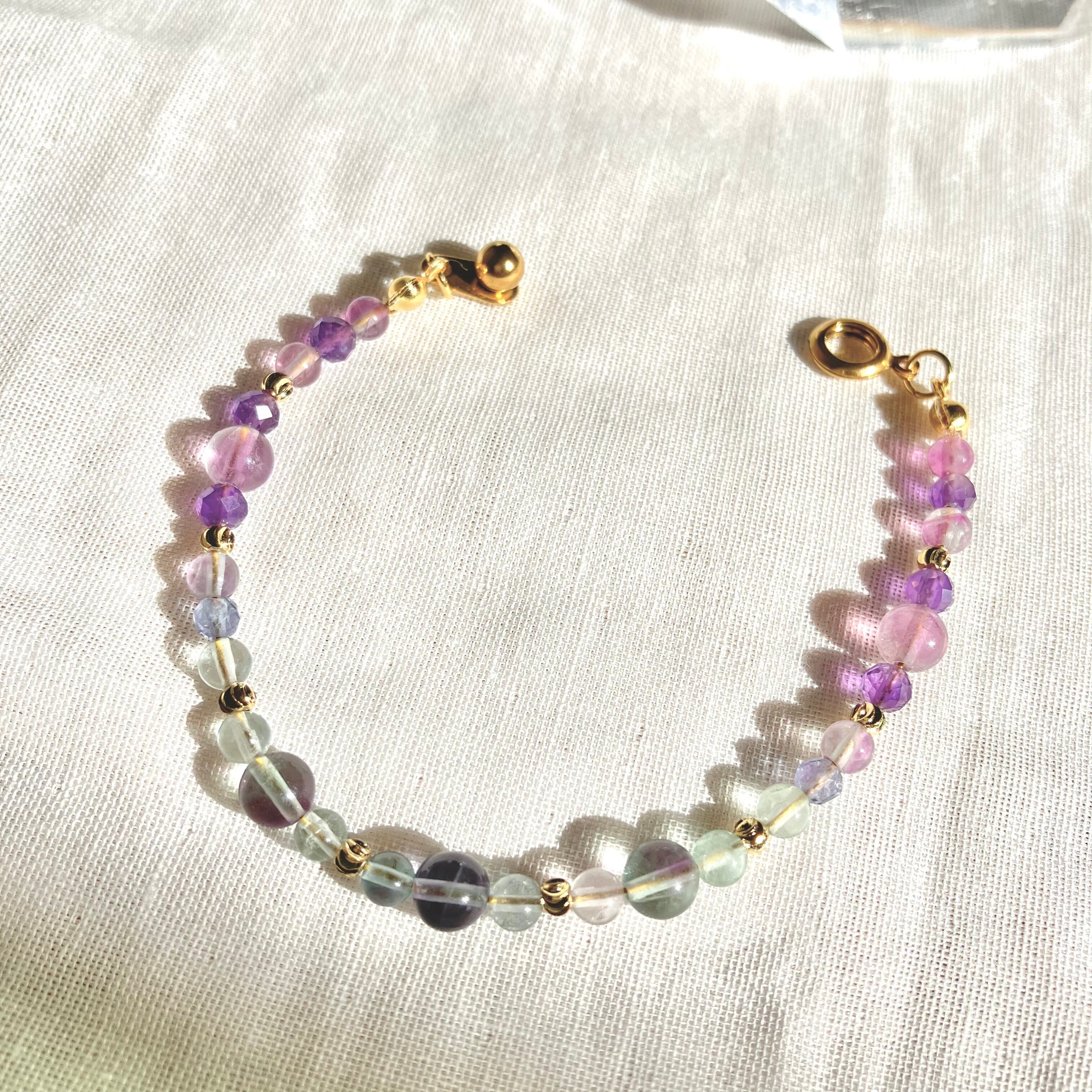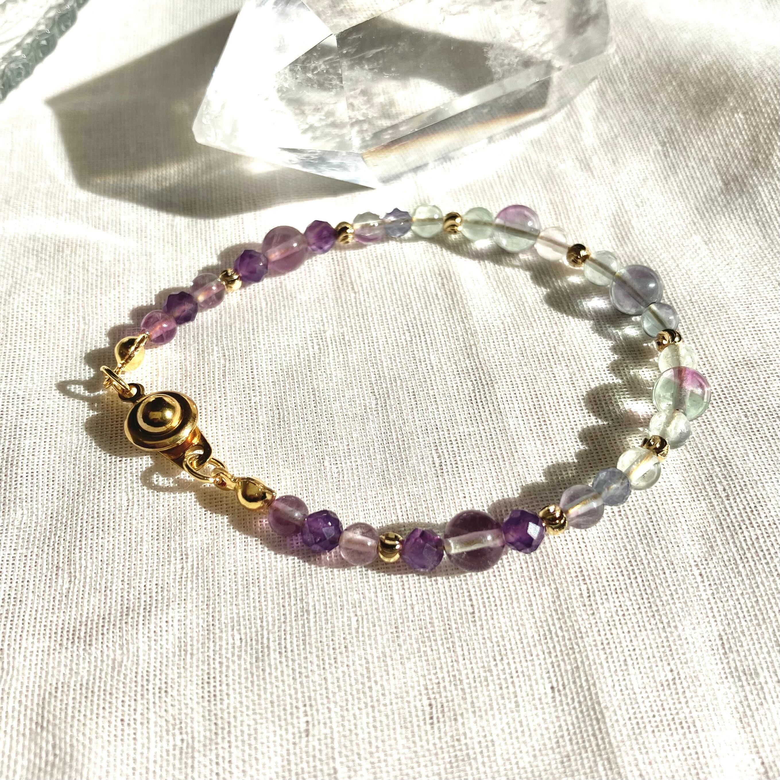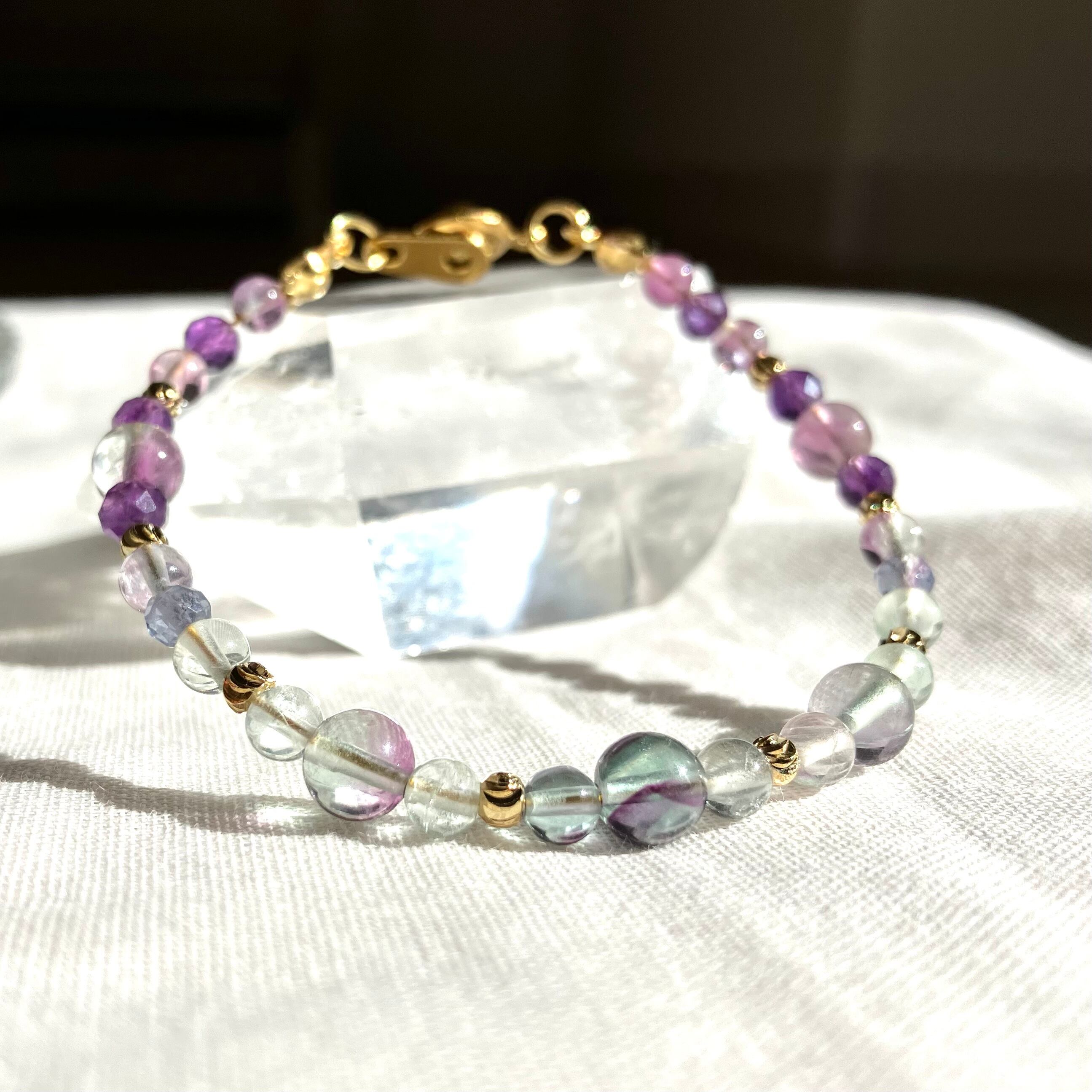 【1点限定】フローライトのグラデーションブレスレット 水瓶座 誕生石 天然石 アメジスト 2月 個性的 一点もの クリスマス 誕生日
