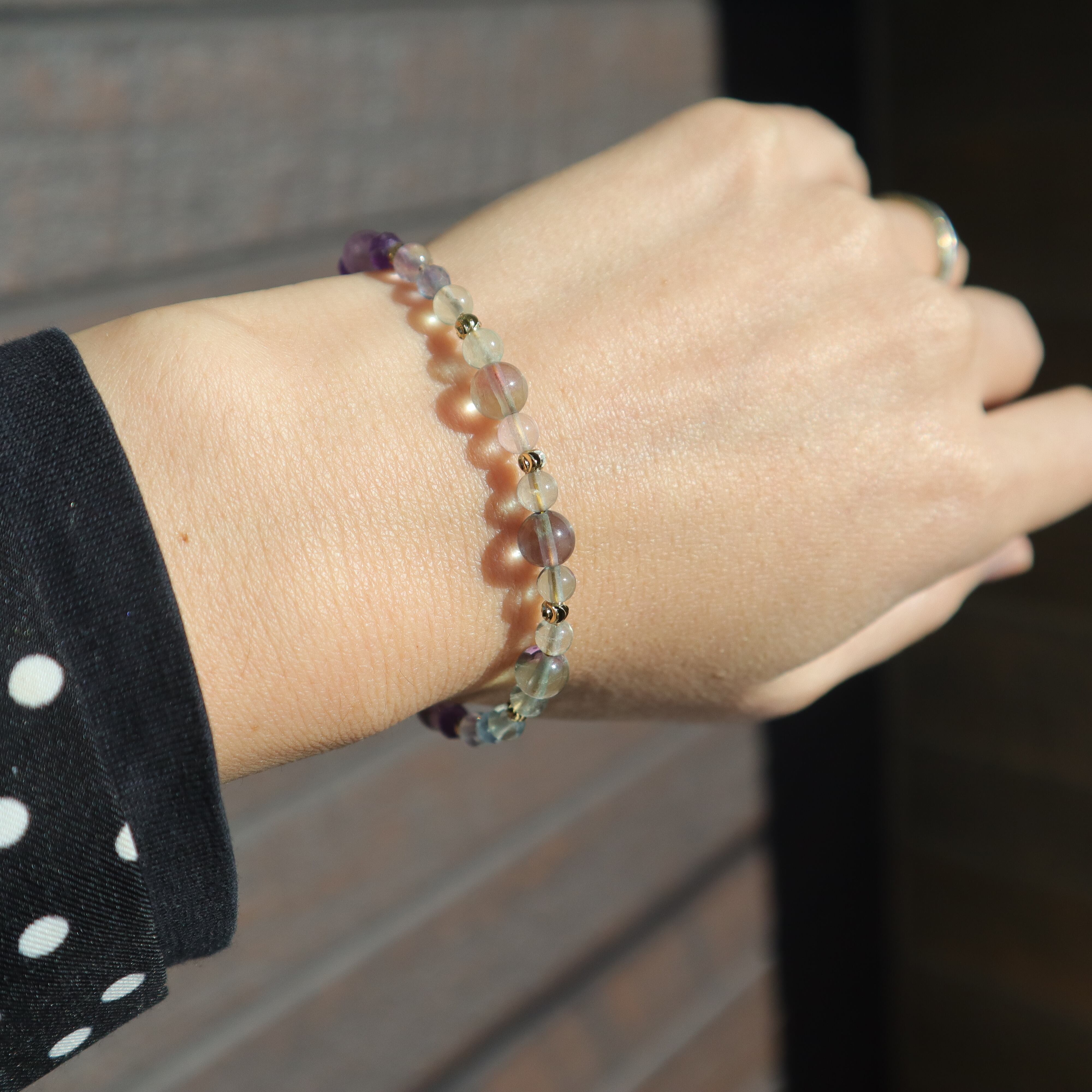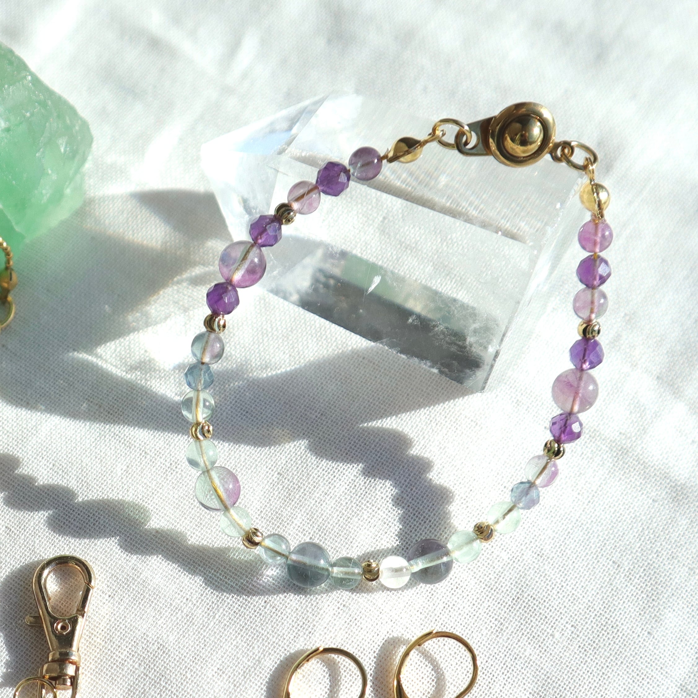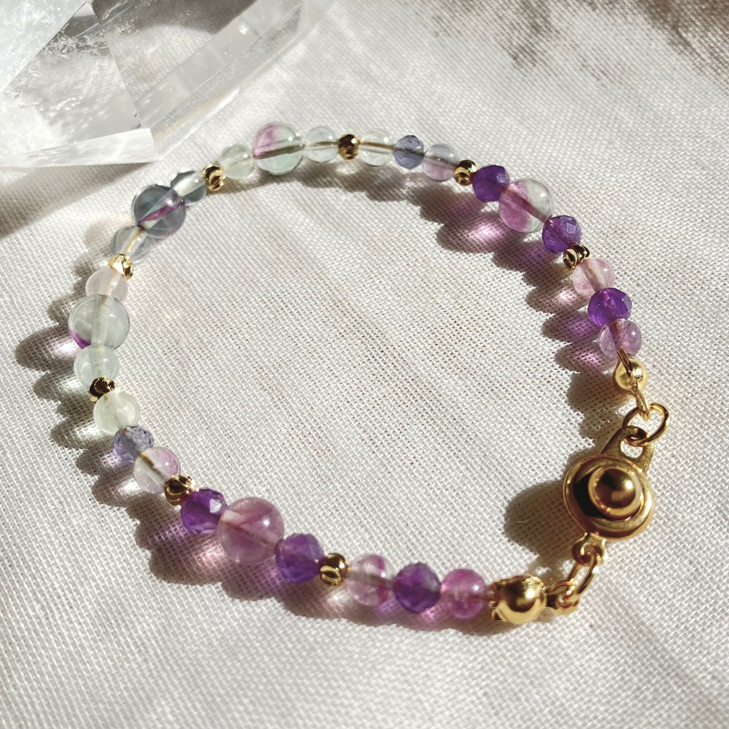 【1点限定】フローライトのグラデーションブレスレット 水瓶座 誕生石 天然石 アメジスト 2月 個性的 一点もの クリスマス 誕生日