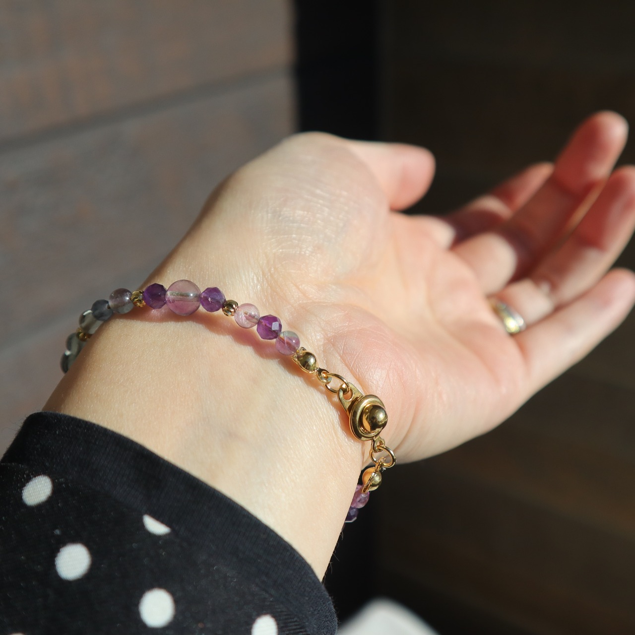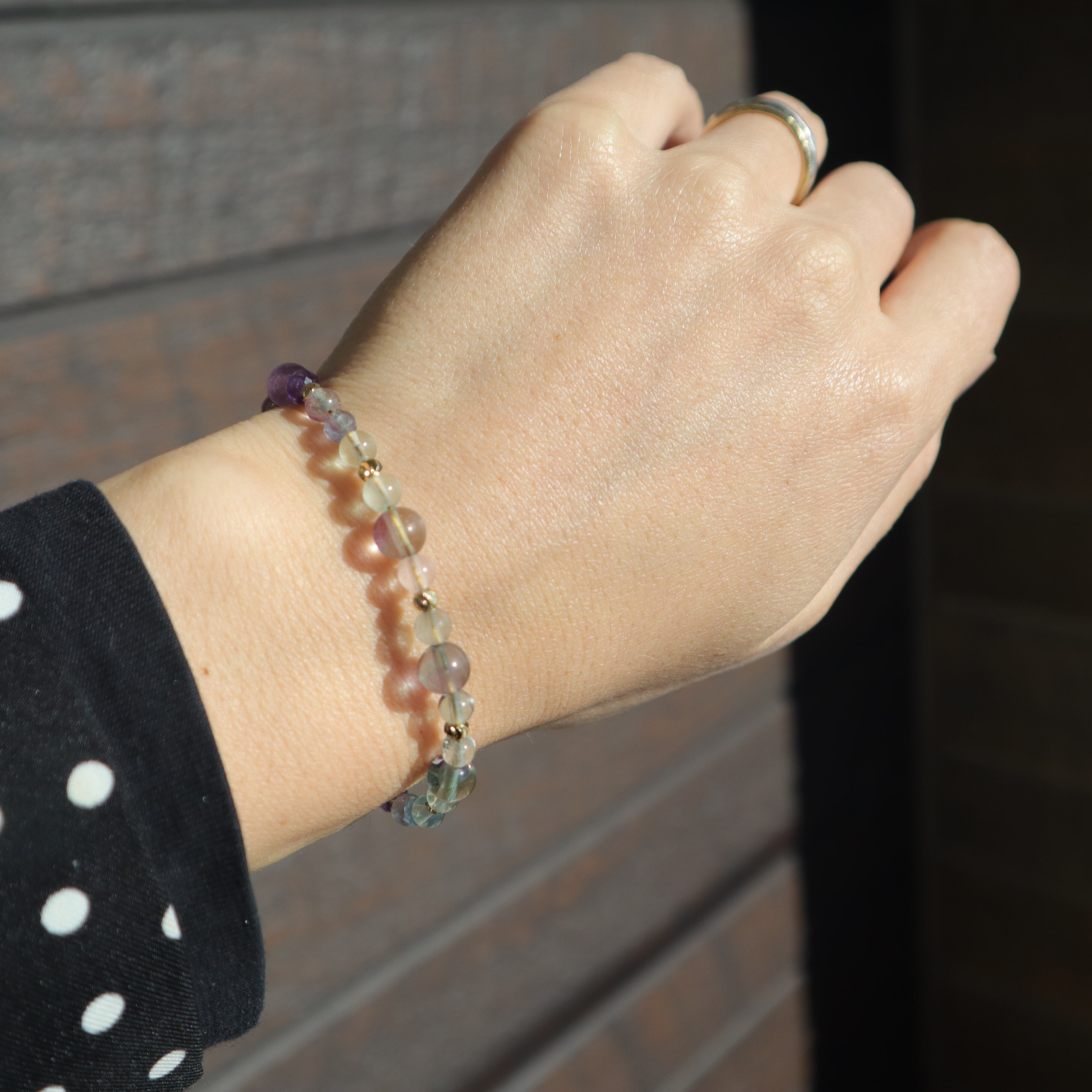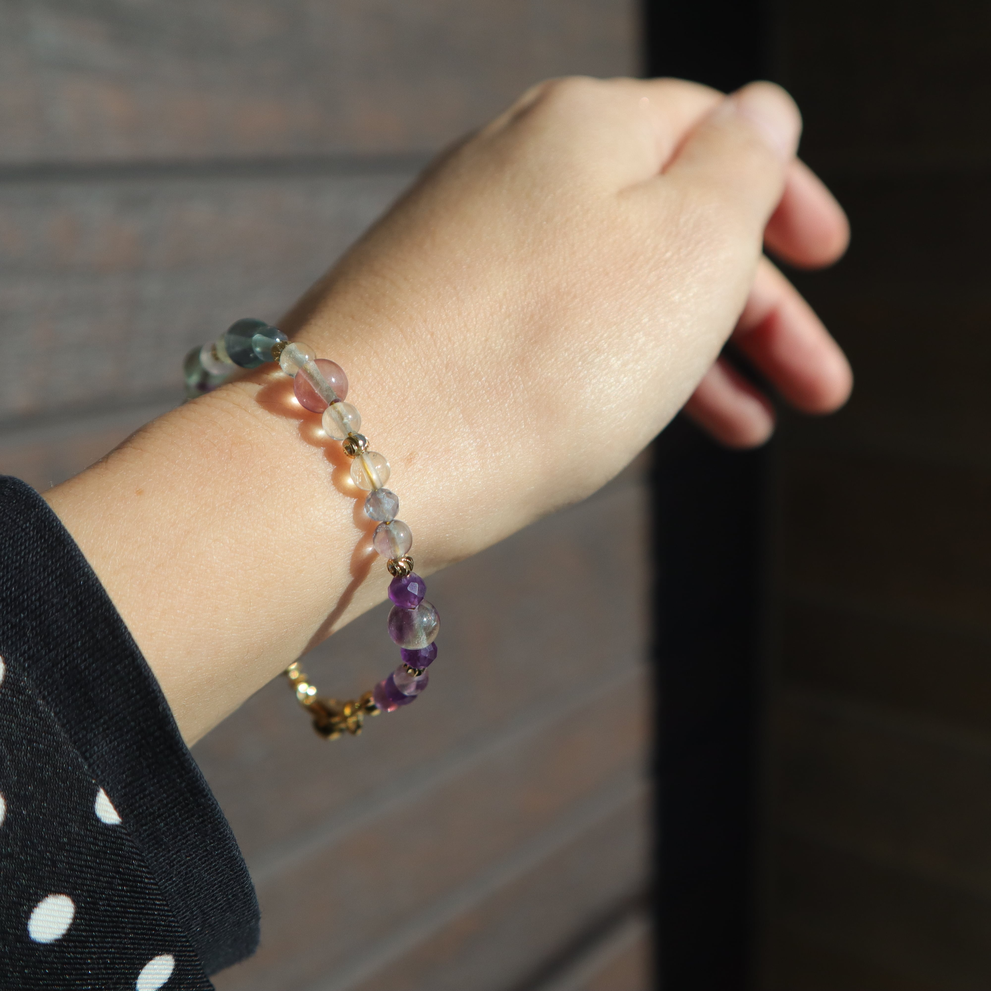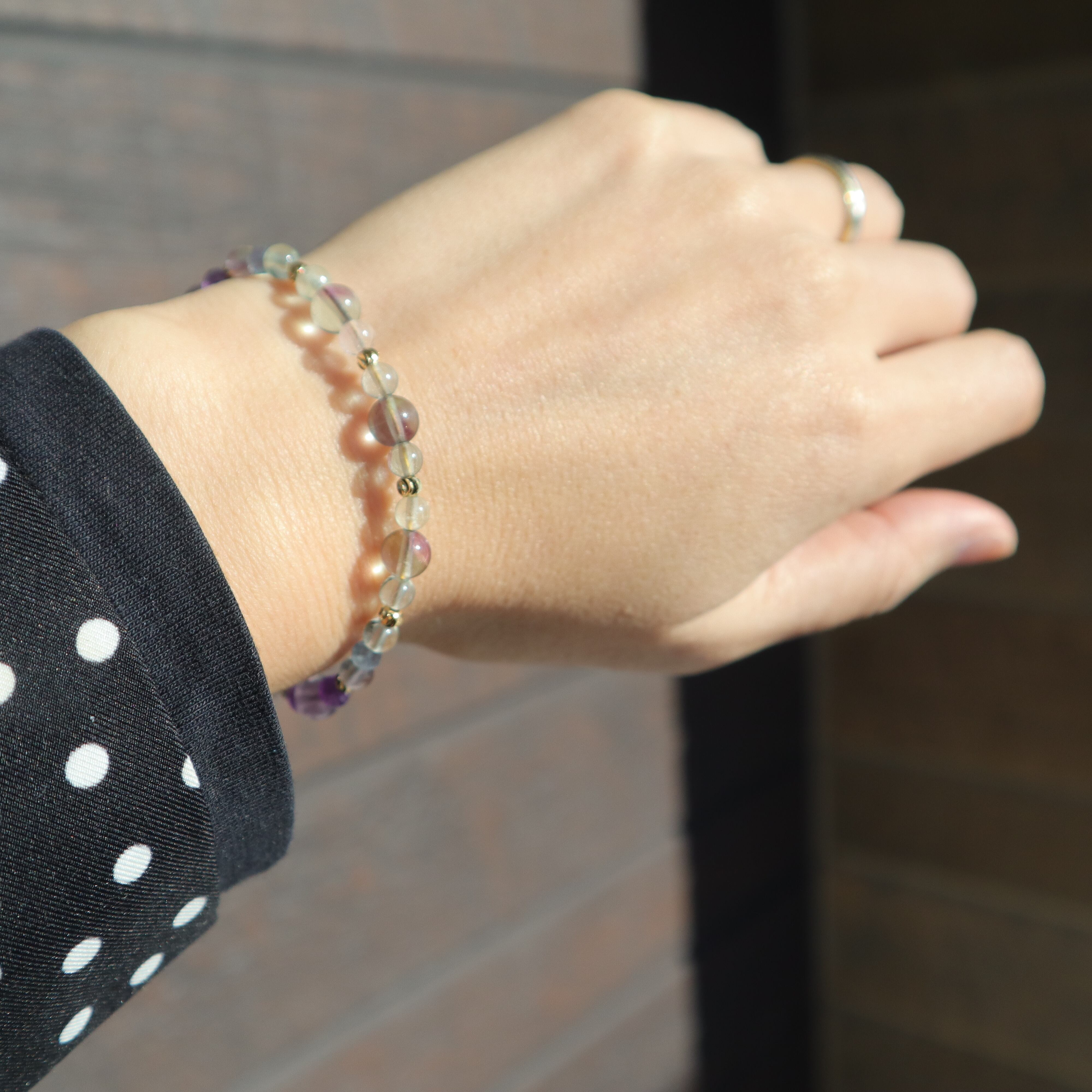 【1点限定】フローライトのグラデーションブレスレット 水瓶座 誕生石 天然石 アメジスト 2月 個性的 一点もの クリスマス 誕生日