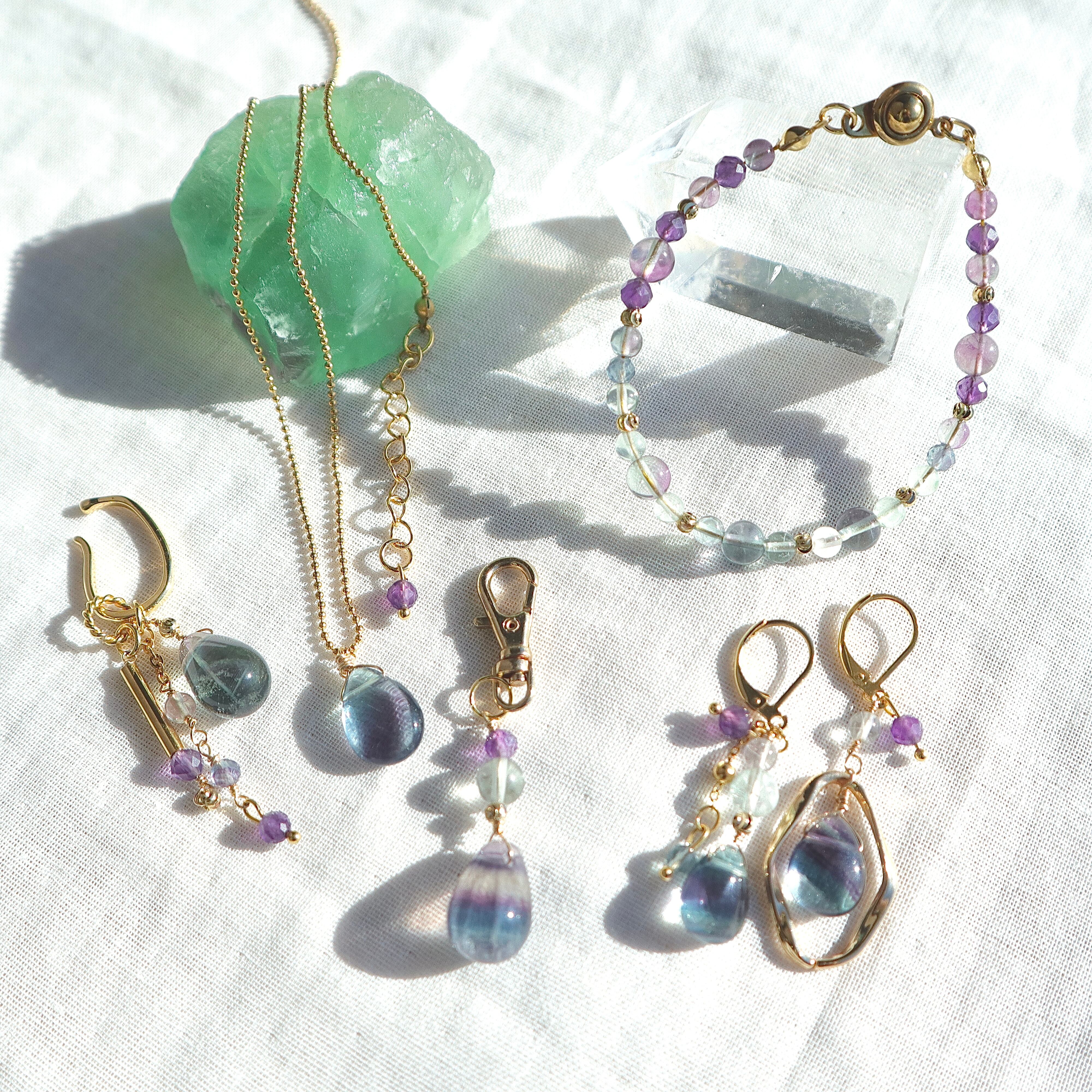 個性的で唯一無二の色柄をみせるフローライトと、