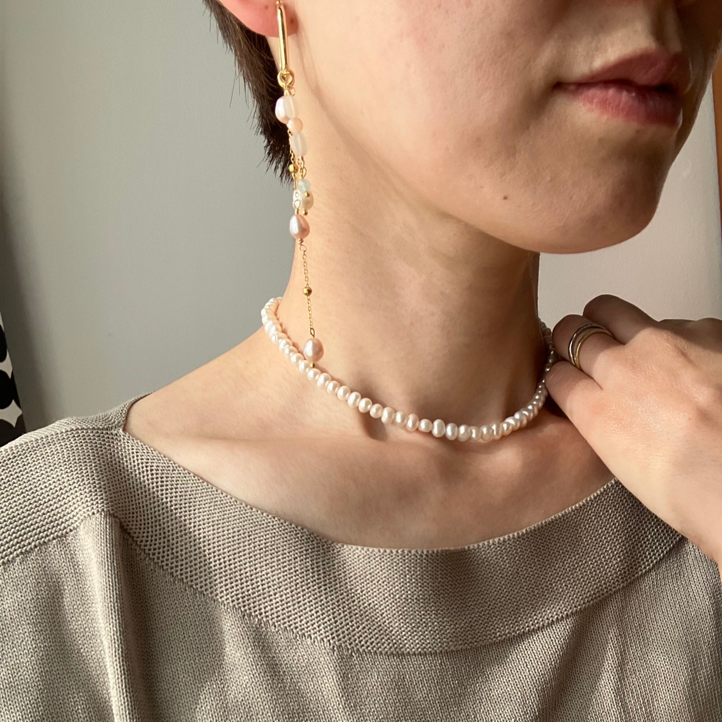 クリスマス プレゼント パステル くすみカラー 大ぶり 大人可愛い 蟹座 星座 かに座 6月 7月 誕生石 誕生日 フォーマル 記念日 入学式 卒業式 入園式 卒園式 パール ロング 淡水パール チョーカー ネックレス ショート
