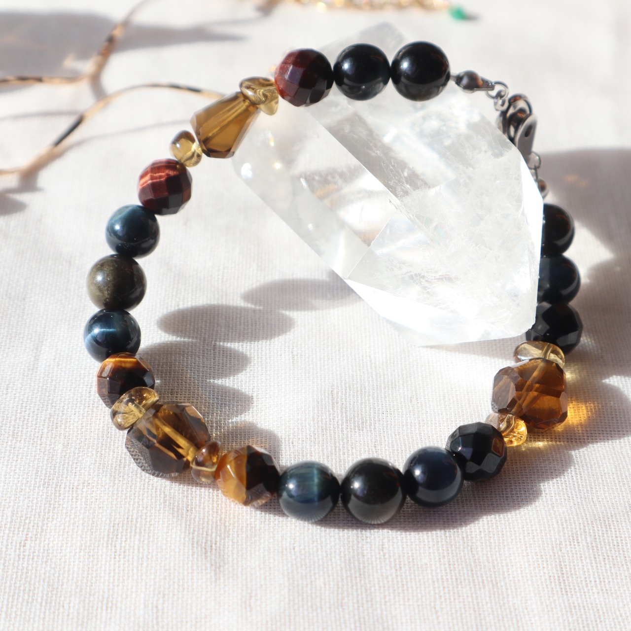 クールなかっこよさの中に、力強さと落ち着いたエネルギーを感oじる天然石のブレスレット。