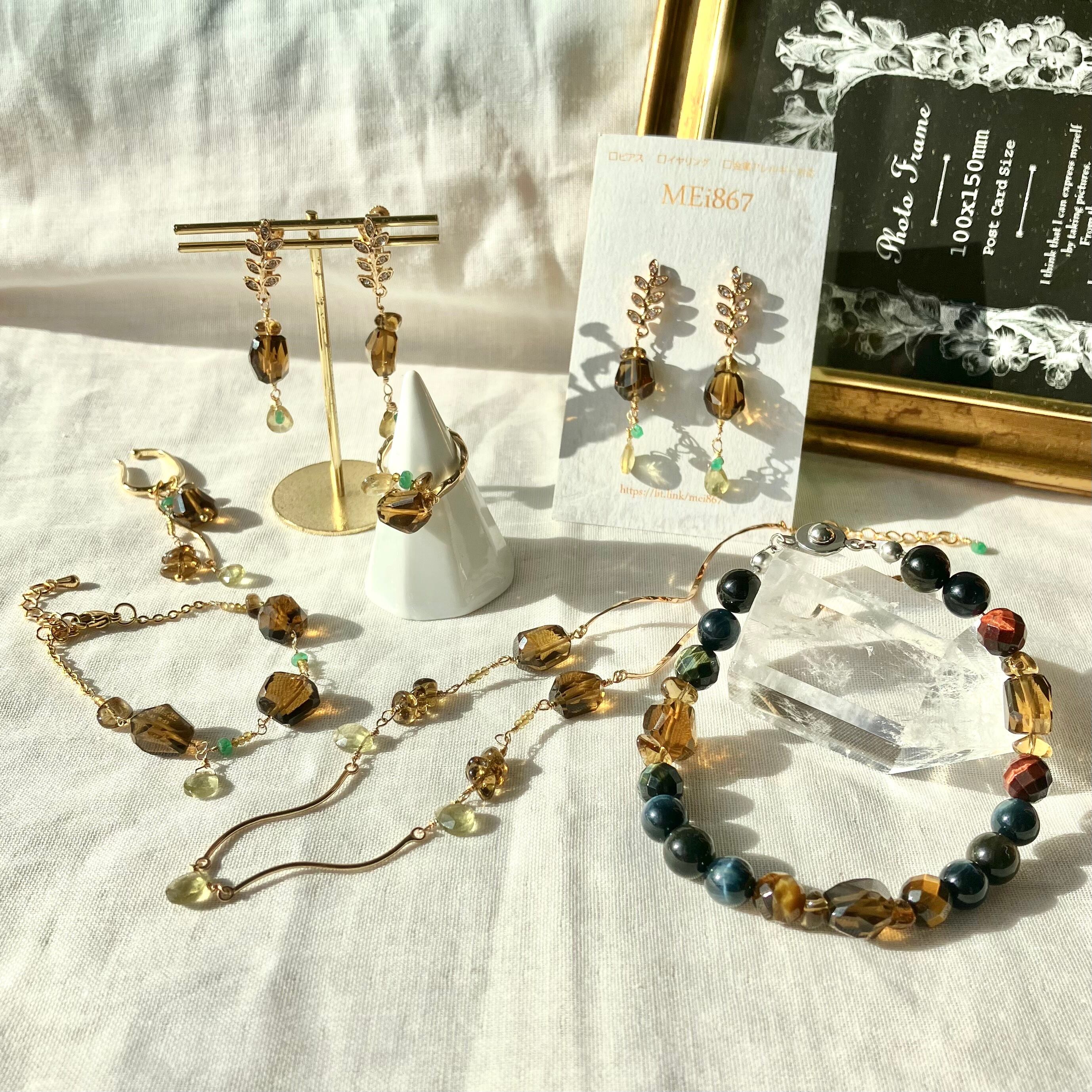 ブラウンの鉱物感漂うビアクォーツが印象的なデザインです。
