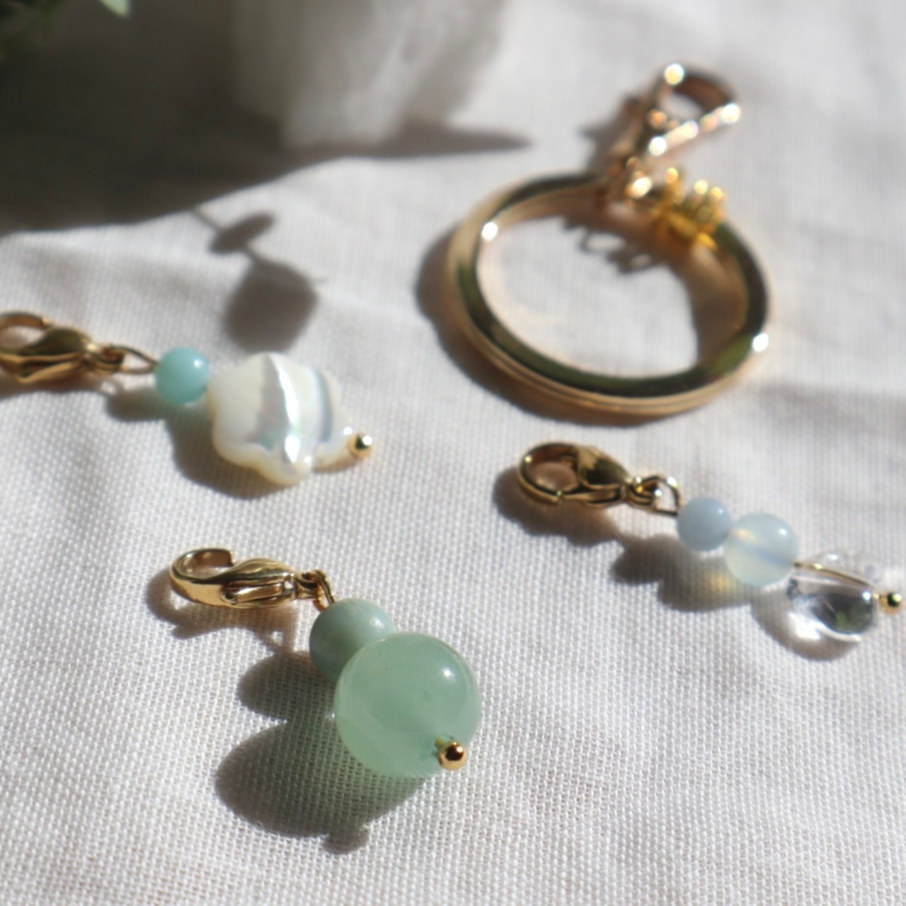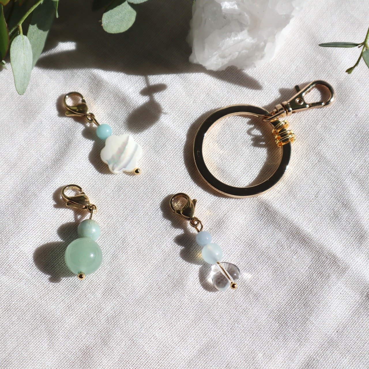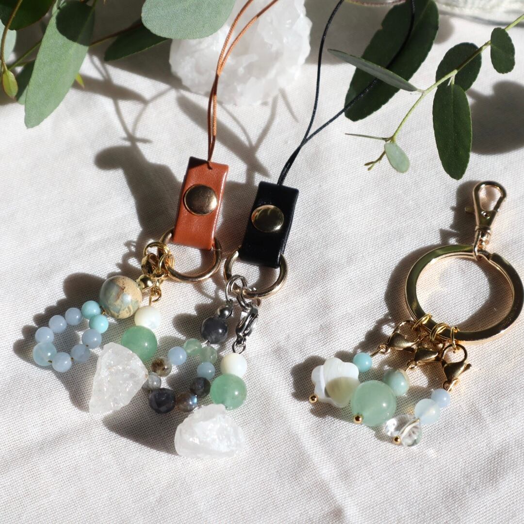 【組み合わせ自由】癒しと愛情の天然石お守りキーリングチャーム 魚座 星座 守護石 2月 3月 ギフト プレゼント 子育て お揃い 親子