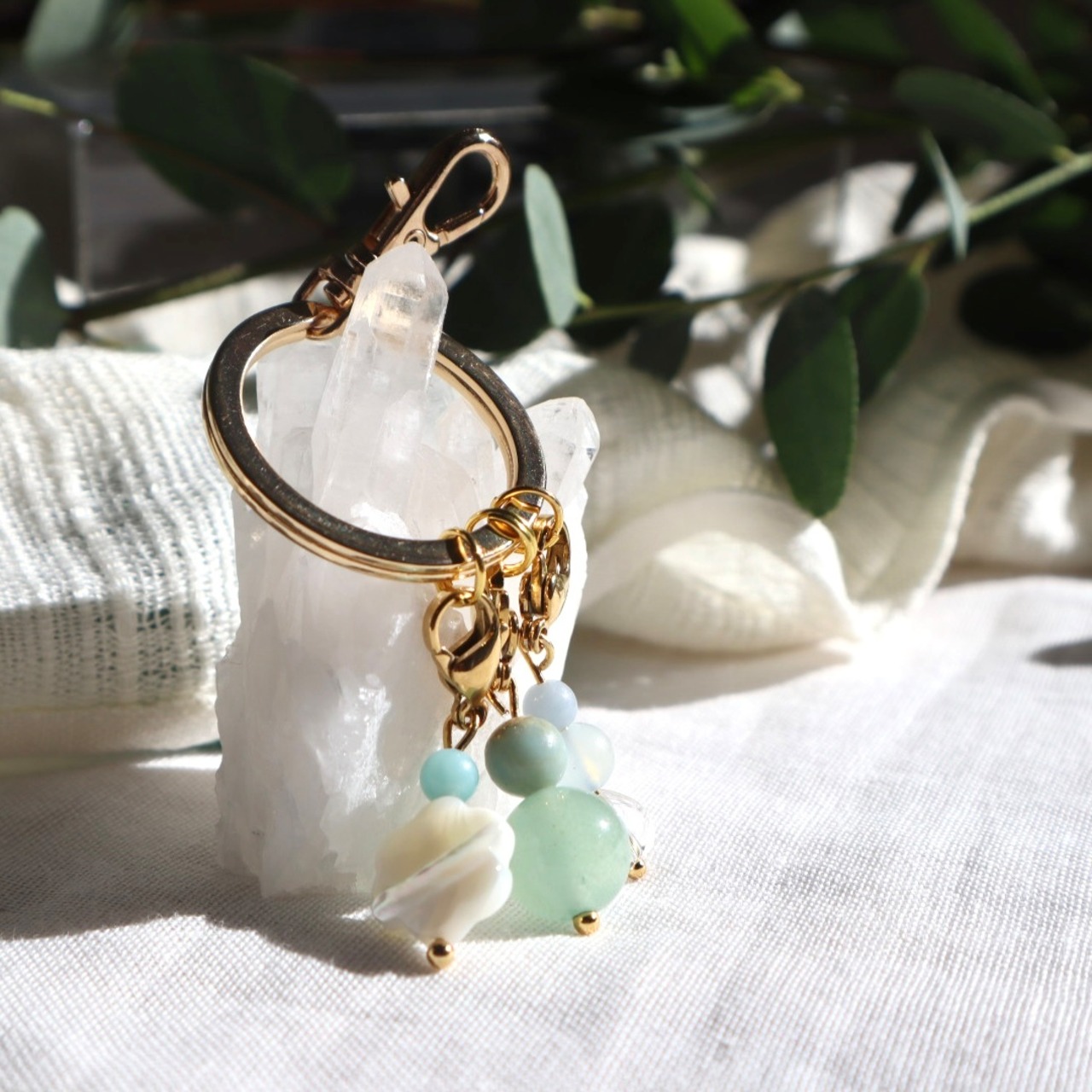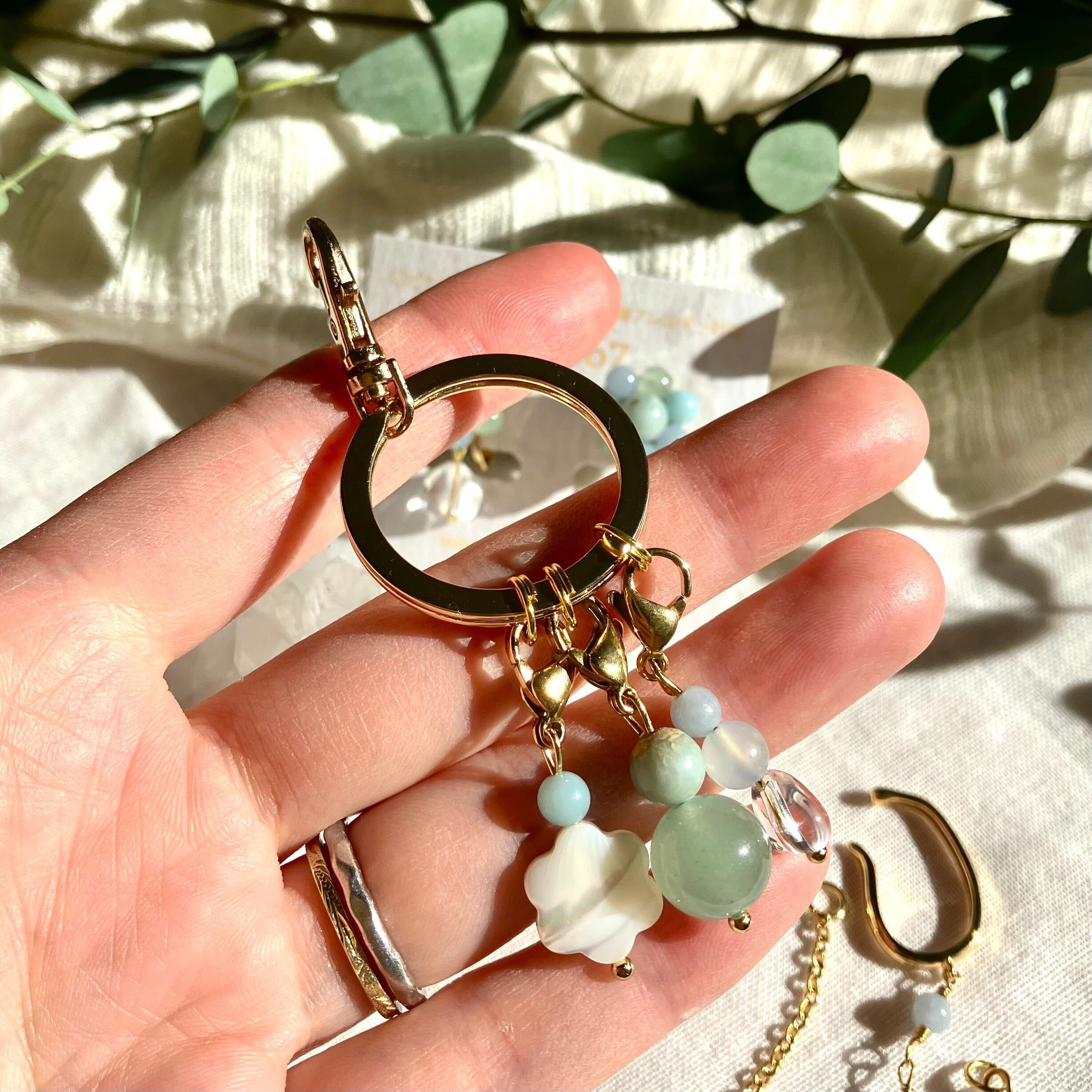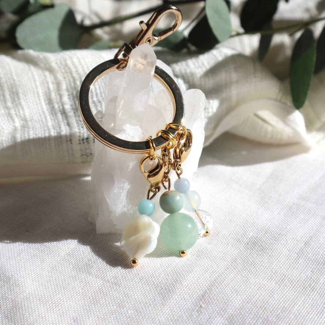 【組み合わせ自由】癒しと愛情の天然石お守りキーリングチャーム 魚座 星座 守護石 2月 3月 ギフト プレゼント 子育て お揃い 親子