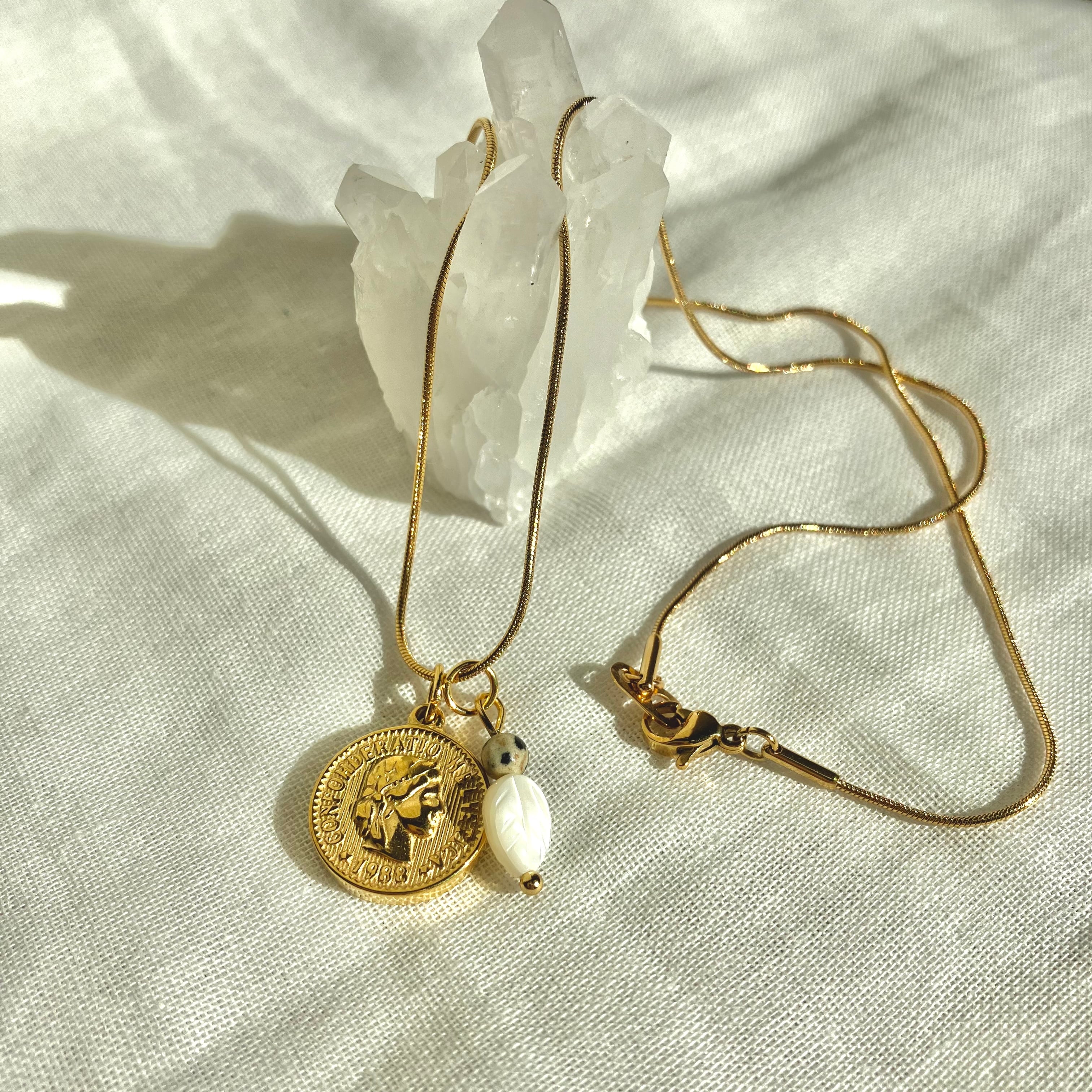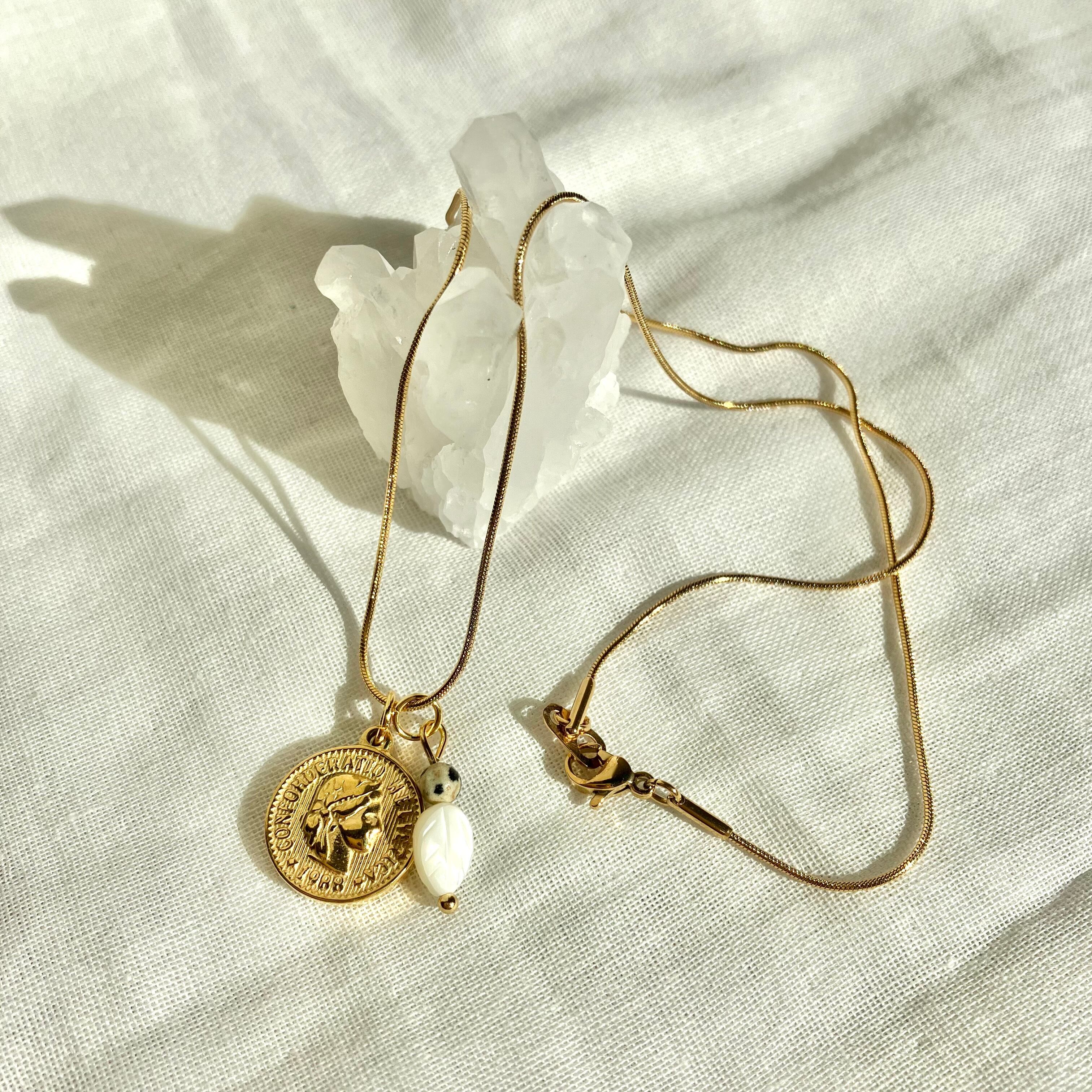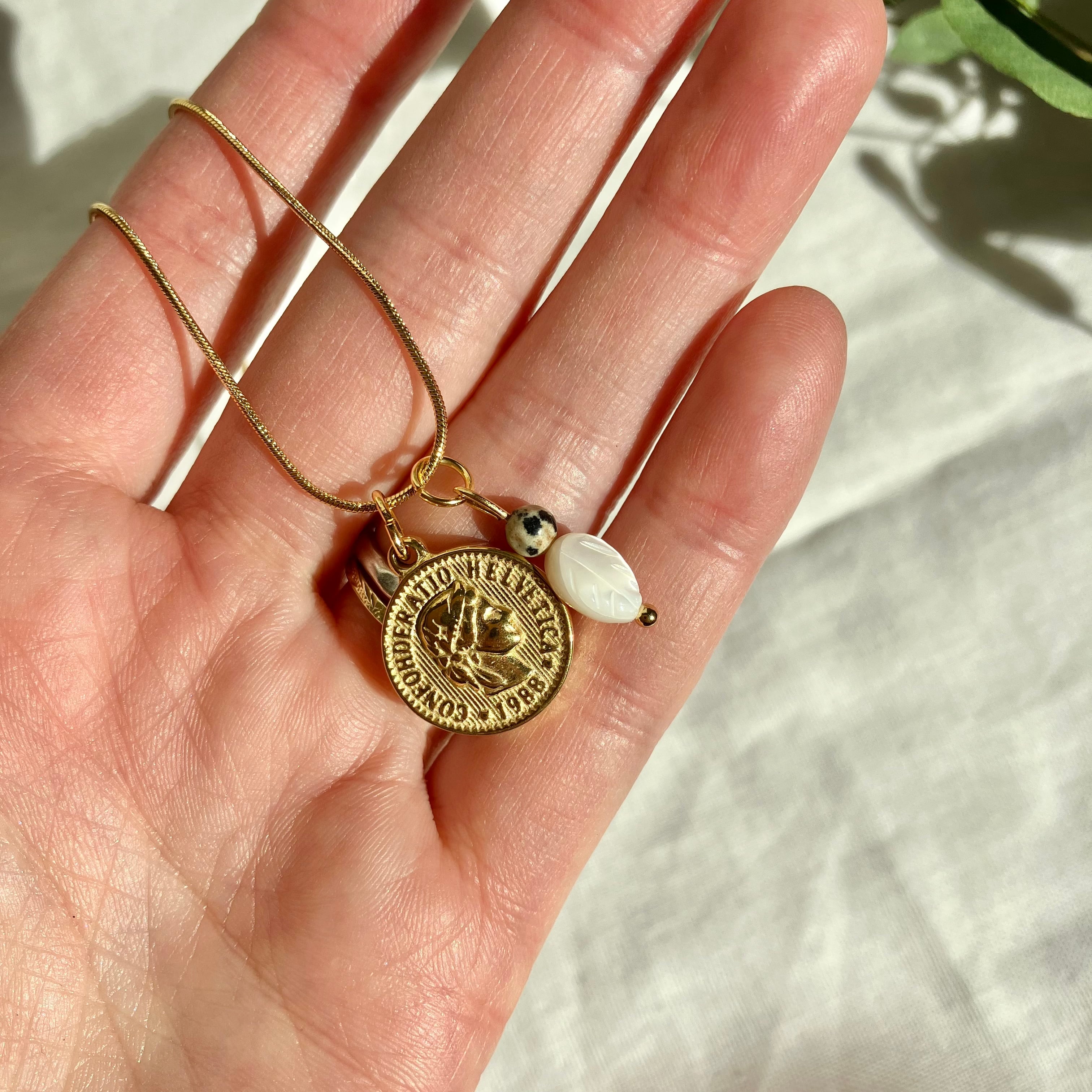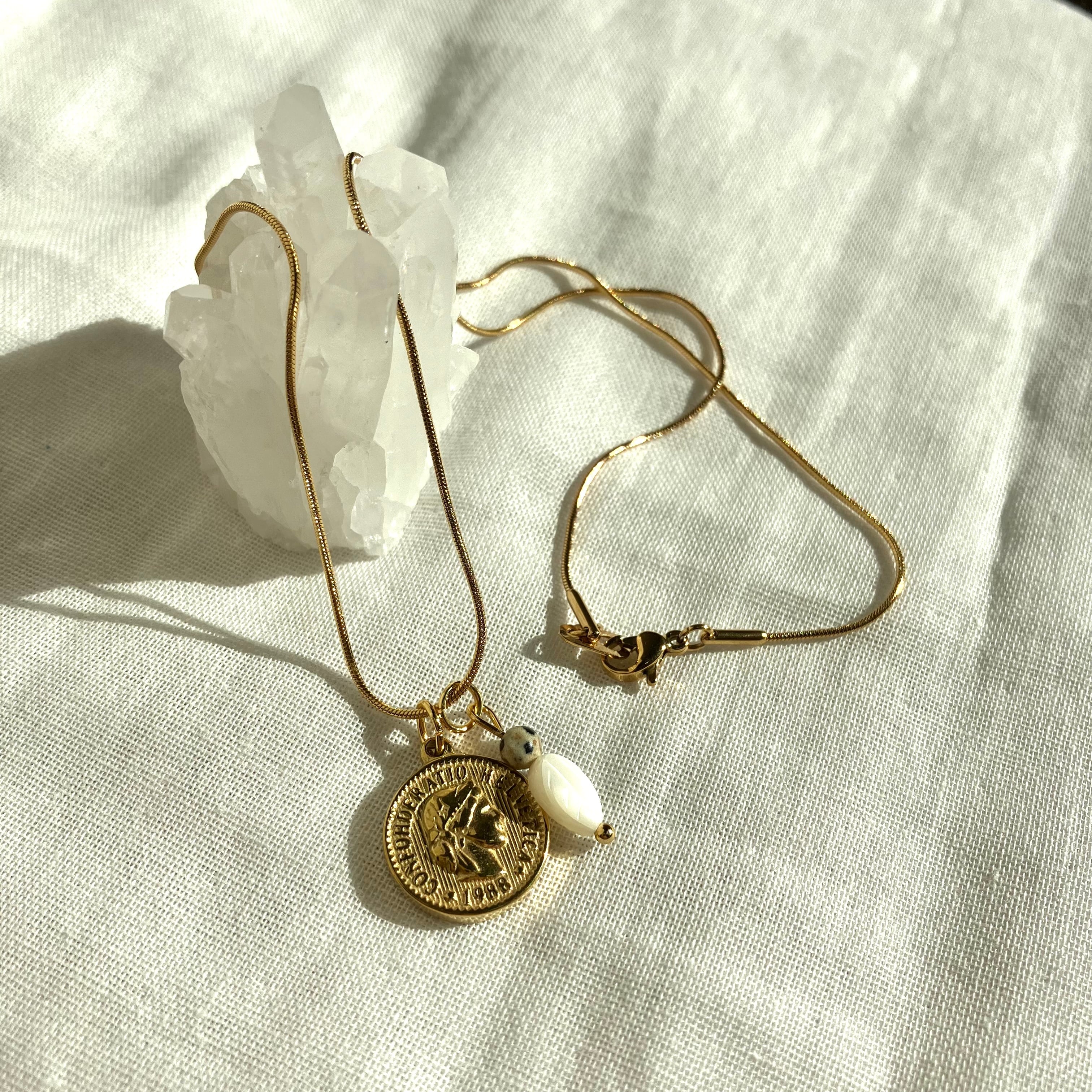 コイン 金貨 アンティーク ゴールド お守り ジュエリー ビアクォーツ シック カジュアル チェーン 金属アレルギー対応 サージカルステンレス 誕生日 プレゼント おしゃれ オフィス 子育て 母の日 誕生日