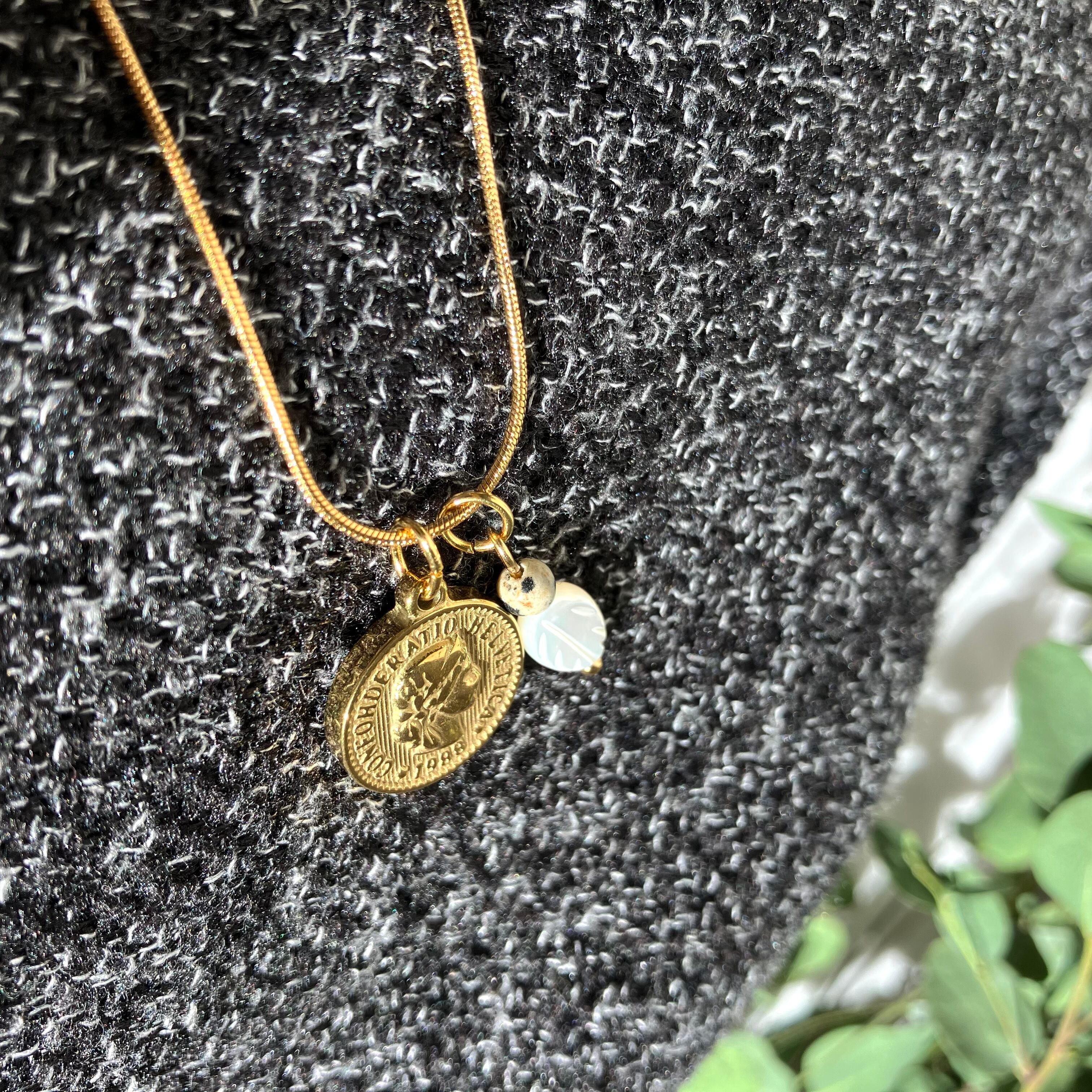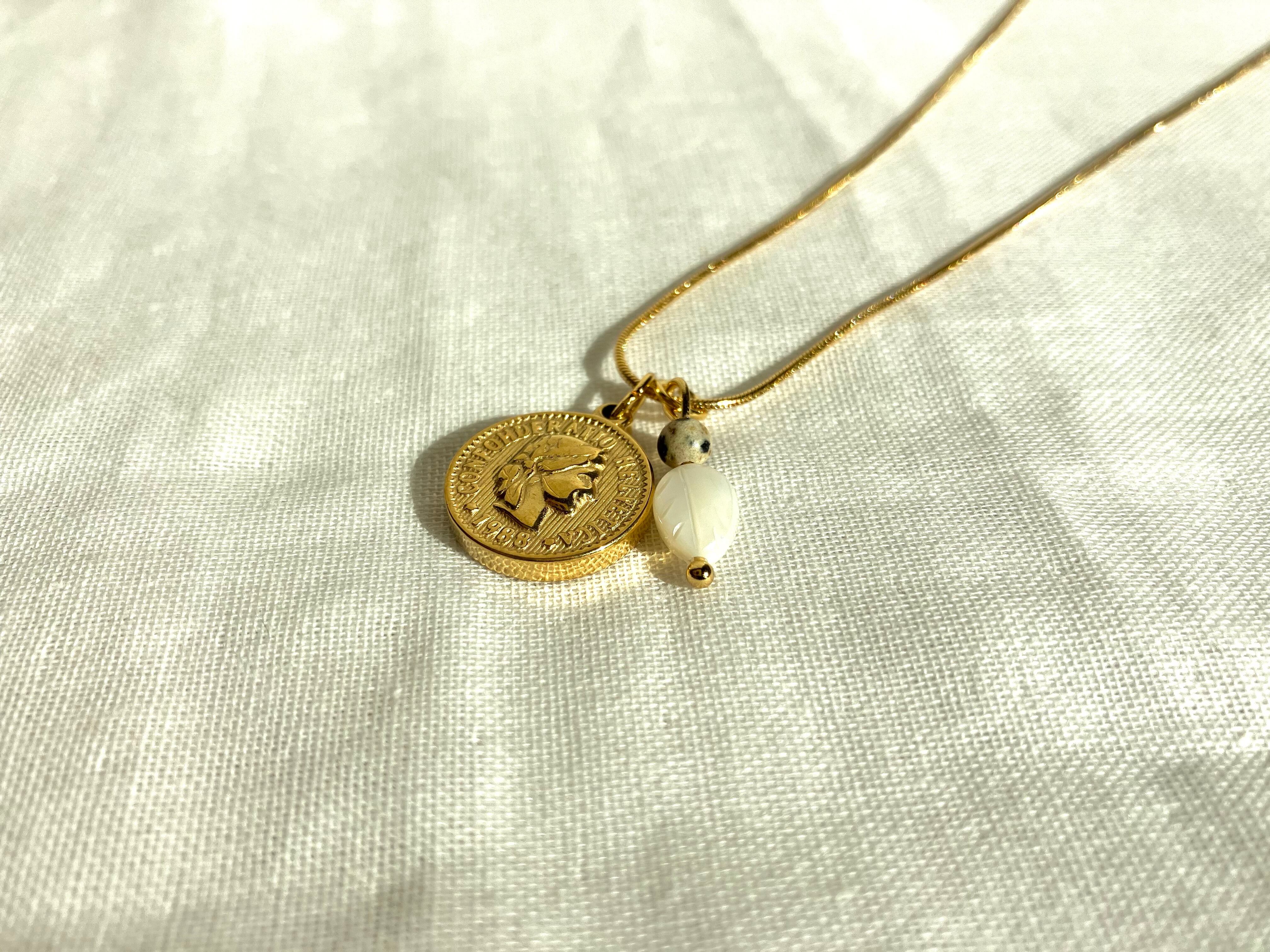 爽やかさとアンティーク感のあるコインネックレス。