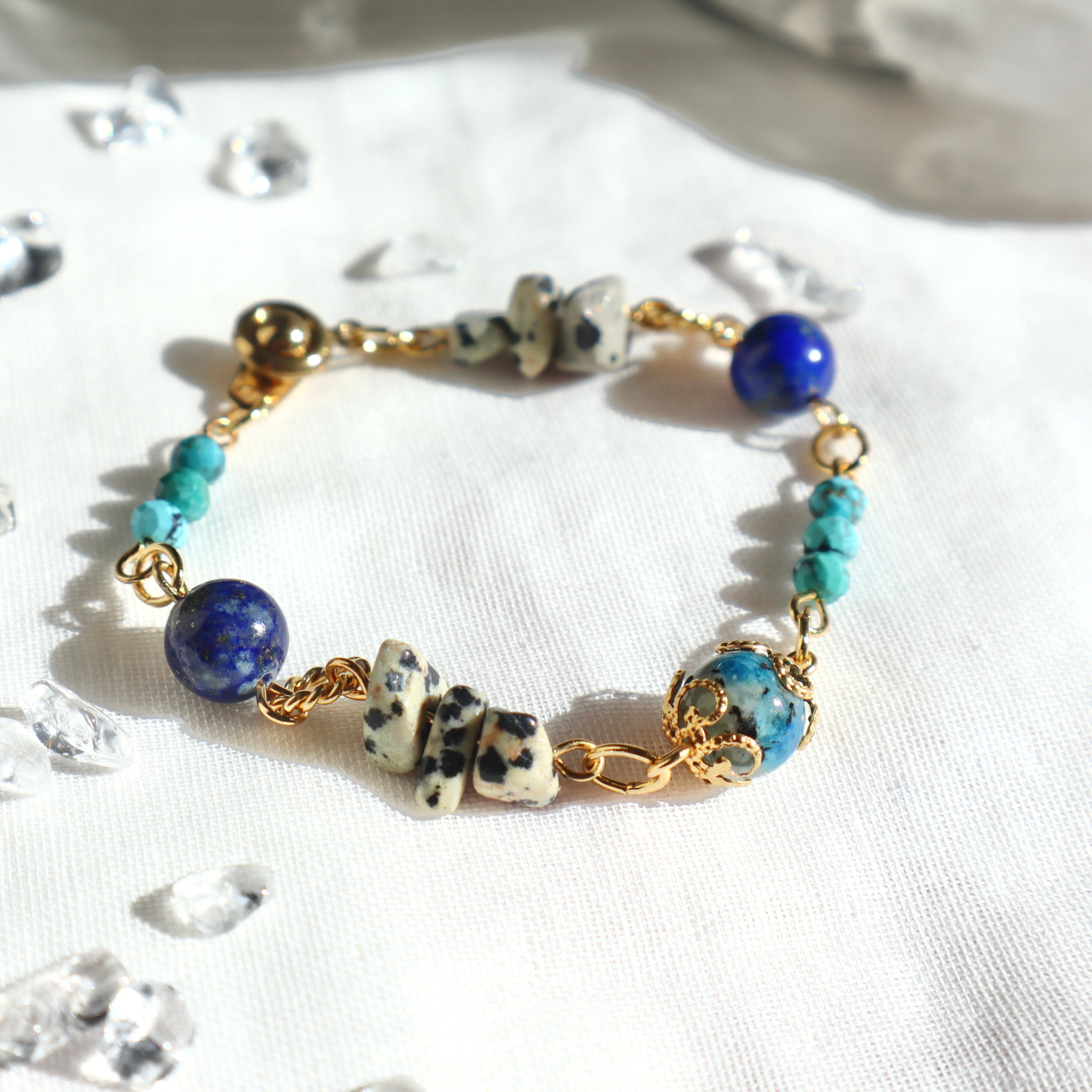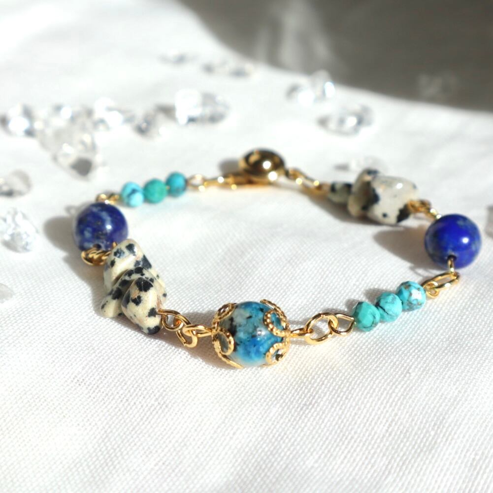 自由と勇気の天然石お守りブレスレット ターコイズ ラピスラズリ K2ブルー ネイティブ ヘルシー ゴールド 鉱物 ブルー 青 12月 誕生石 守護石 射手座