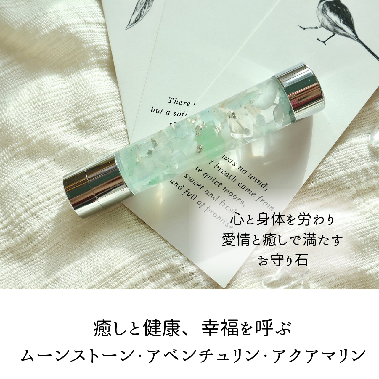 癒しとリラックスのサポートになる天然石、周りも自身も幸せな気持ちを巡らせる、穏やかなエネルギーのお守り。