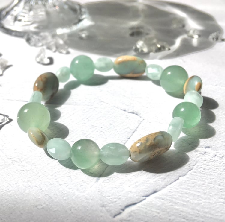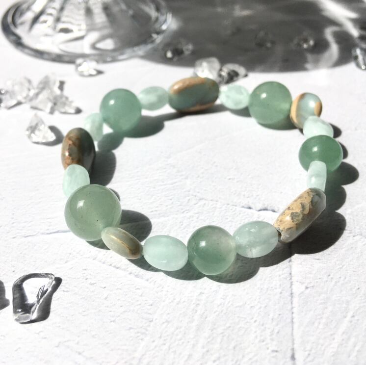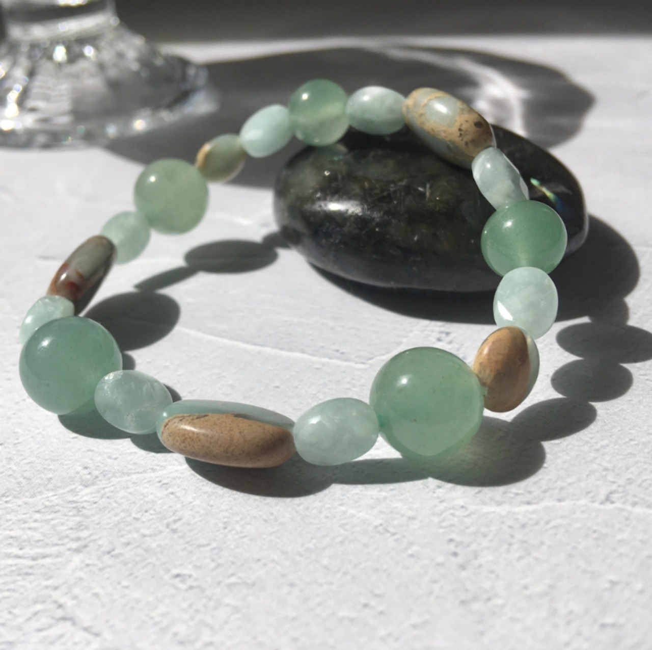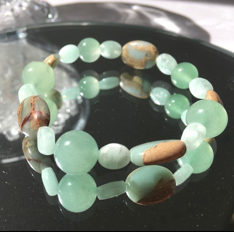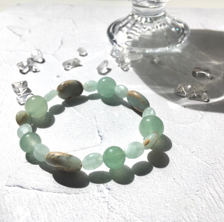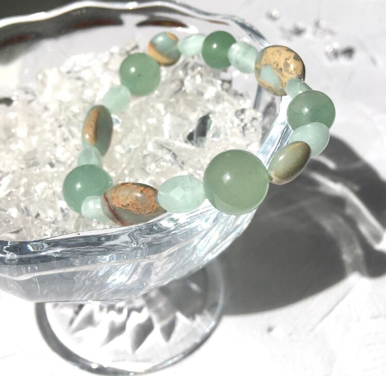 春 夏 秋 冬 癒し ヒーリング アベンチュリン ミントグリーン インプレッションストーン セラフィナイト オーダーメイド 誕生石 天然石 疲れ 緑 パステル ミントカラー 金属アレルギー対応 人間関係
