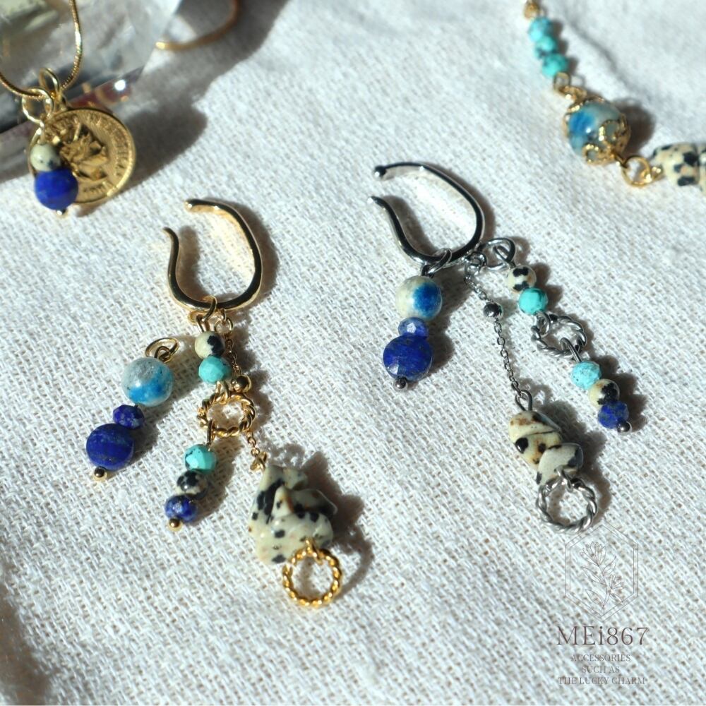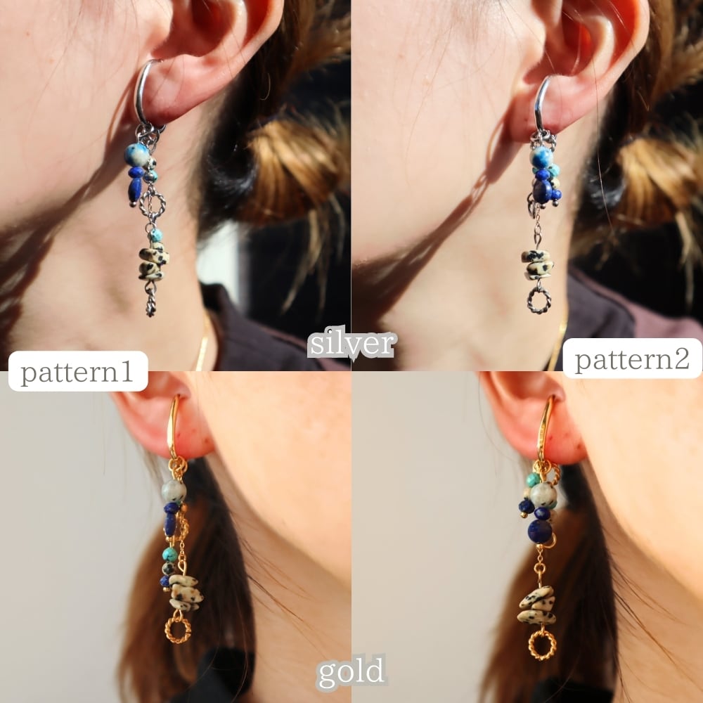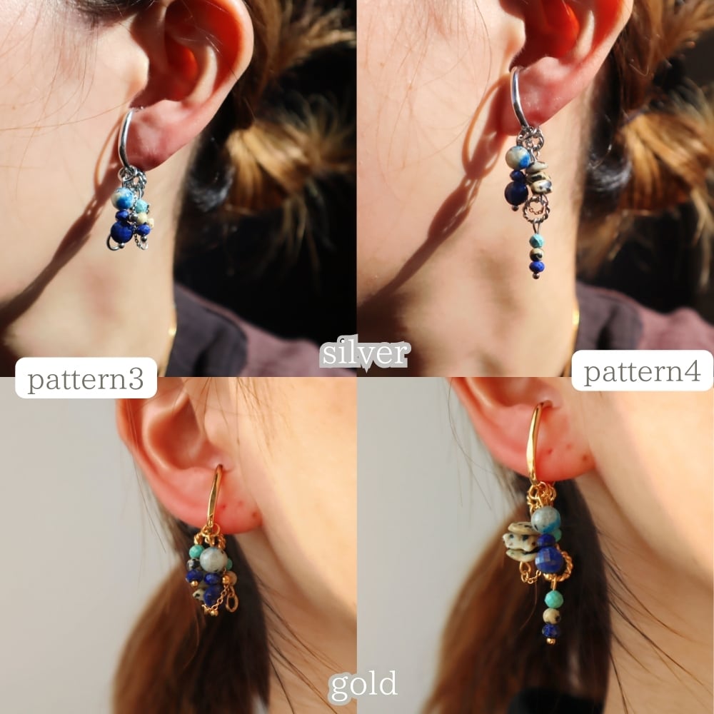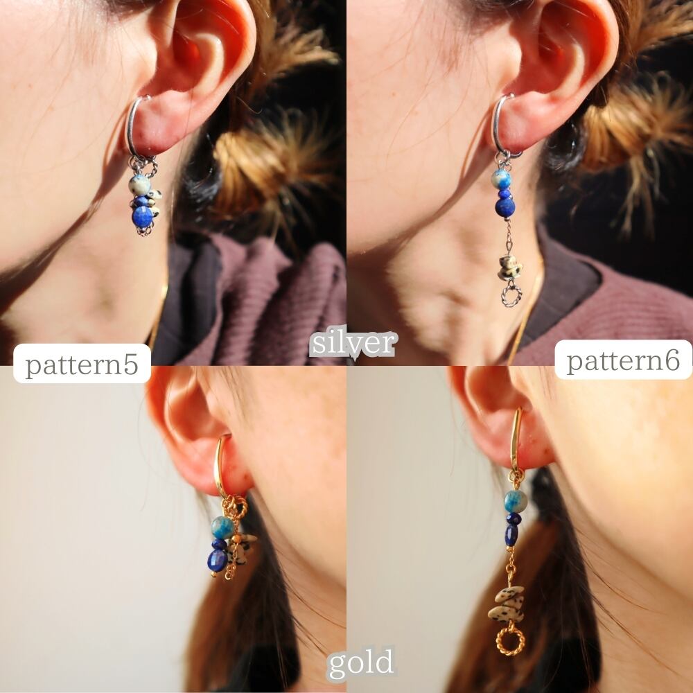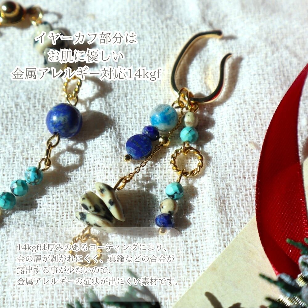 12パターンアレンジ天然石片耳イヤーカフ 射手座 お守り ターコイズ ラピスラズリ K2ブルー ヘルシー シルバー 鉱物 ブルー 青 12月 誕生石 守護石