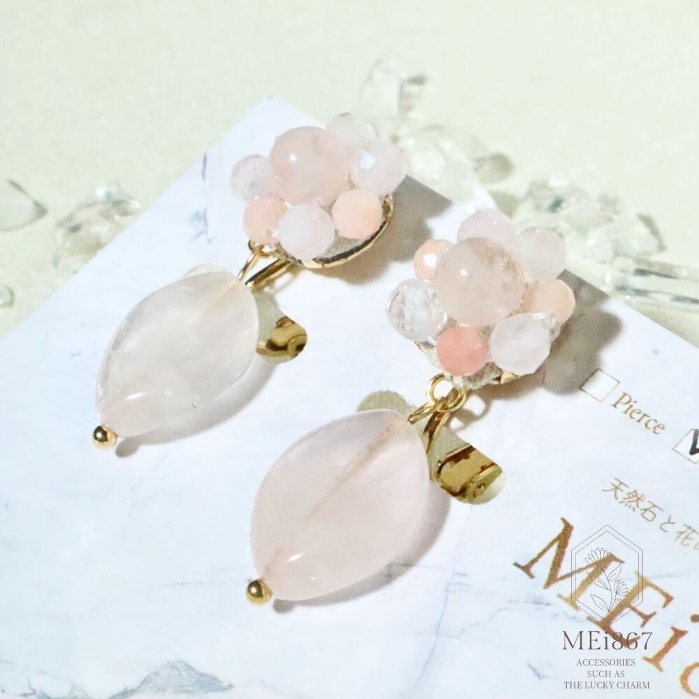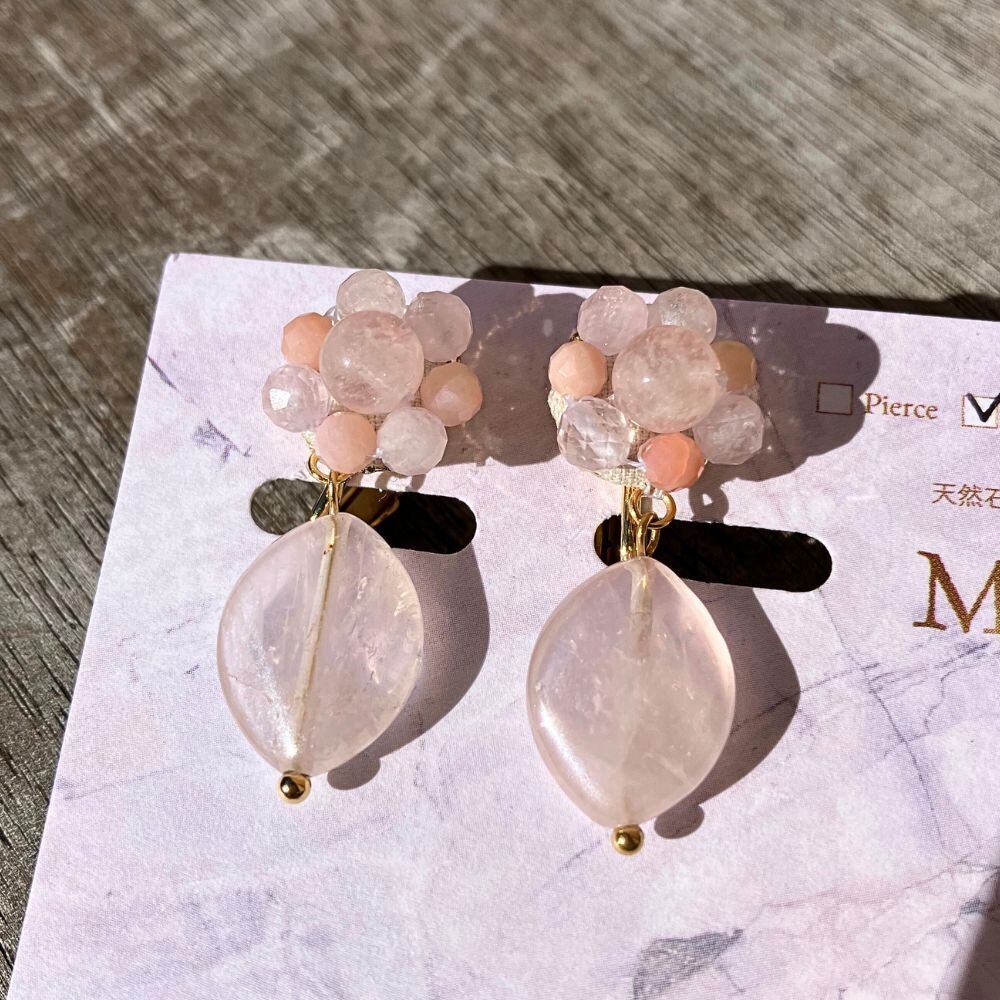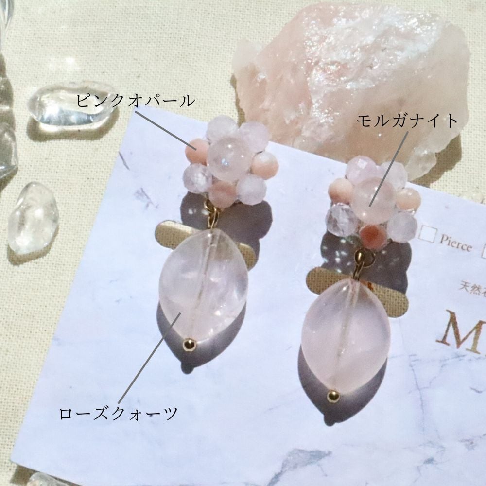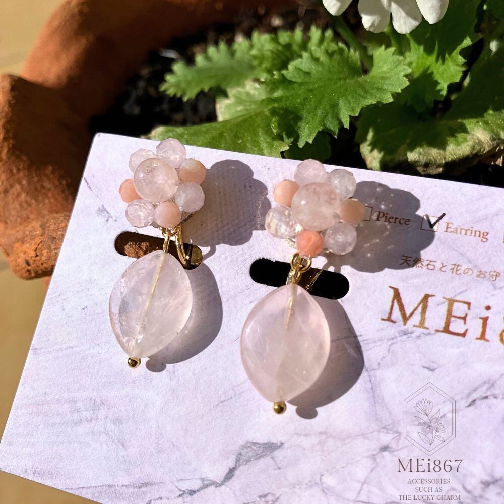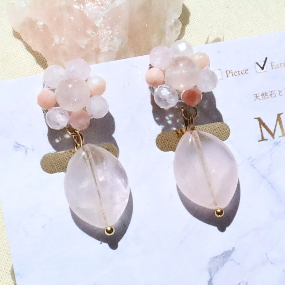 動くたびに小さく揺れるローズクォーツは、桜の花びらのようで春を感じさせ、