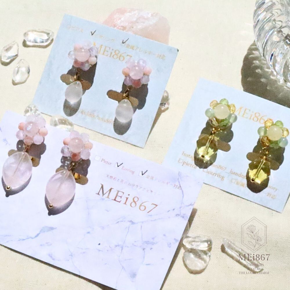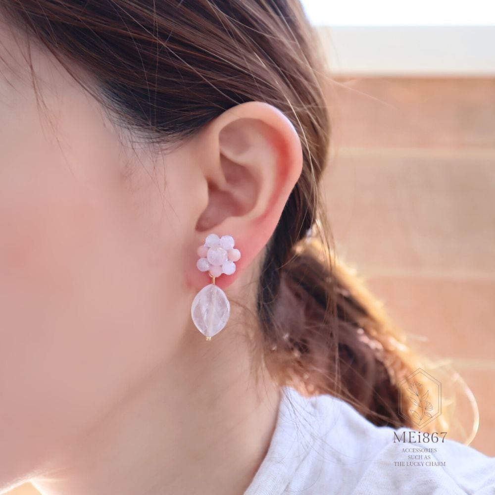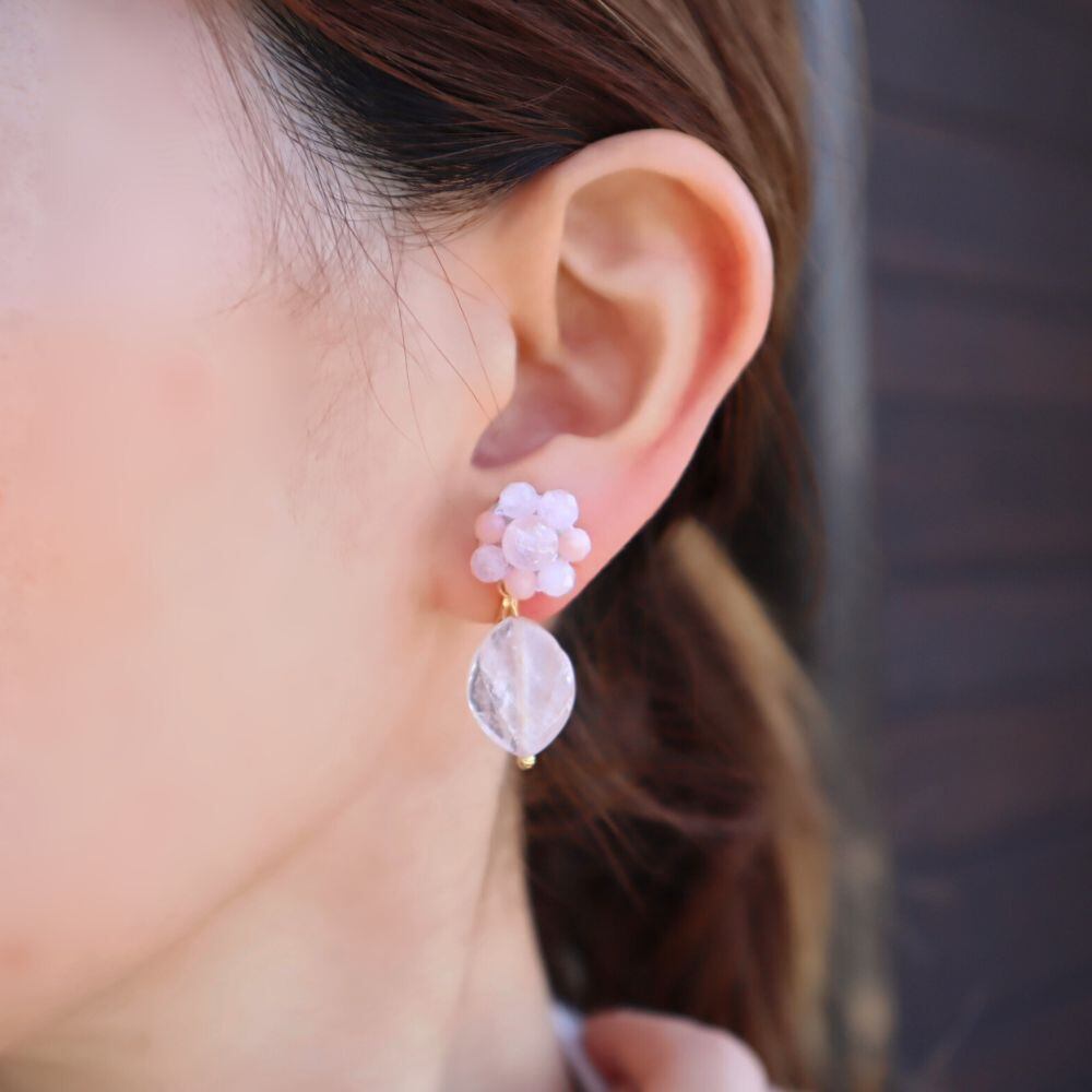 ありのままの自分を包み込んでくれるような気持にしてくれる天然石で仕立てた春の小花の耳飾り。