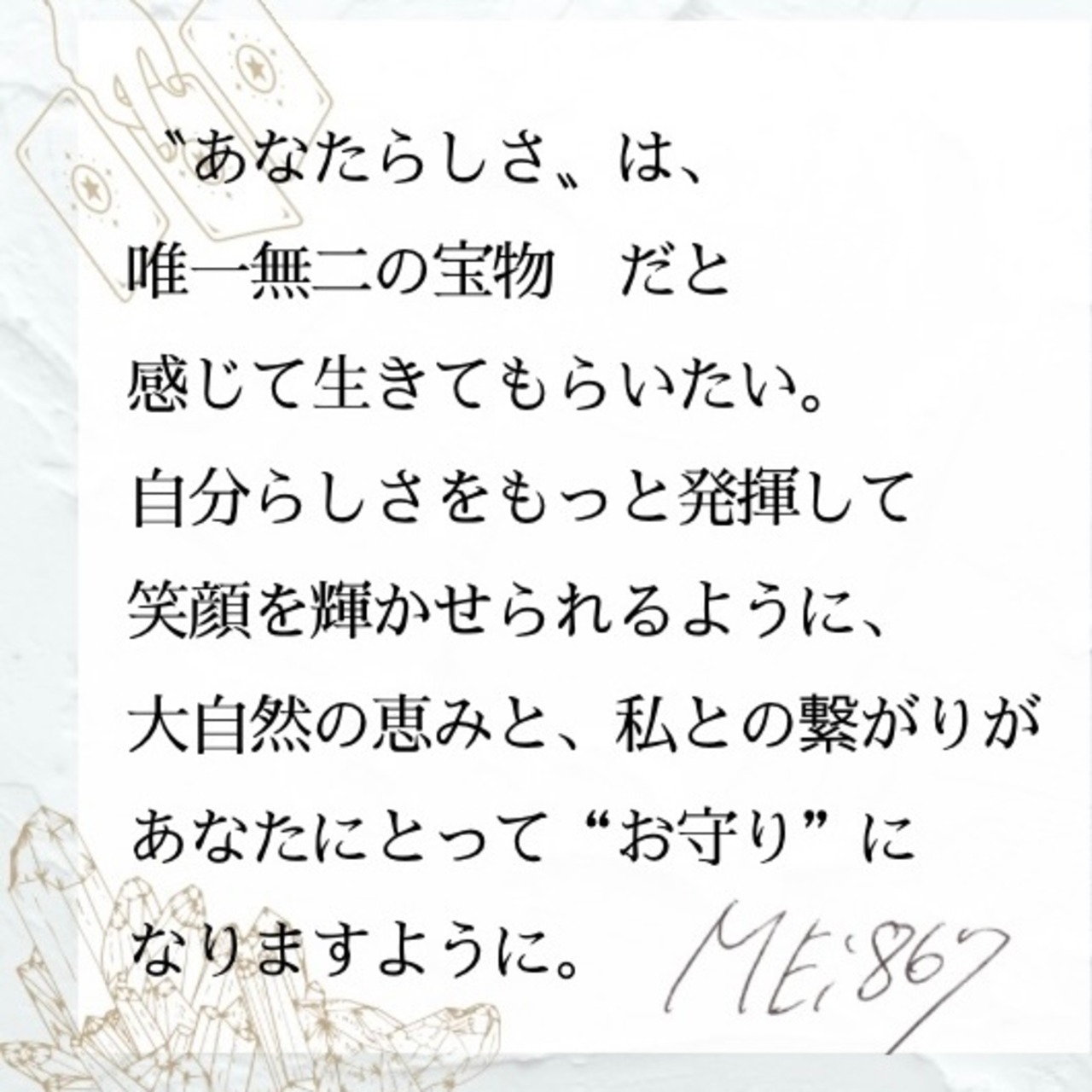 見守る精神、相手を尊重する気持ちを大切にする気持ちのサポートになるので、関係性の距離感を上手にしたい人、手放す勇気が欲しい人にオススメ。