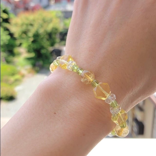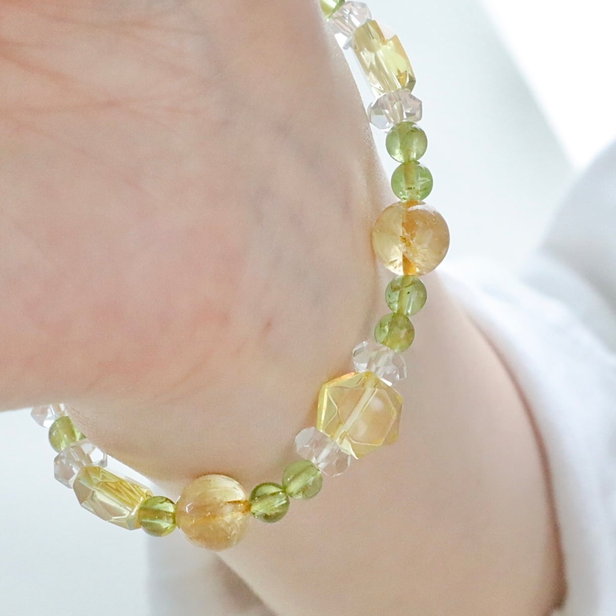 【数量限定】シトリンとペリドットのヘキサグラムブレスレット 天然石 誕生石 11月 8月 母の日 プレゼント イエロー 黄緑 ミモザ