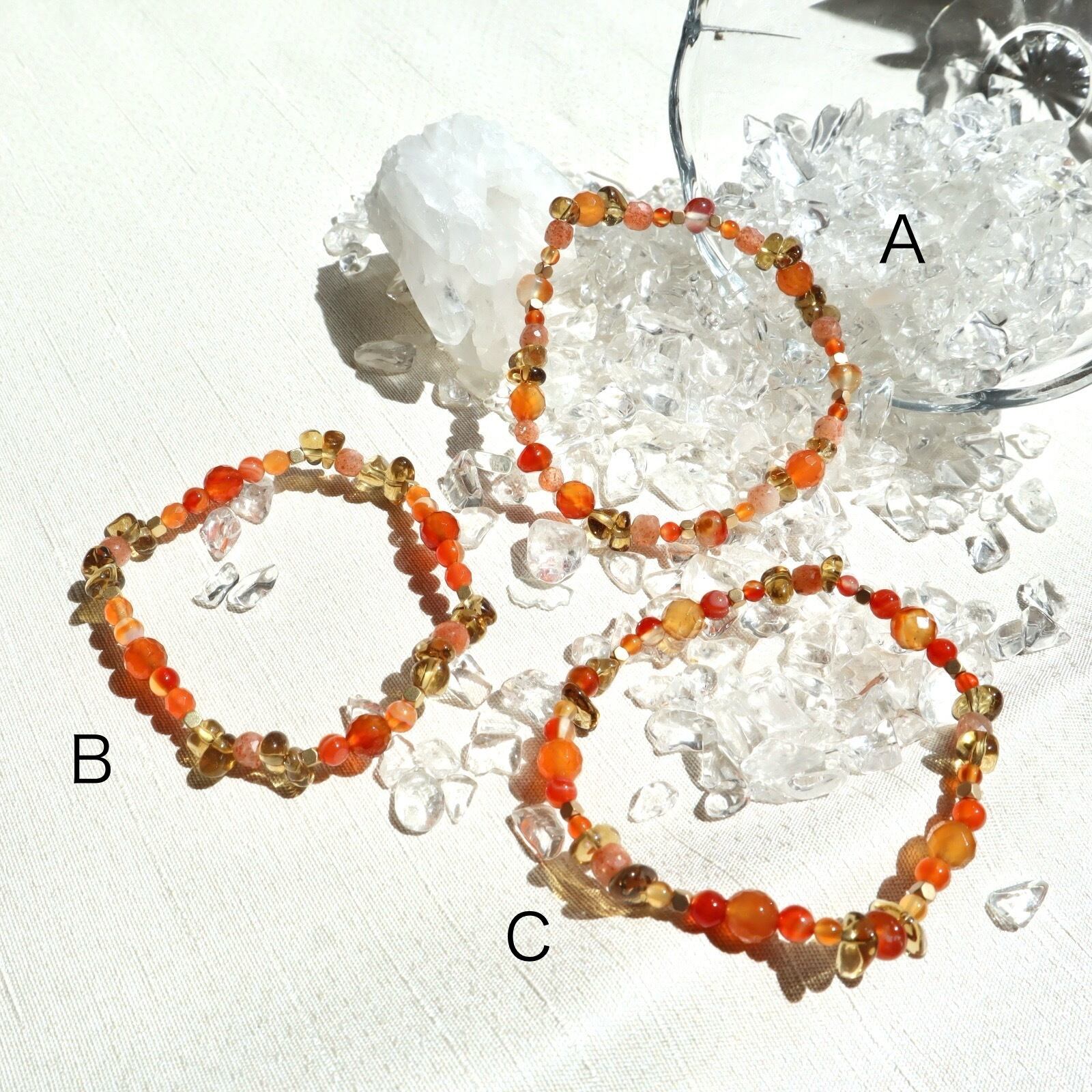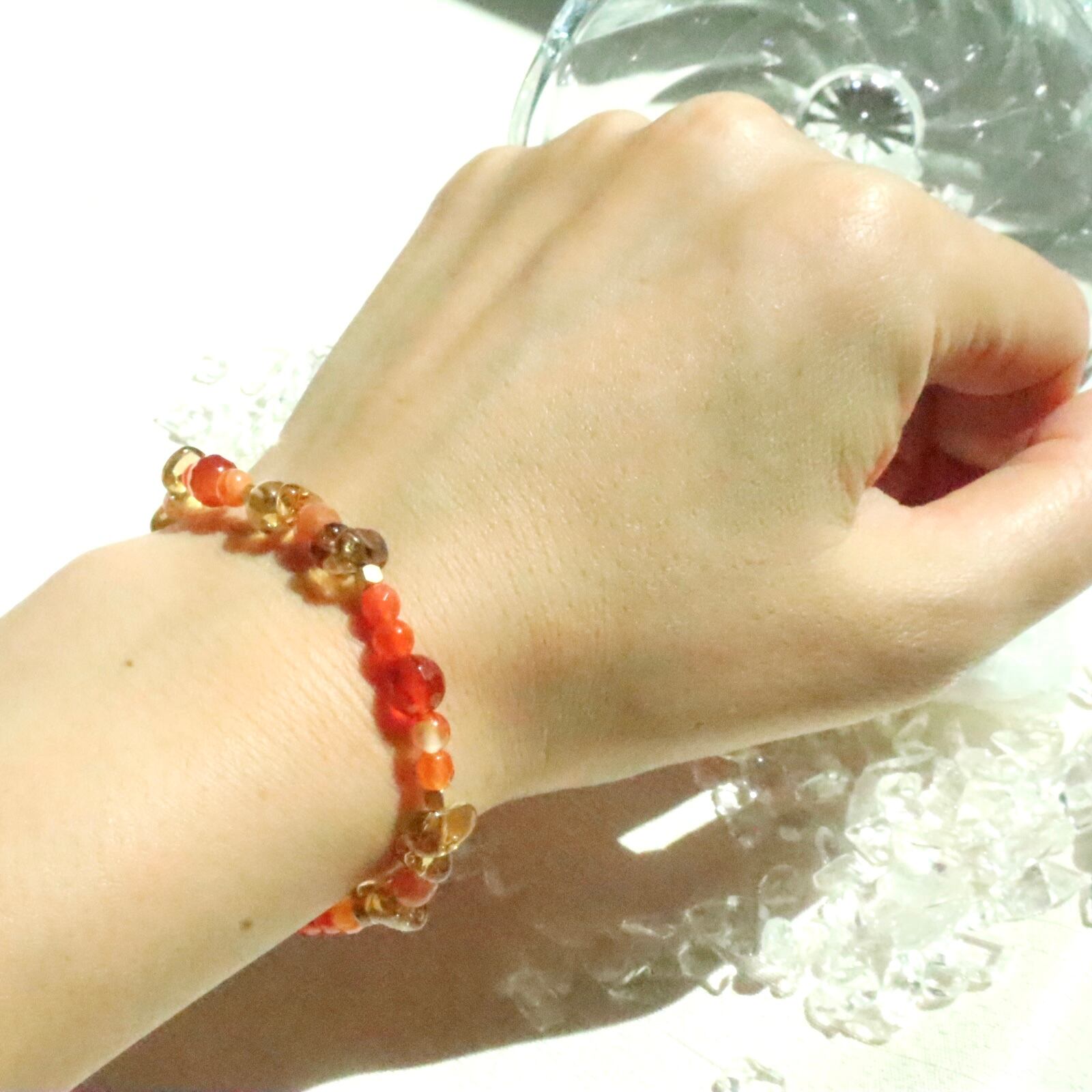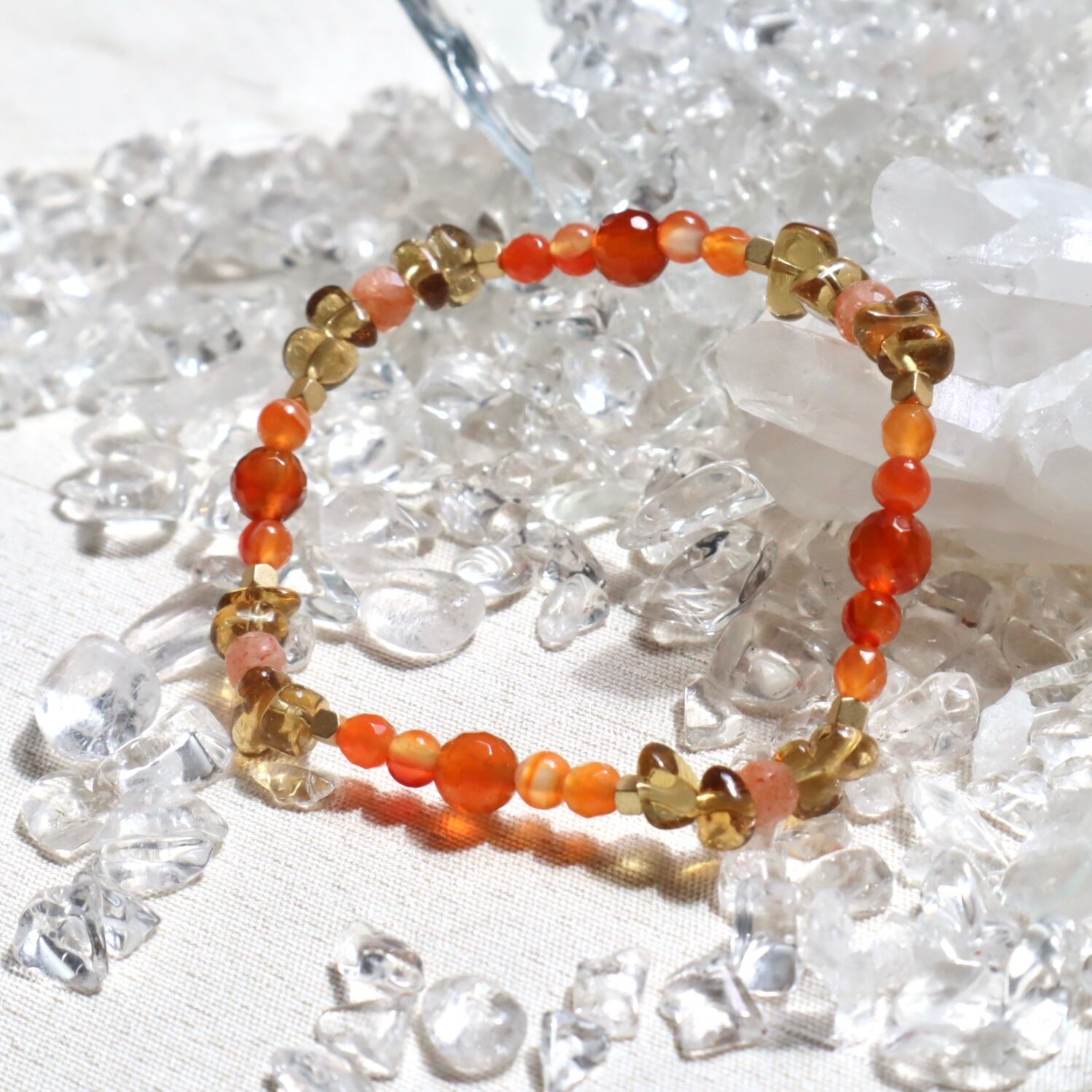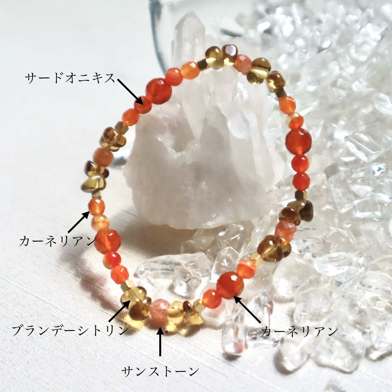 【一点限定】ポジティブに輝やくお守りブレスレットB 15cm 天然石 カーネリアン サンストーン オレンジ シトリン 誕生石