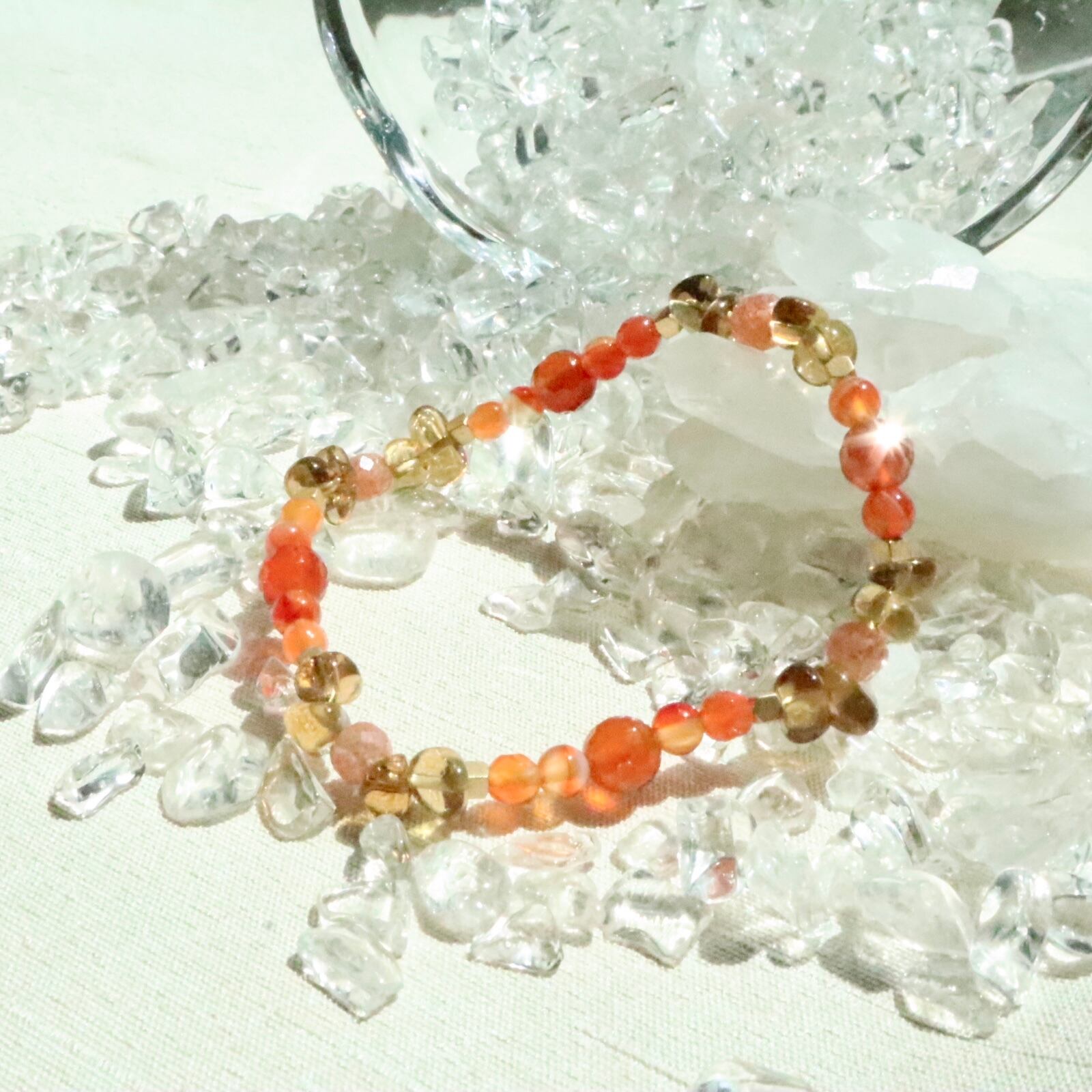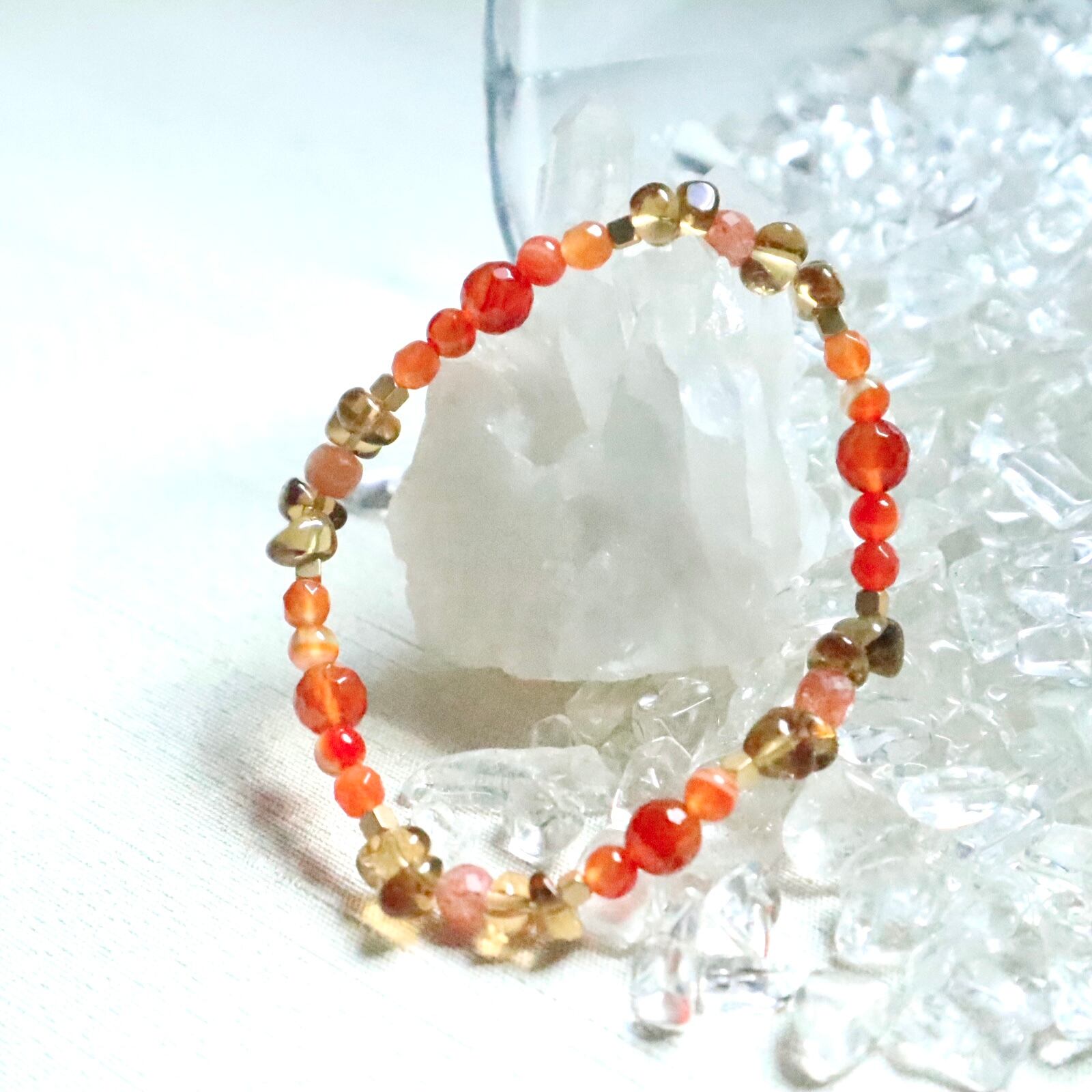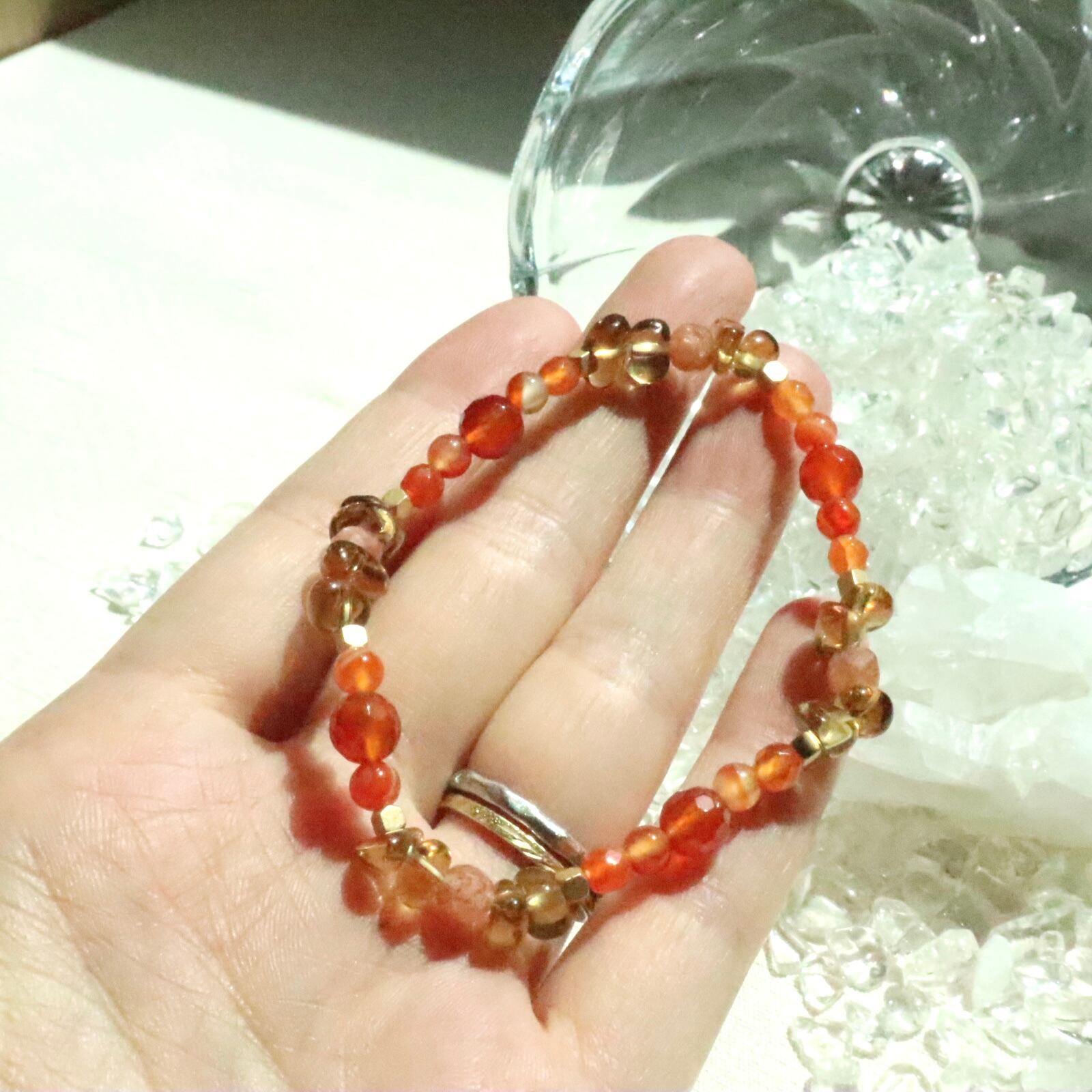 【一点限定】ポジティブに輝やくお守りブレスレットB 15cm 天然石 カーネリアン サンストーン オレンジ シトリン 誕生石